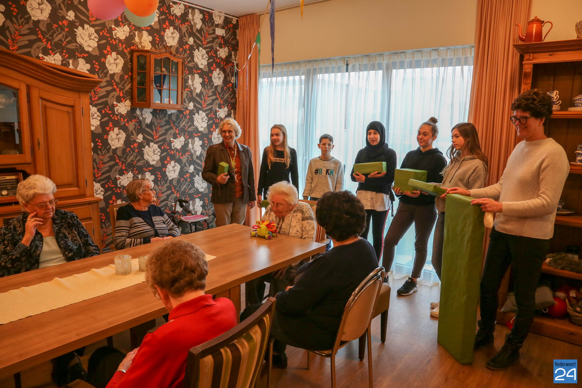 Oliwia uit klas 2a vertelde hoe we aan de opbrengst waren gekomen en de andere vier leerlingen, Bente uit klas 2a, Julian, Lisa en Fatima uit klas 1b/p overhandigden de spellen. Het was prachtig om te zien hoe de cliënten nieuwsgierig de cadeaus openmaakten en met de spellen gingen spelen. De leerlingen genoten van de blije gezichten van de ouderen en hebben erg veel zin om tijdens de activiteitenmiddag met de ouderen deze spellen te gaan spelen. Enkele verzorgers en vrijwilligsters kwamen belangstellend kijken.