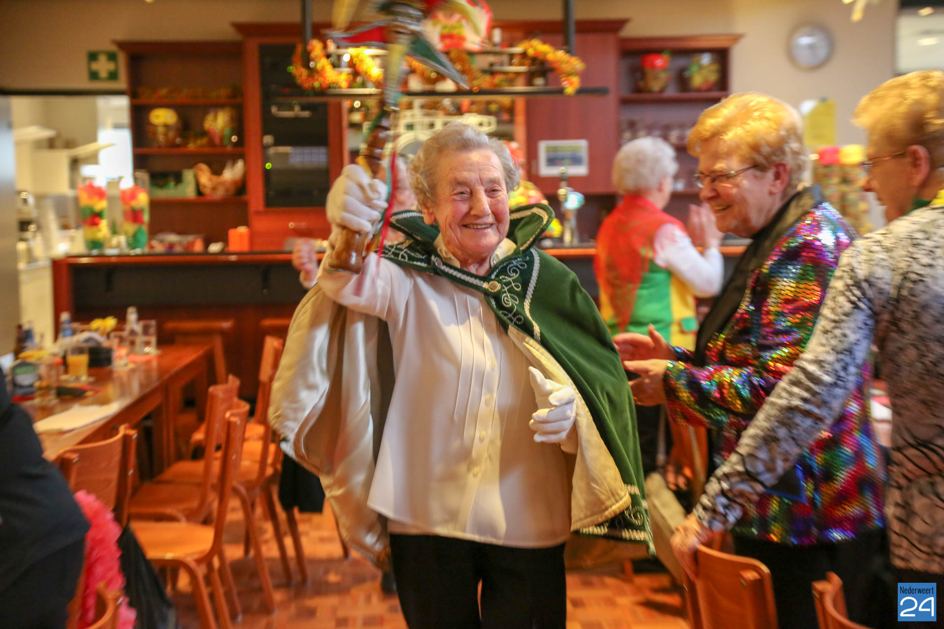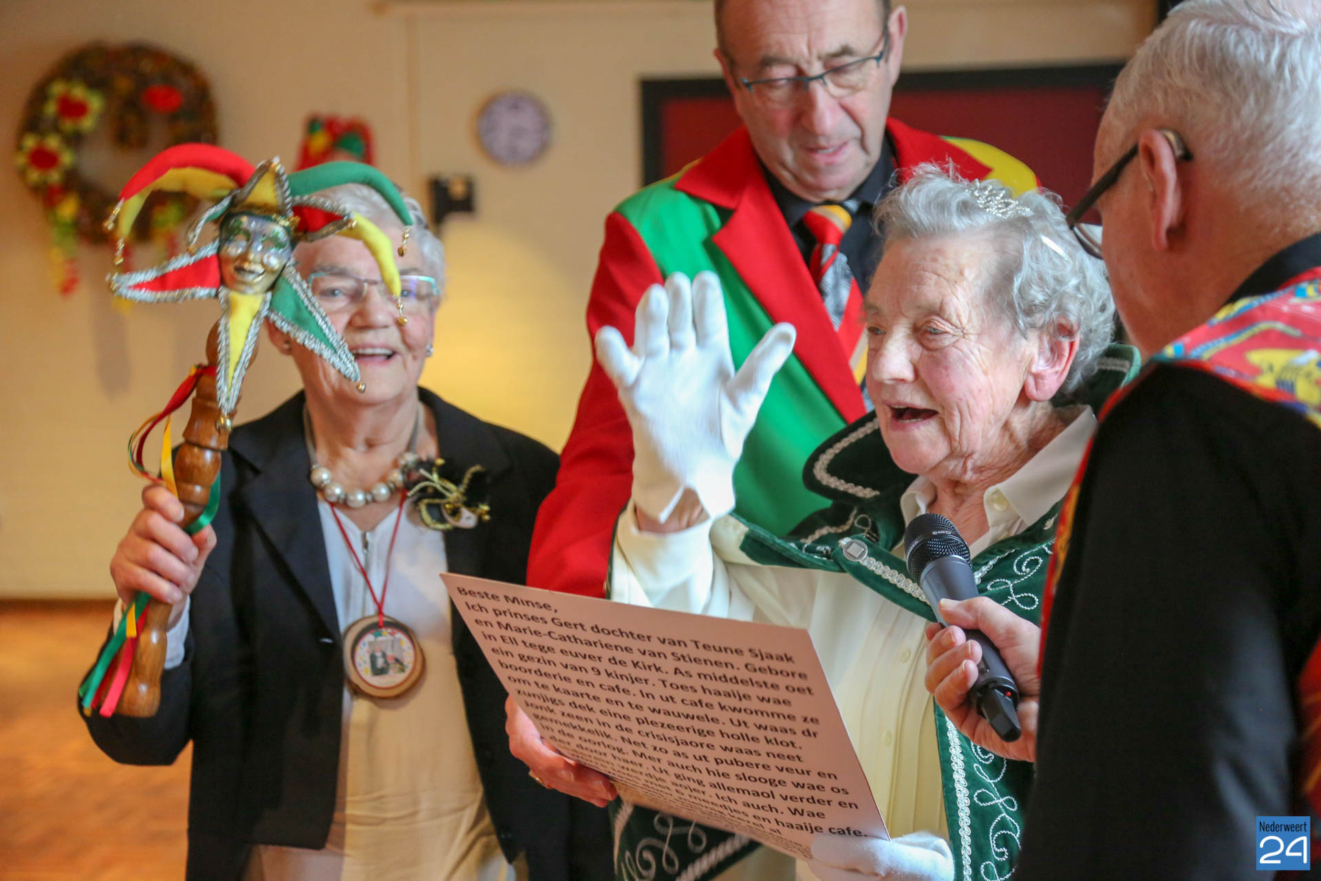 Prinses Gert is 93 jaar en is een dochter van Teune Sjaak en Marie-Cateriene van Stienen. Ze is geboren in Ell tegenover de kerk in een gezin van 9 kinderen. In 1950 is Gert getrouwd met Luute Louis uit Ell. Samen kregen ze 10 kinderen, 9 kleinkinderen en 6 achterkleinkinderen. Gert komt al 30 jaar dansen in Reigershorst.