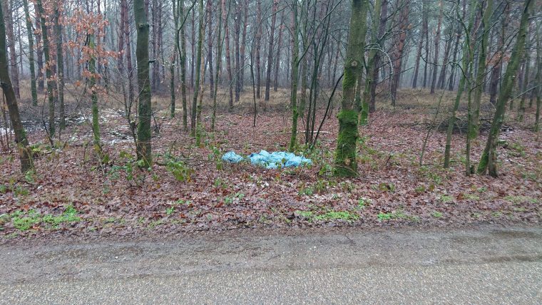 Een voorbijganger zag de blauwe zakken liggen. Toen hij dichterbij ging kijken zag hij dat het om potgrond ging en rook een ’typisch’ geurtje. Hoe lang het afval daar al ligt is niet bekend.