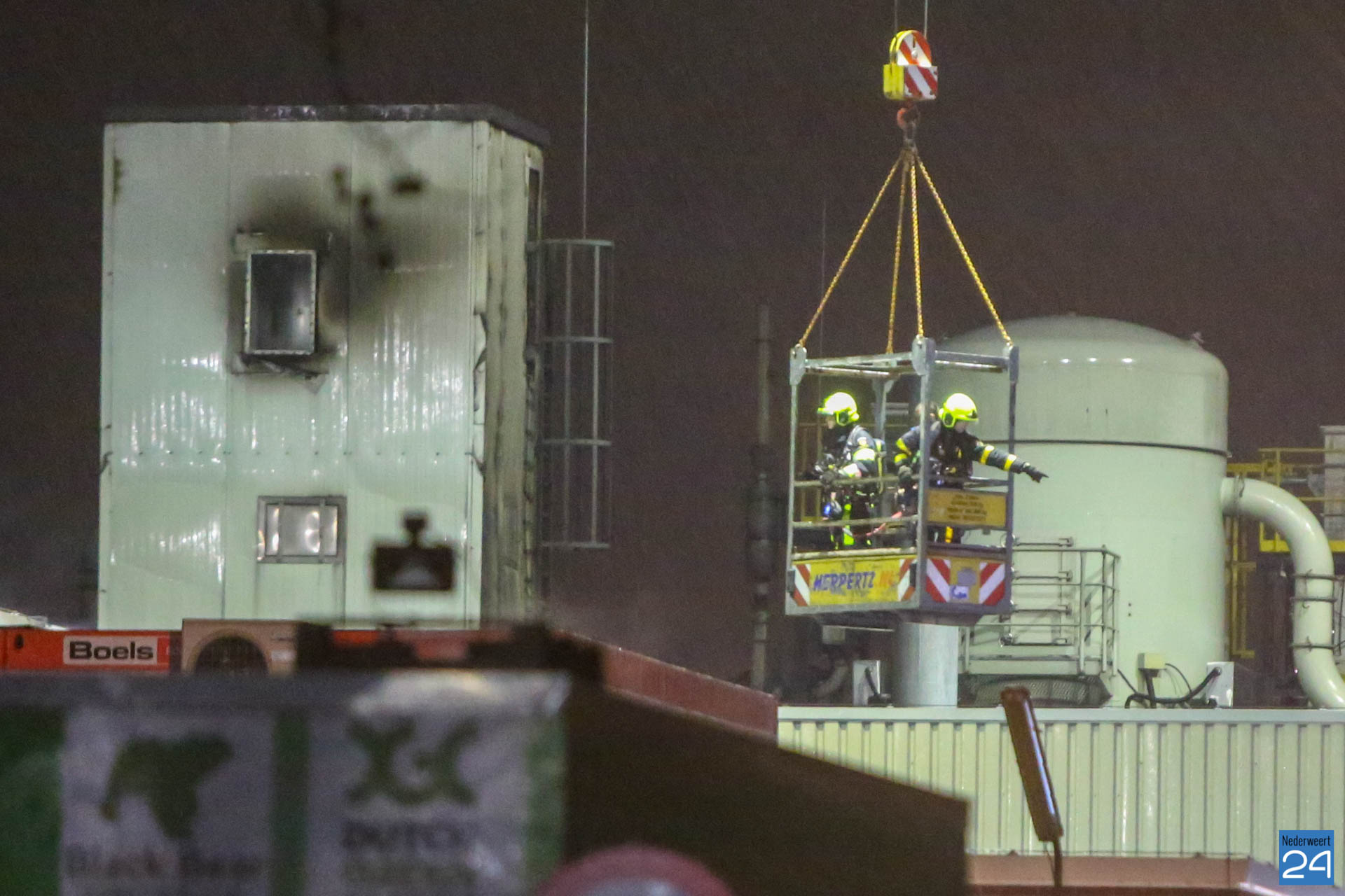 Na de grote brand bij bandenverwerker Dutch Green Carbon aan de Winnerstraat in Nederweert, is de brandweer woensdag weer teruggekeerd voor bluswerkzaamheden. Doormiddel van een grote hijskraan werden kleine vuurhaardjes bij het dak geblust. De brandweer rukte woensdagavond uit met een blusvoertuig, waterwagen en een ladderwagen.