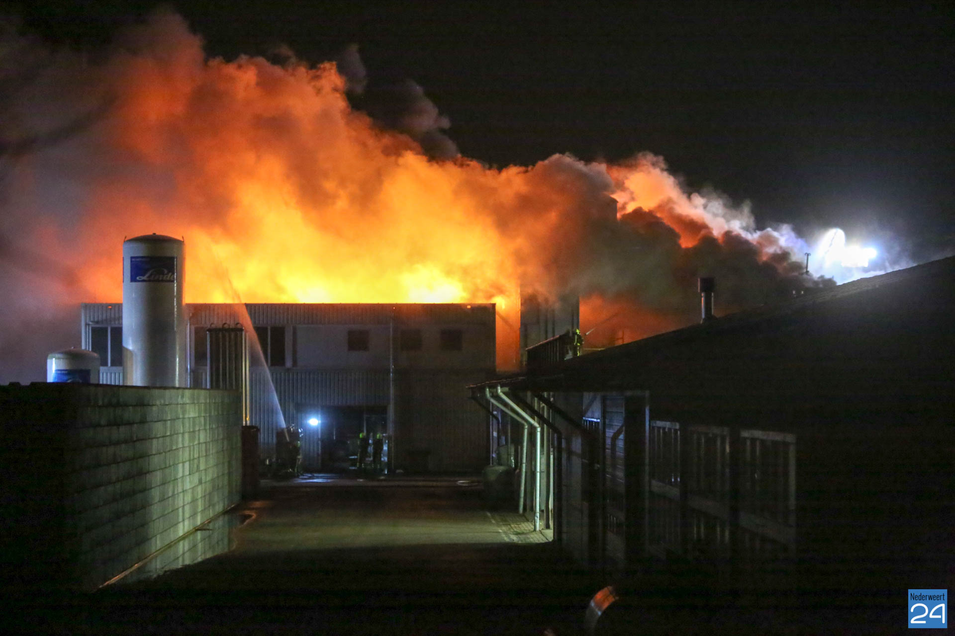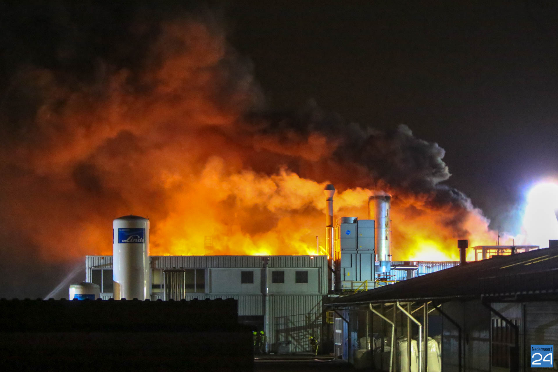 De brand ontstond in de vroege woensdagochtend volgens de eerste berichten bij een oven. Het vuur greep snel om zich heen waardoor een loods van 50×100 meter in lichterlaaie kwam te staan.