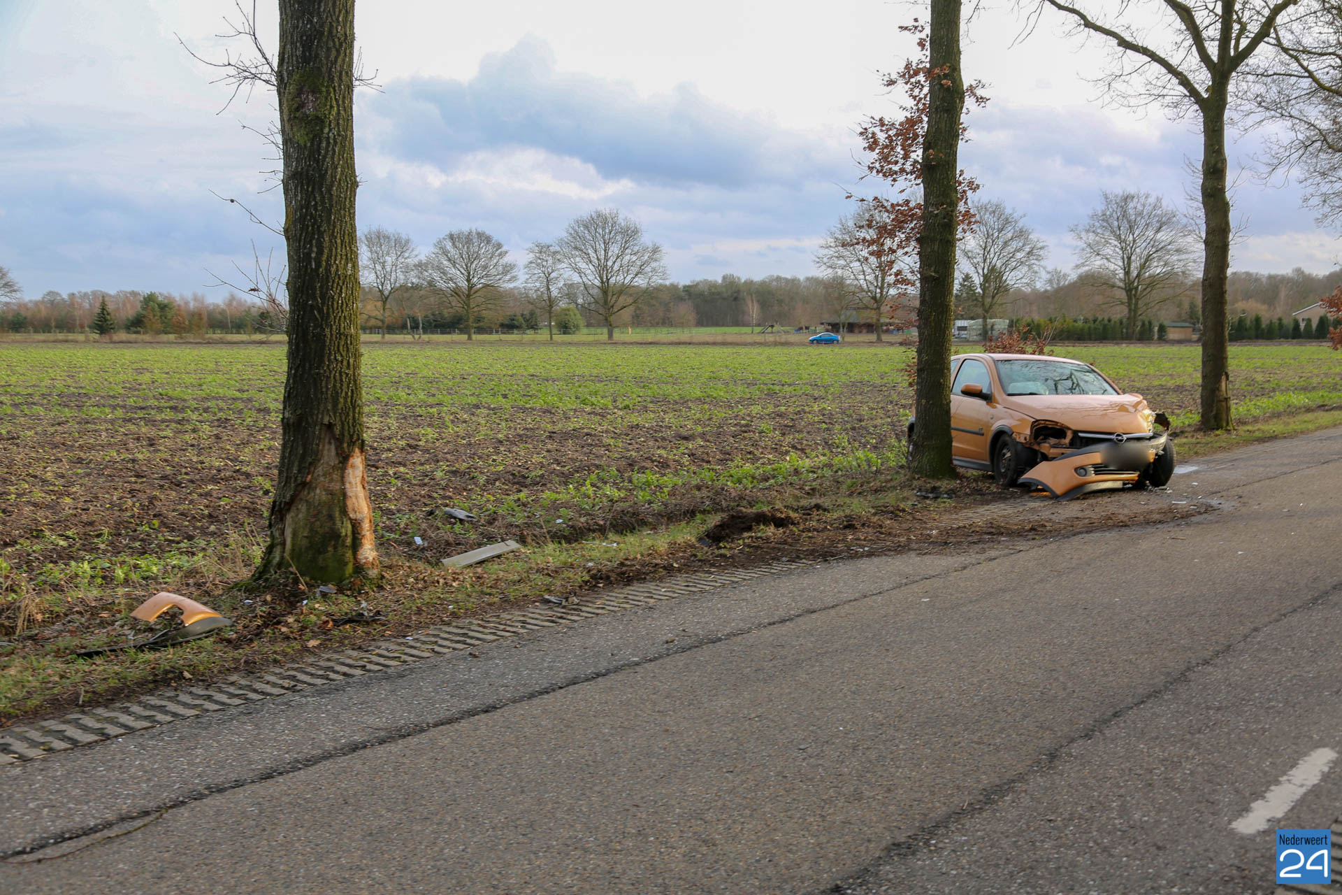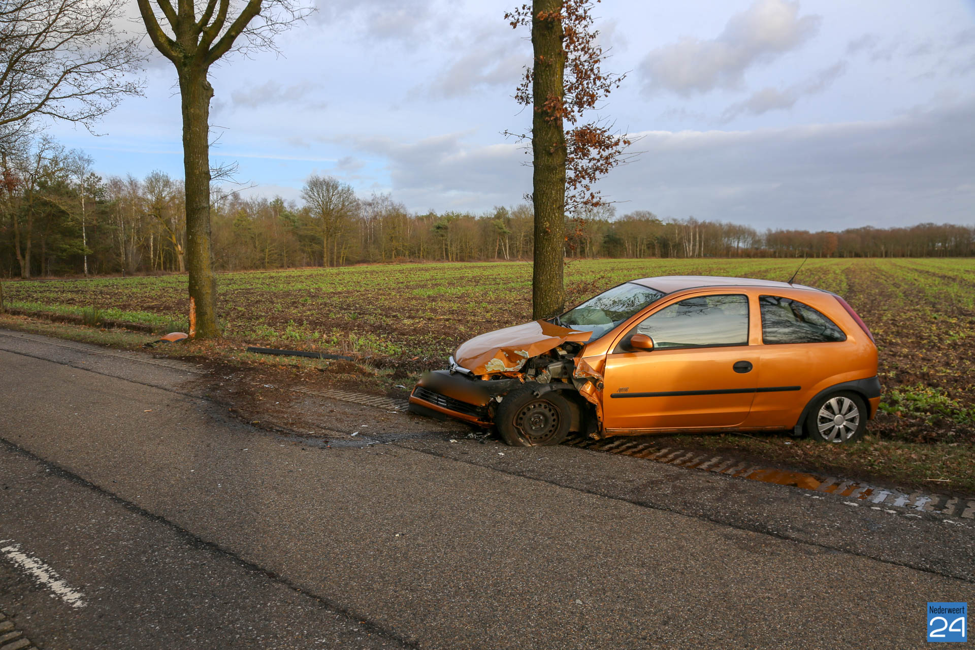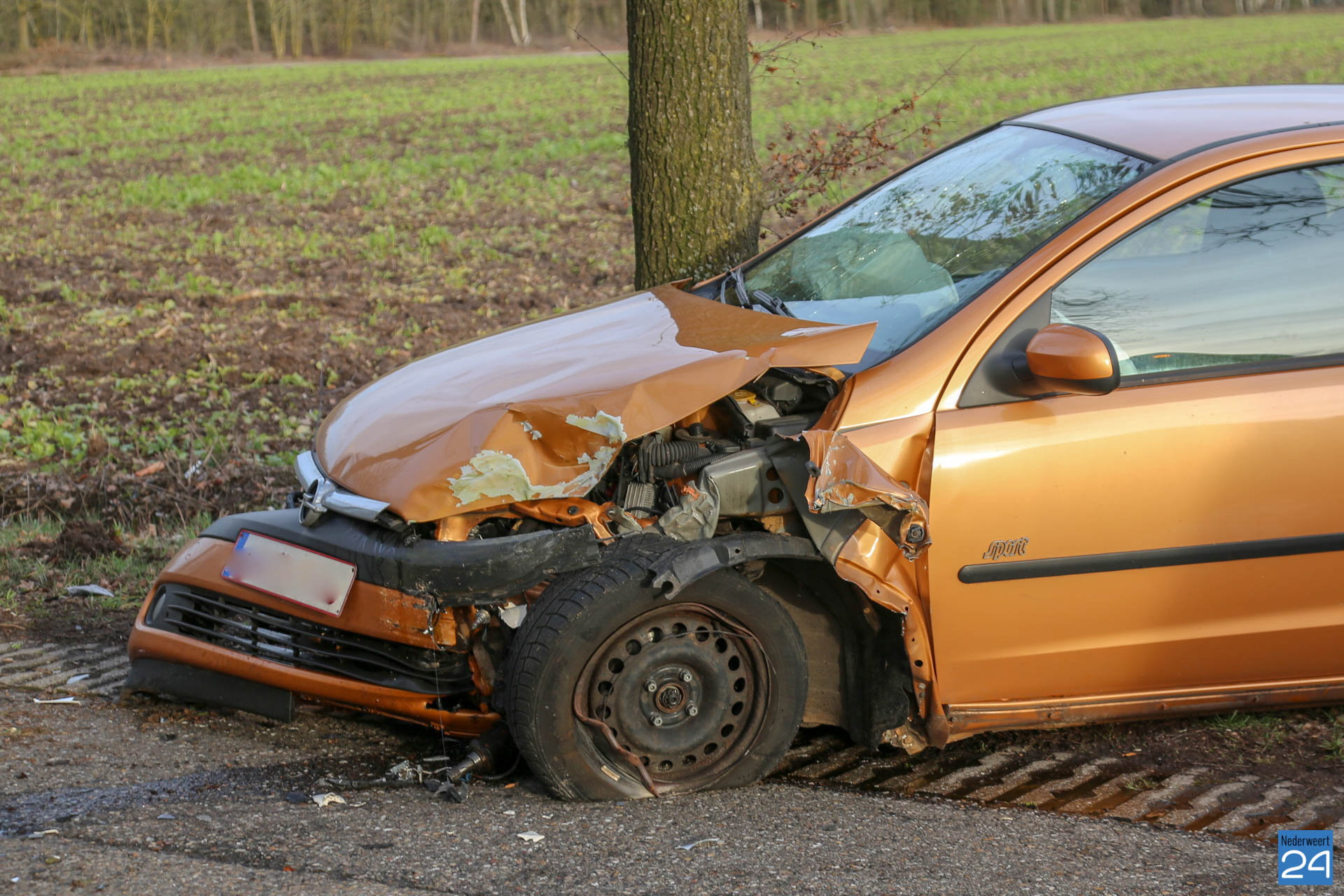 Een auto is zaterdagmiddag hard tegen een boom gebotst op de Heltenbosdijk in Weert. De bestuurster komende uit de richting Weert raakte in een bocht de achterkant van de aanhangwagen en klapte vervolgens tegen een boom.