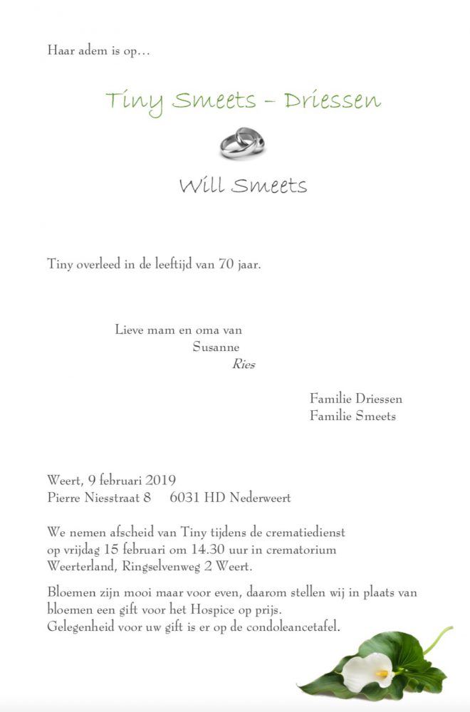 Gecondoleerd met het overlijden van je lieve vrouw, moeder en oma.