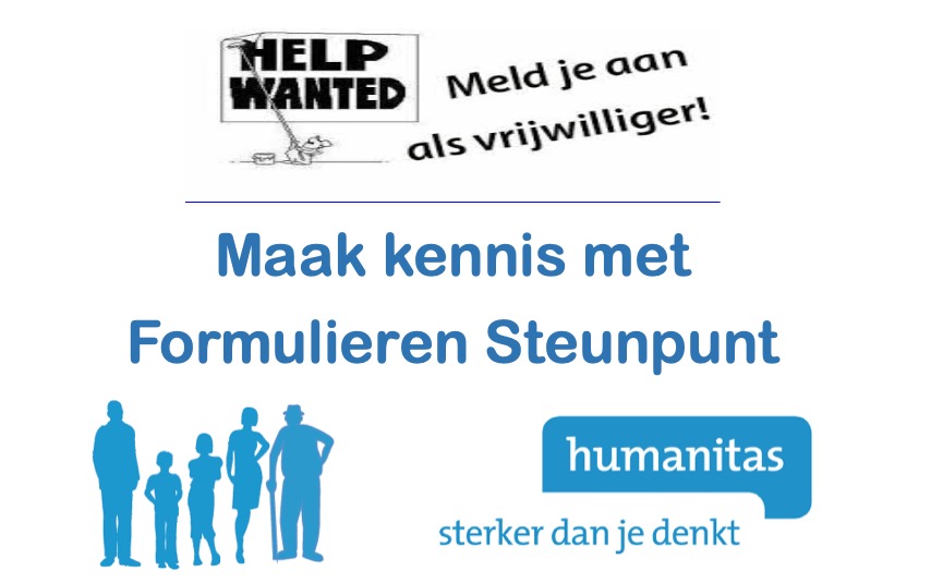 Humanitas Midden-Limburg helpt de mensen bij het invullen van formulieren, als ze het zelf even niet redden. De organisatie is laagdrempelig en mensen/ouders hoeven zich hierdoor niet te schamen om met hun vragen over opvoeding, gezin en de vele regels in de maatschappij te komen. Maatschappelijke Ondersteuning Humanitas gaat samen met hen op zoek naar mogelijke oplossingen, en ze begeleiden hen daarbij totdat ze weer zelfstandig kunnen functioneren. Elke week is er bij elk Formulieren Steunpunt een inloopspreekuur waar de mensen met hun vragen binnen kunnen lopen, en de hulp van de vrijwilligers van Humanitas Midden-Limburg is helemaal GRATIS!