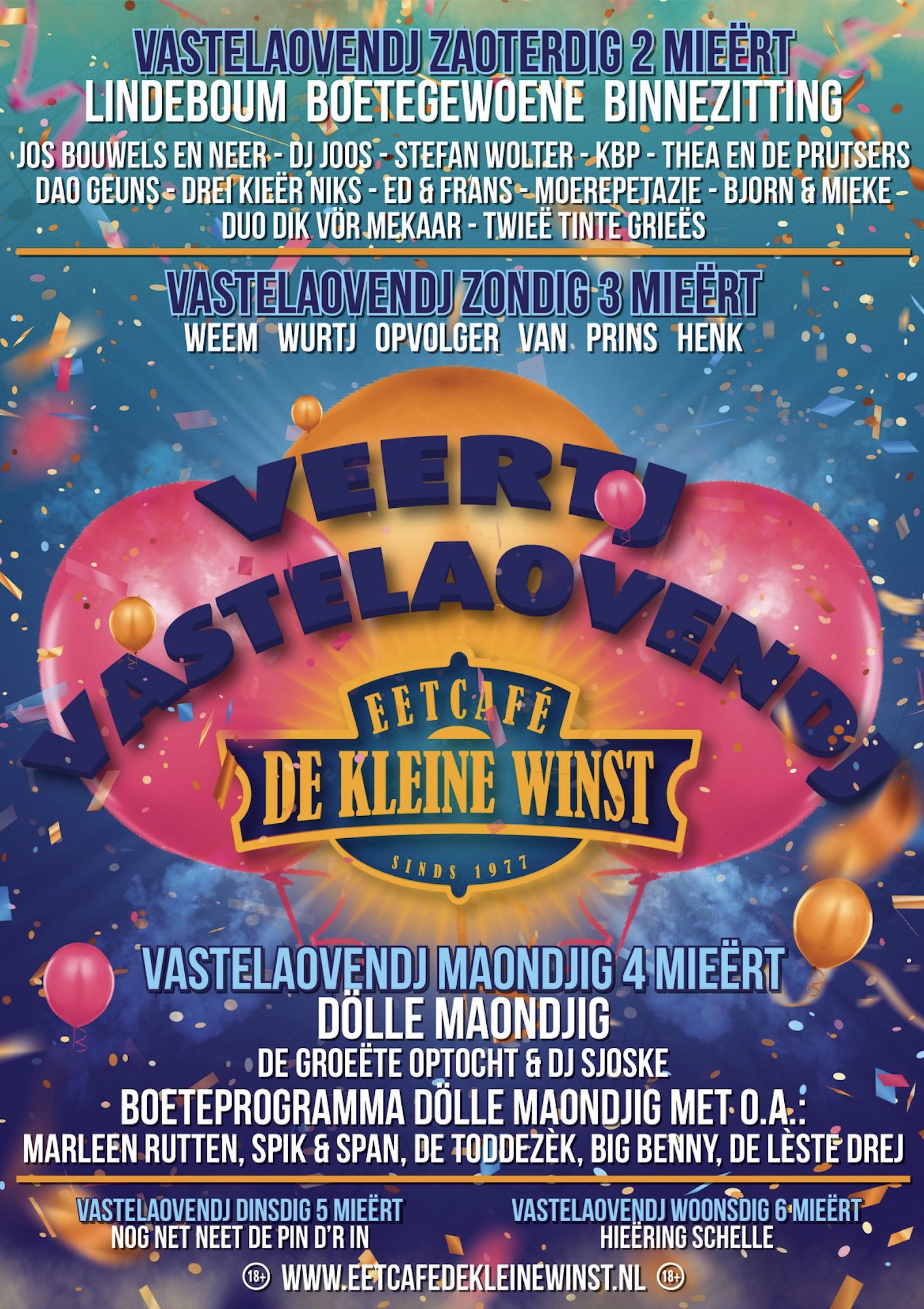 Volgende week barst de carnaval los bij Eetcafé De Kleine Winst. Wat is er allemaal te doen?
