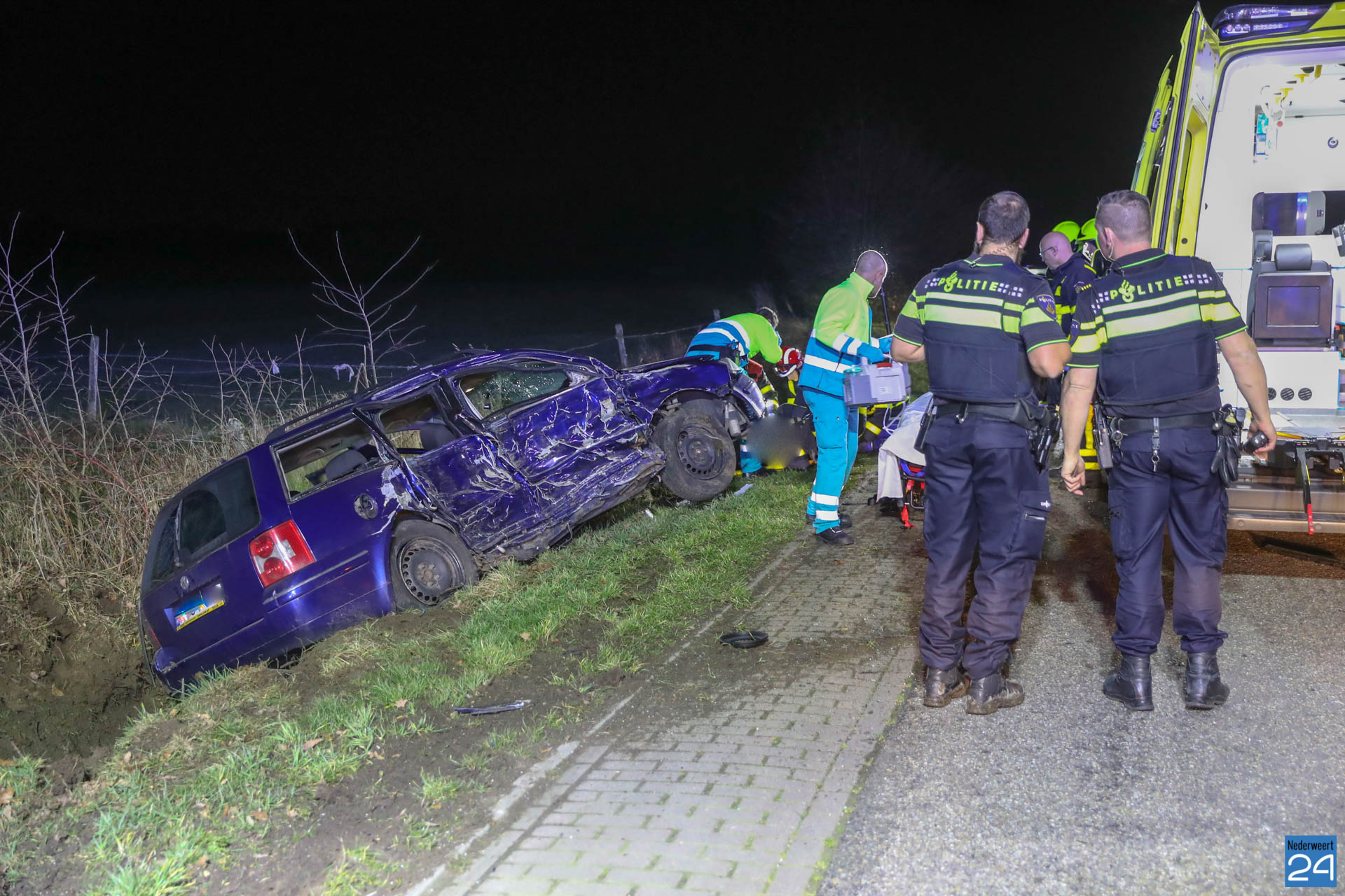 De bijrijder is ter plaatse door het ambulancepersoneel gestabiliseerd in samenwerking met de brandweer. Daarna is hij met spoed naar het ziekenhuis vervoerd. De bestuurder raakte licht gewond en is ook naar het ziekenhuis vervoerd.