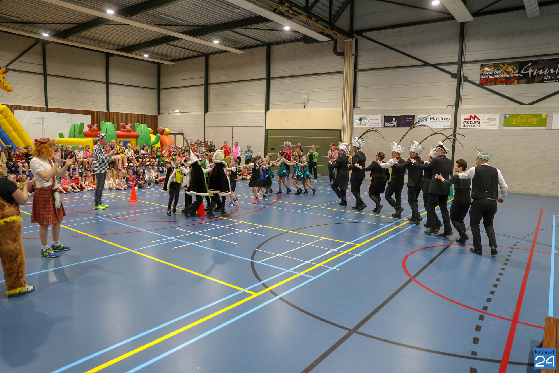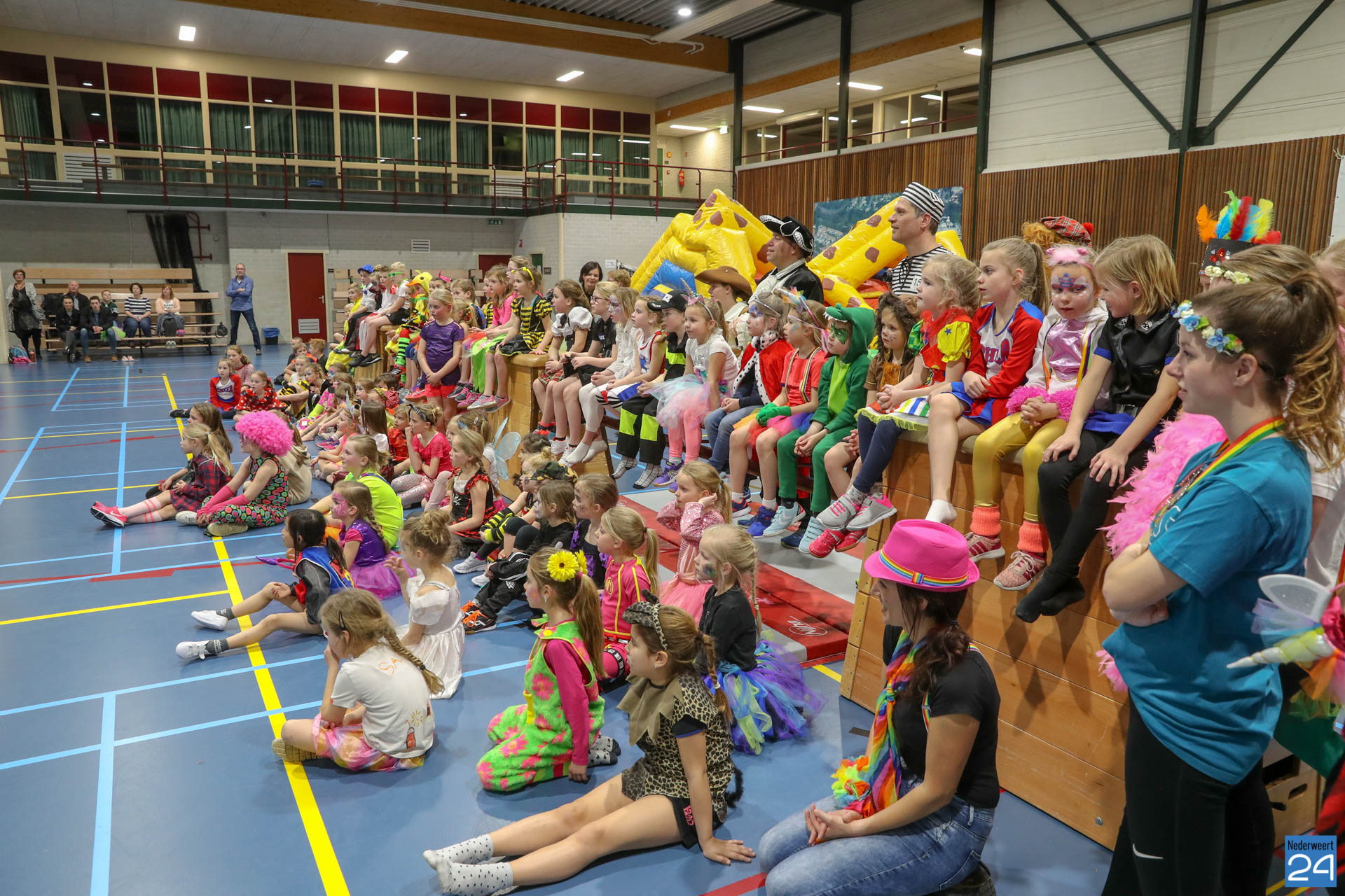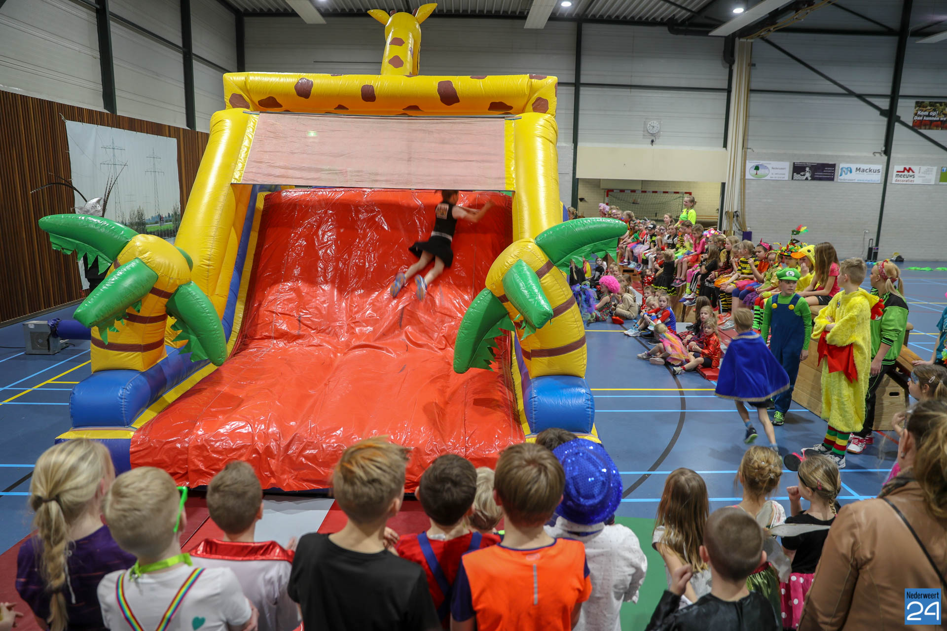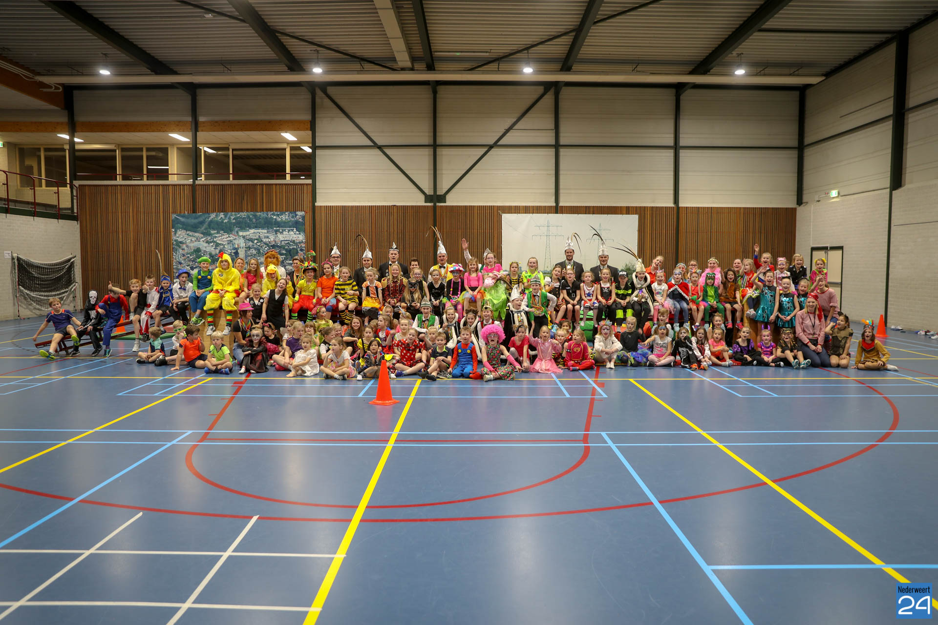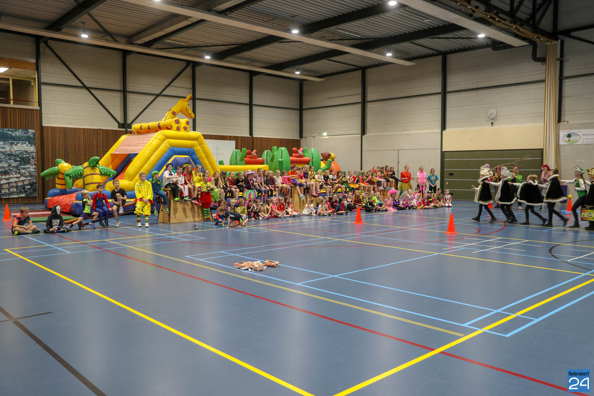 Ruim 100 kinderen in de leeftijd van 4-9 jaar kwamen woensdagavond om 17.30 uur verkleed naar Sportcentrum de Bengele in Nederweert. De kinderen konden in de hal een aantal spellen spelen en zich vermaken op de stormbaan.