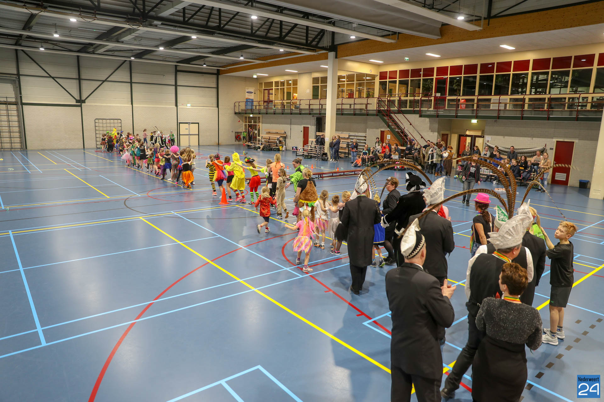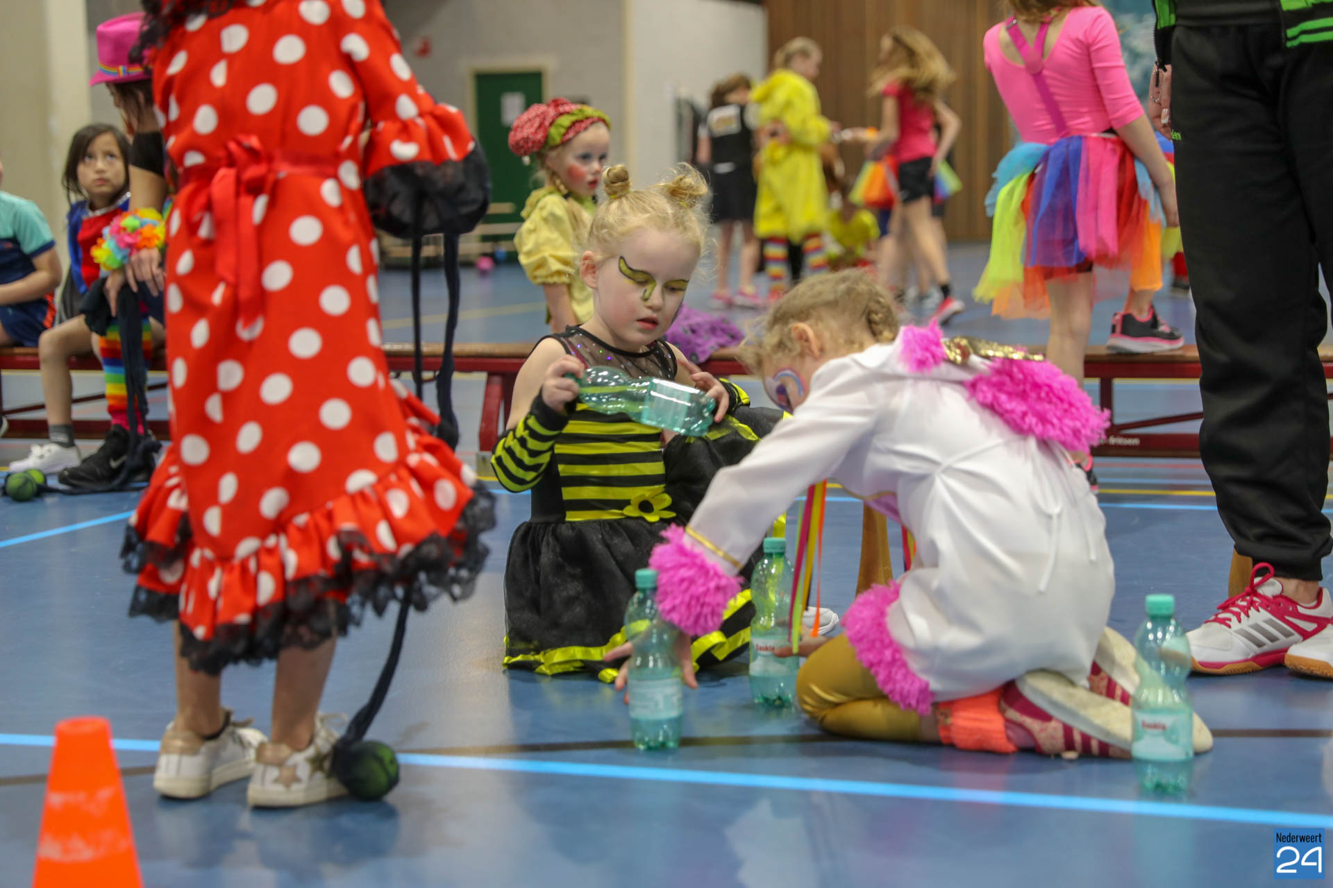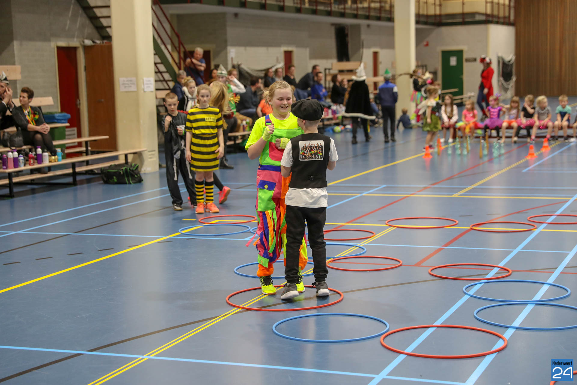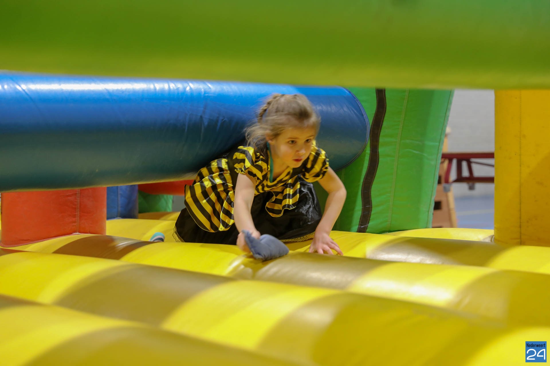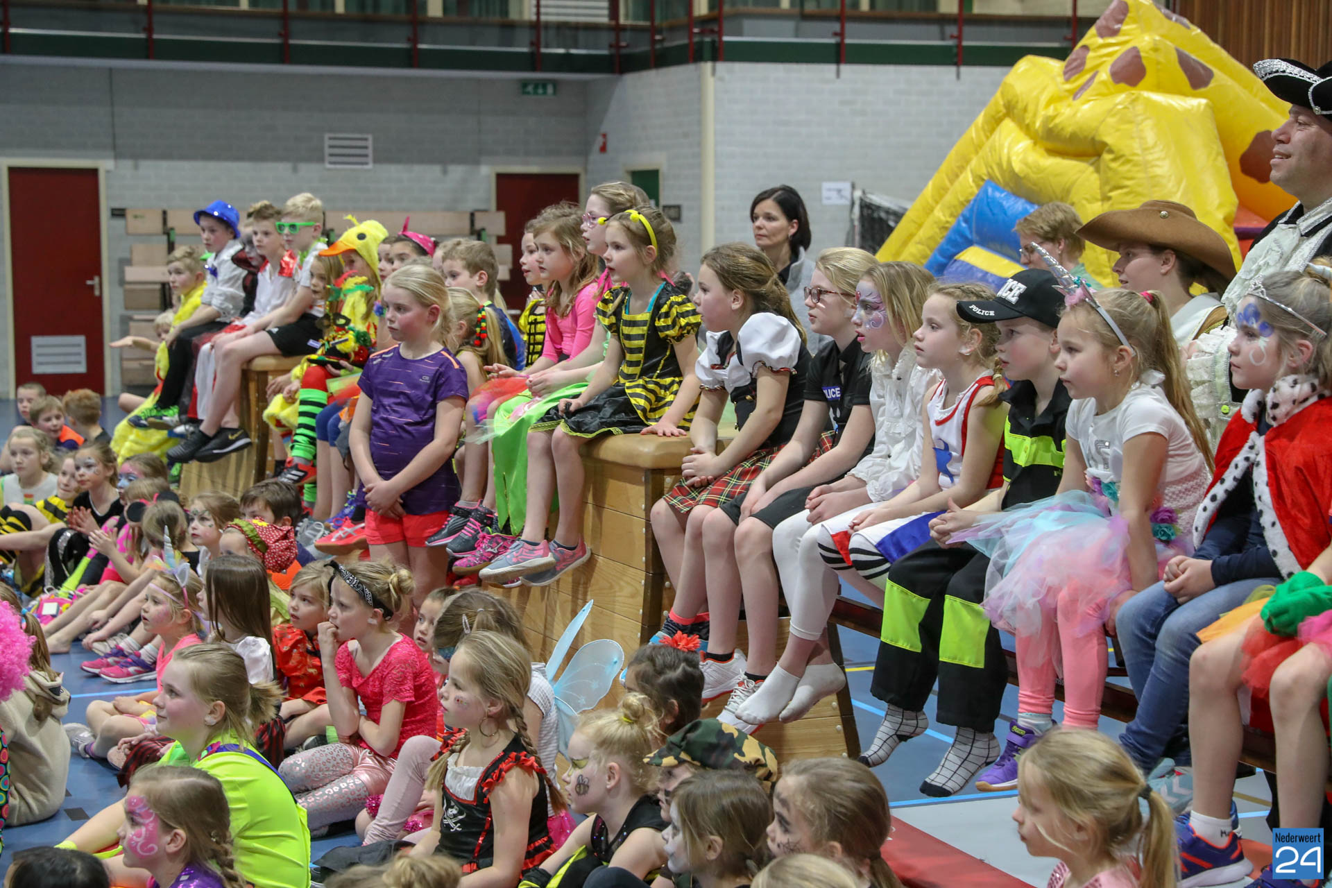 Ruim 100 kinderen in de leeftijd van 4-9 jaar kwamen woensdagavond om 17.30 uur verkleed naar Sportcentrum de Bengele in Nederweert. De kinderen konden in de hal een aantal spellen spelen en zich vermaken op de stormbaan.