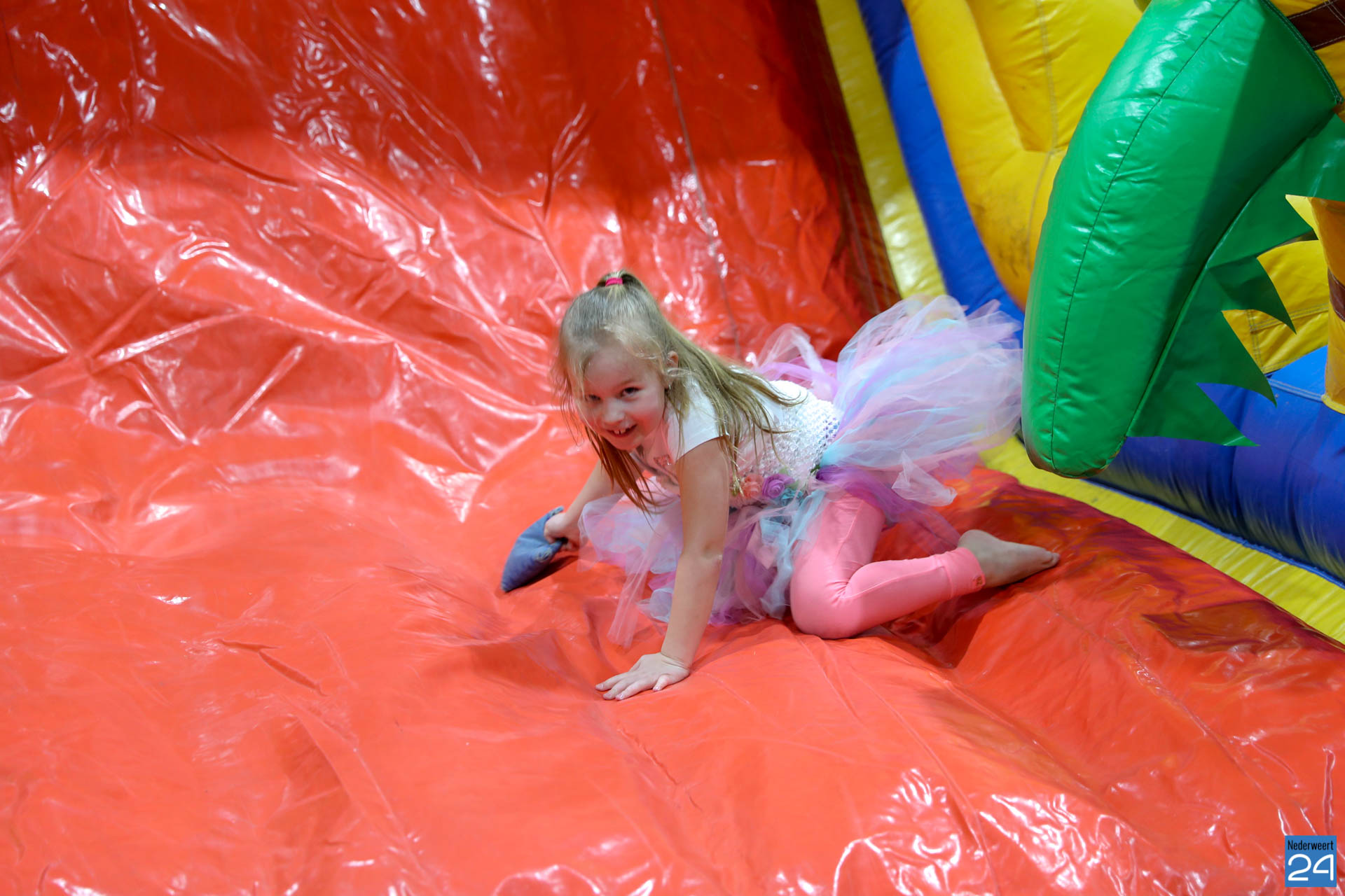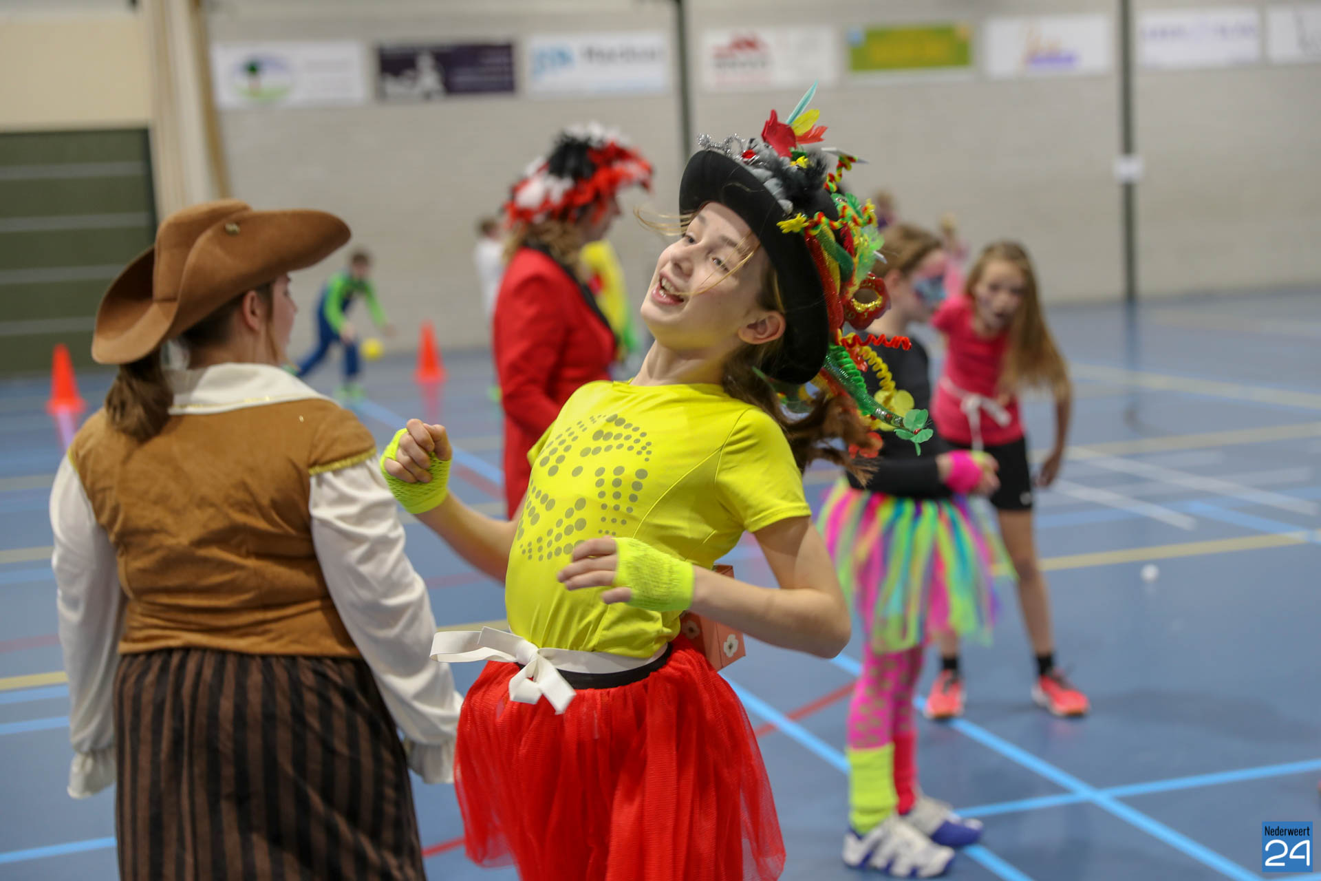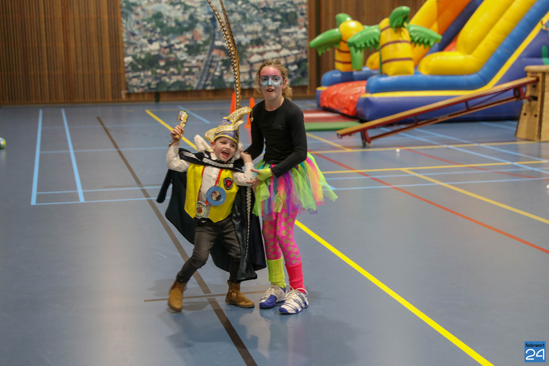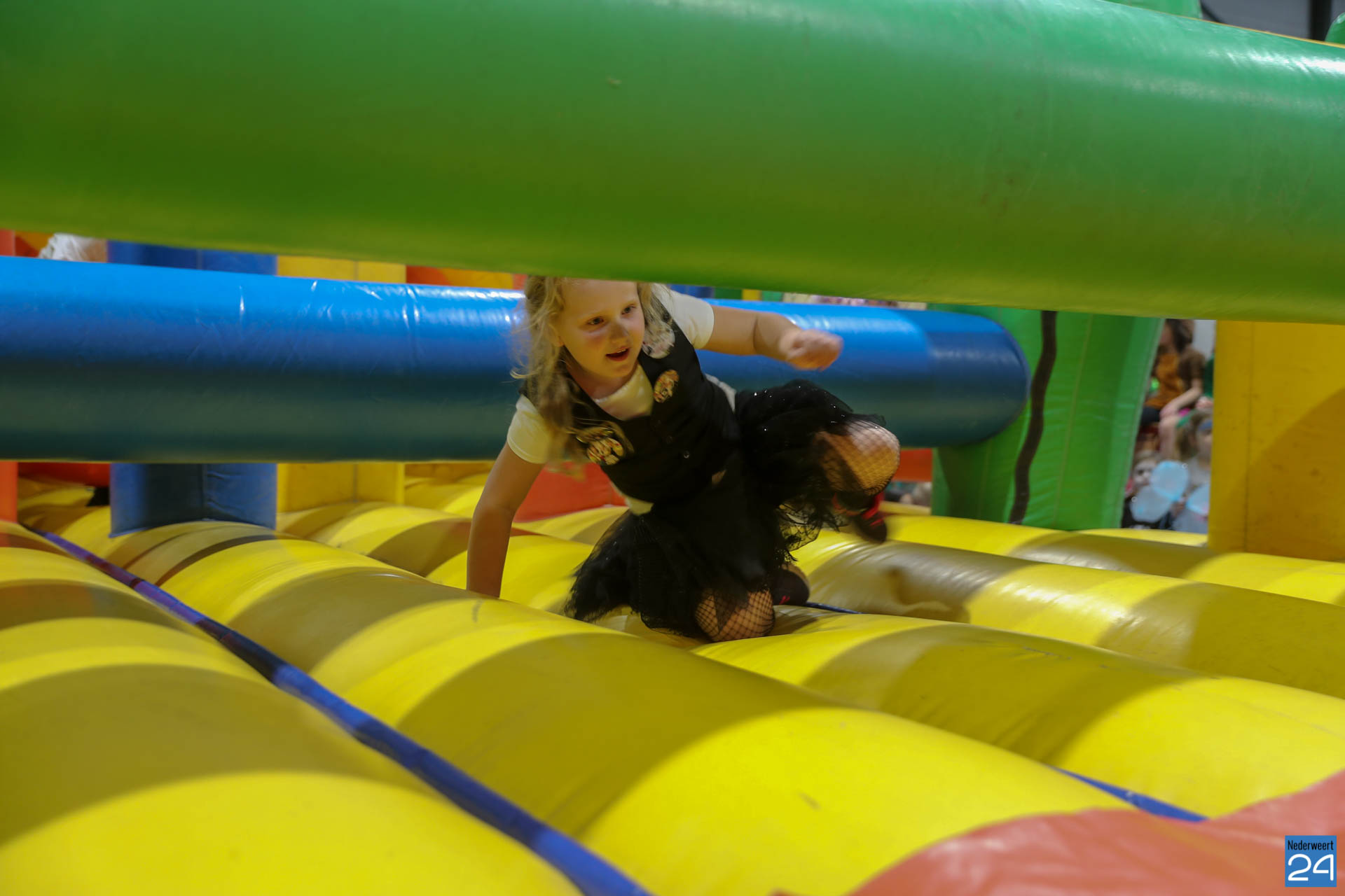 Ruim 100 kinderen in de leeftijd van 4-9 jaar kwamen woensdagavond om 17.30 uur verkleed naar Sportcentrum de Bengele in Nederweert. De kinderen konden in de hal een aantal spellen spelen en zich vermaken op de stormbaan.