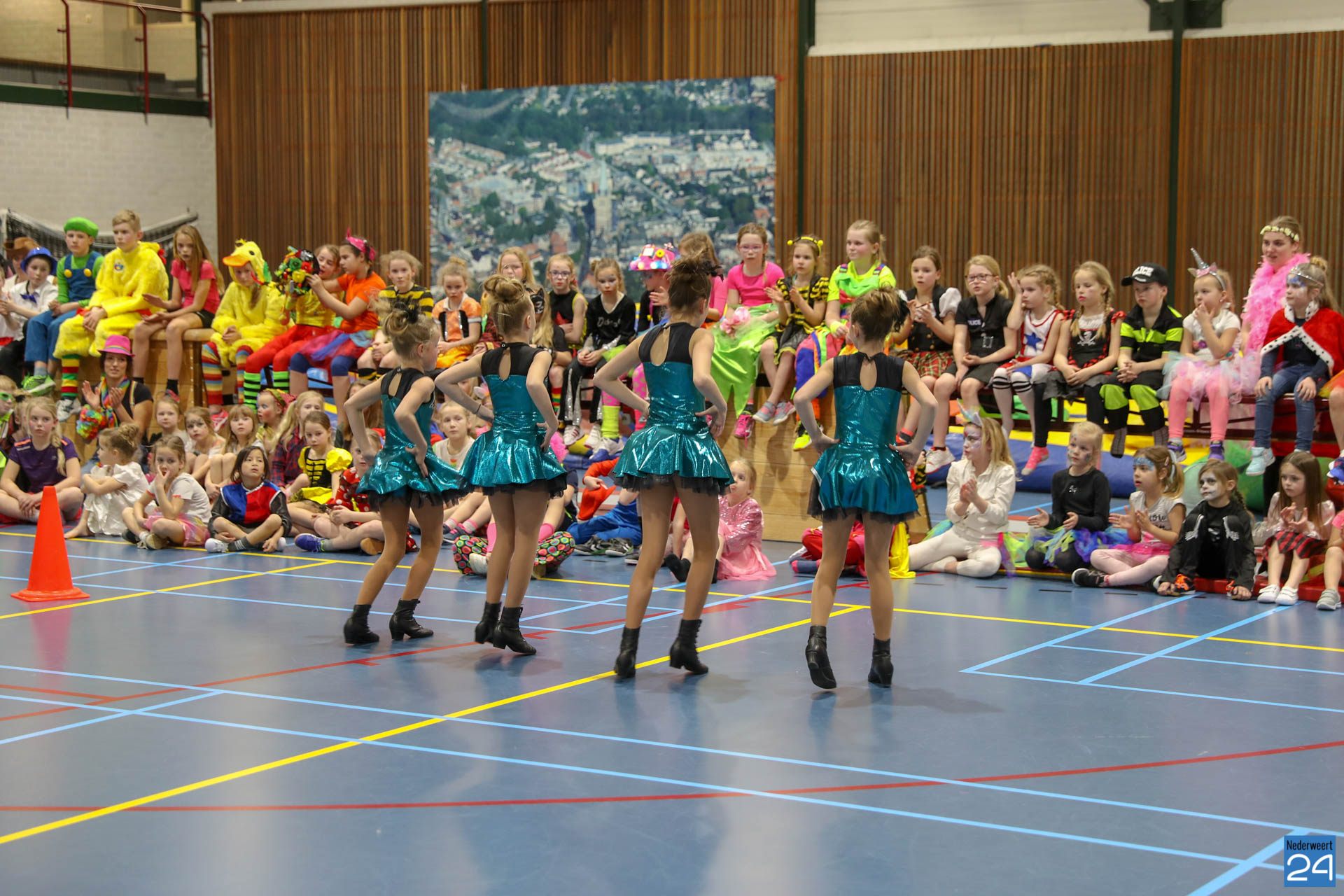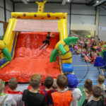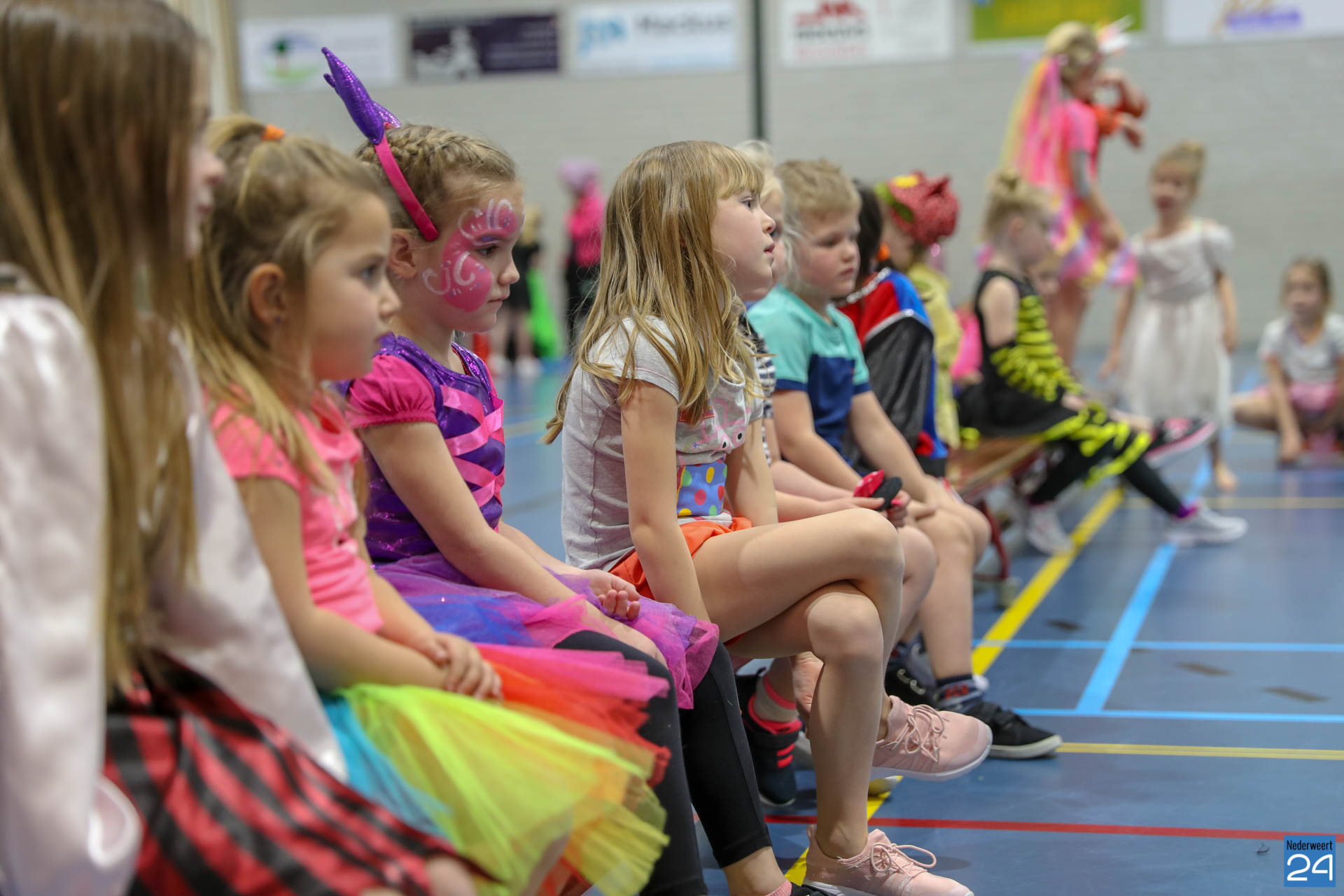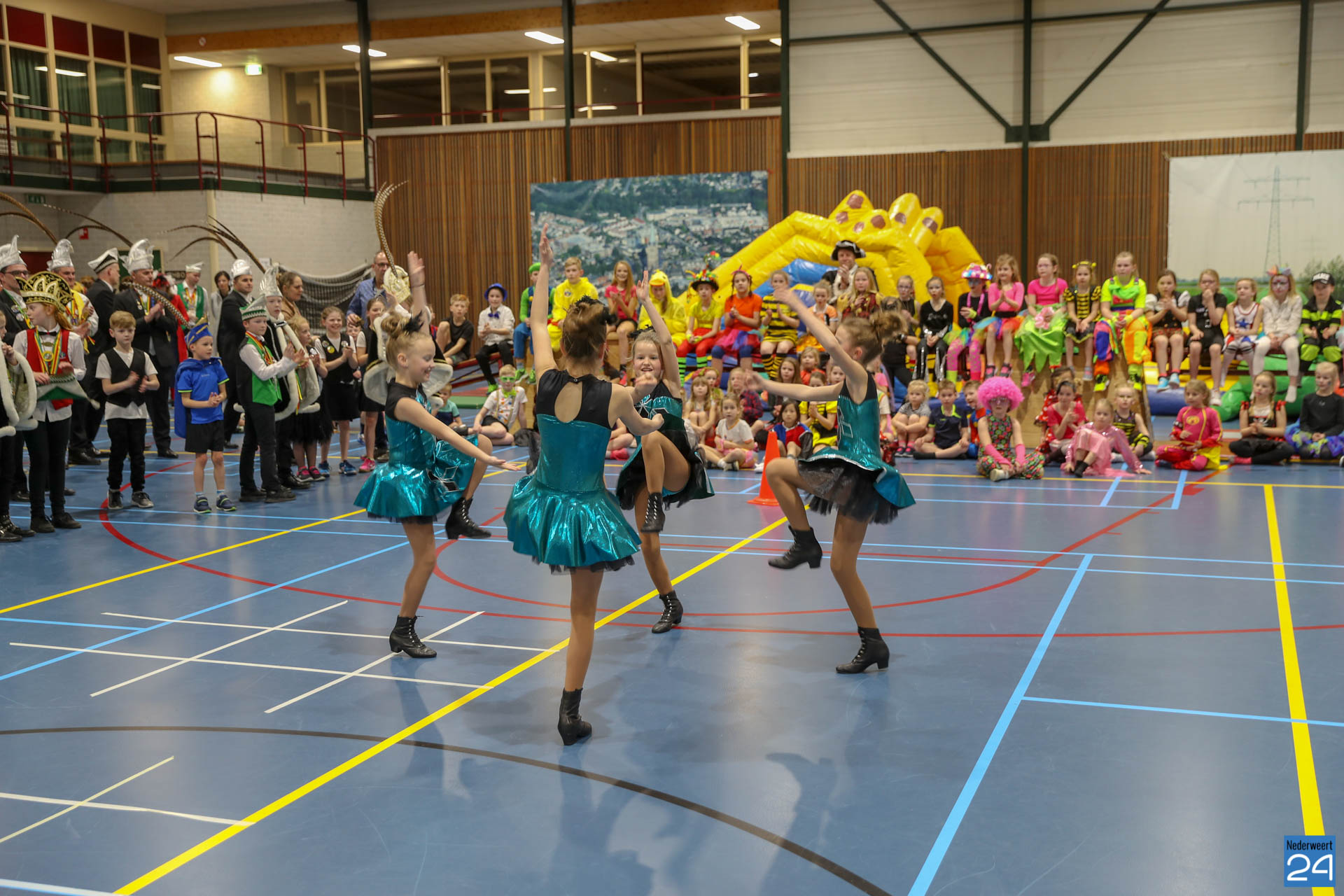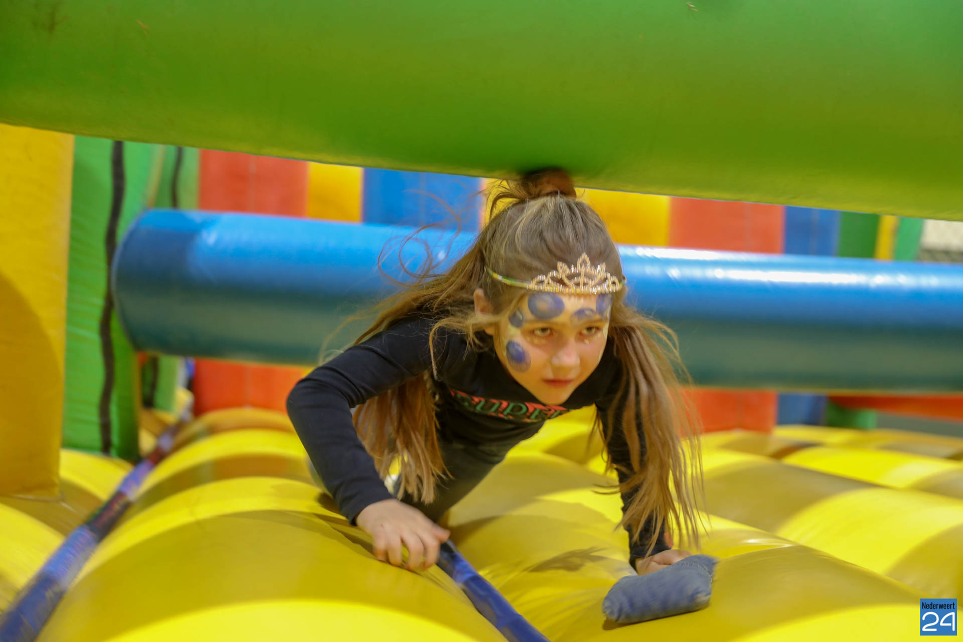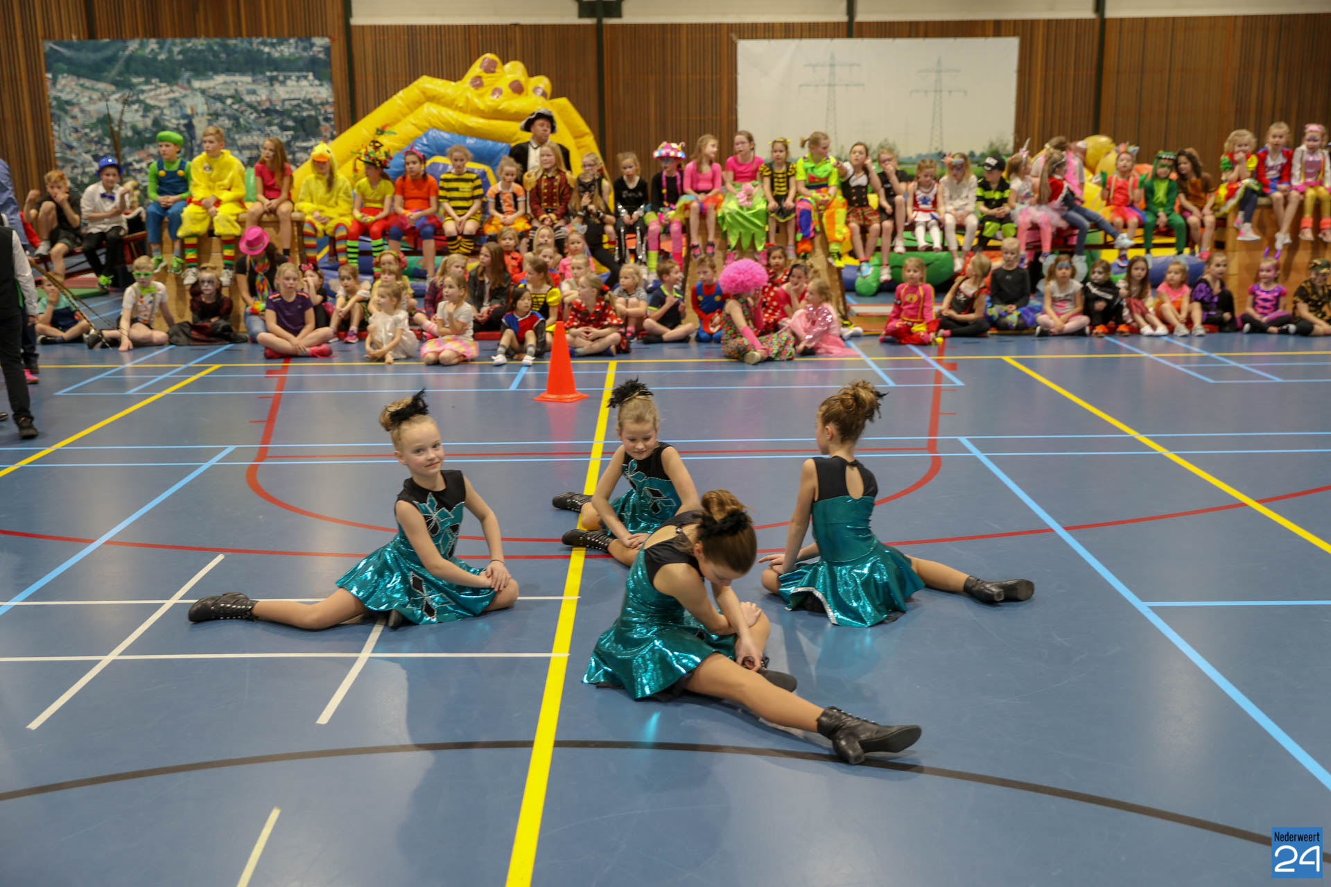 Ruim 100 kinderen in de leeftijd van 4-9 jaar kwamen woensdagavond om 17.30 uur verkleed naar Sportcentrum de Bengele in Nederweert. De kinderen konden in de hal een aantal spellen spelen en zich vermaken op de stormbaan.