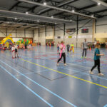 Dit jaar is de training met een speciaal tintje omdat Monique prinses van de Pinmaekers trainster is van de F-jeugd. Vandaar dat er dit jaar een echte stormbaan in de sporthal stond waar de kinderen op konden spelen.