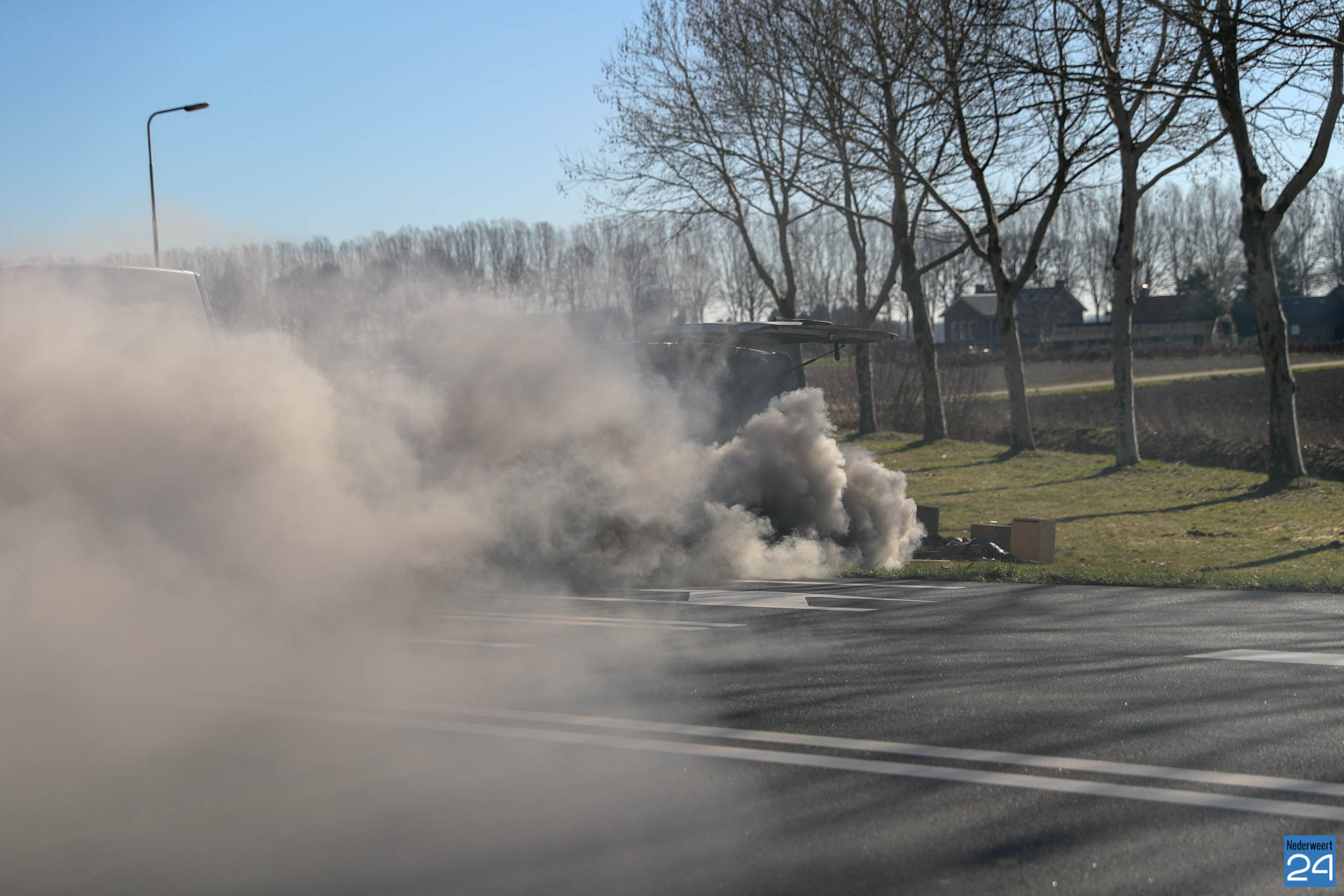 De bestuurder van de bestelbus reed vanuit Weert richting Nederweert-Eind. Net over de Randwegbrug begon de motor te sputteren en te roken. De bestuurder wist de bus echter nog in de berm te parkeren. Eenmaal tot stilstand gekomen draaide de motor op volle toeren met flinke rookpluim als gevolg. De motor werd uiteindelijk door een voorbijganger uitgezet waardoor de motor stopte en de rook ook verdween. De oververhitte motor zal waarschijnlijk flink wat schade hebben opgelopen.