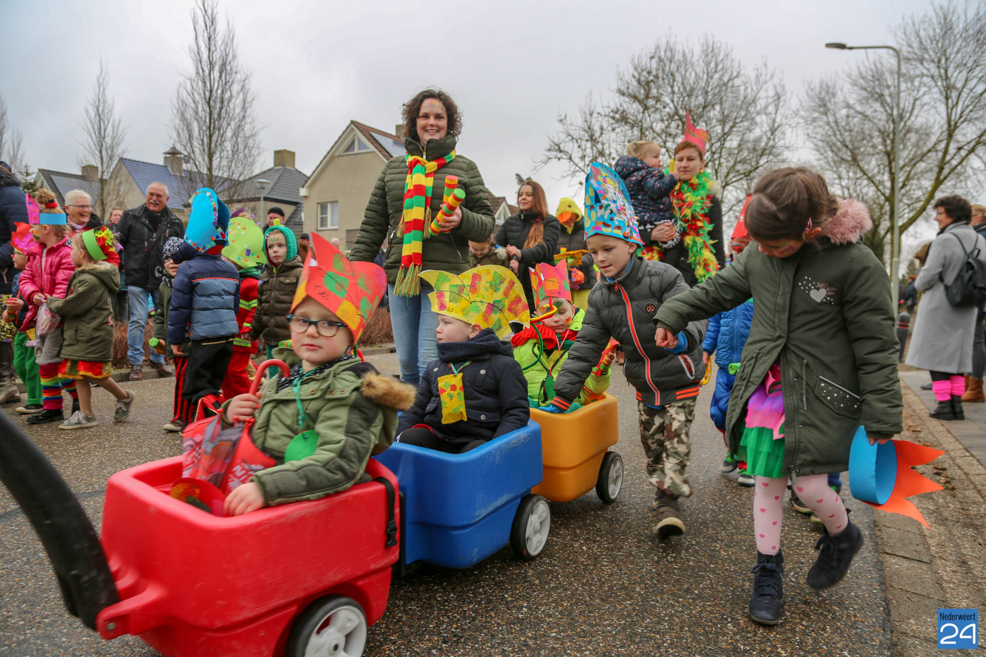 De kinderen van basisschool De Tweesprong in Nederweert-Eind hebben vrijdagmiddag weer een mooie optocht laten zien. Rond de klok van 13:00 uur vertrok vanaf het Pastoor Maesplein een kleurrijke tocht door de straten van Nederweert-Eind.