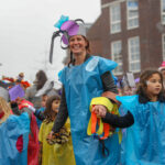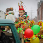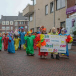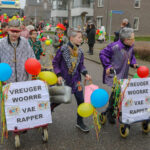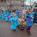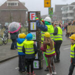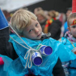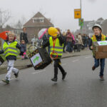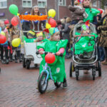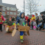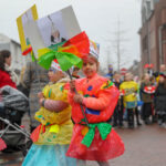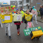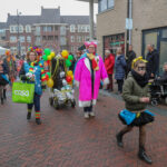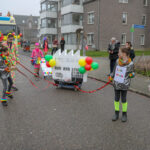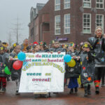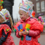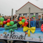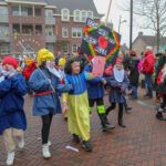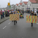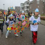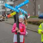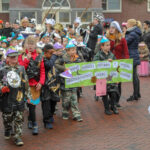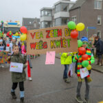 Het zonnetje liet zich niet zien maar het bleef gelukkig wel droog. De papa’s en mama’s, opa’s en oma’s en andere bekende en vrienden waren massaal komen kijken naar de prachtige kleurrijke optocht.
