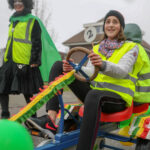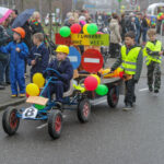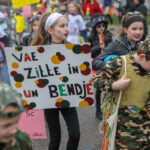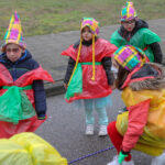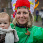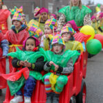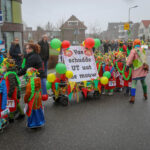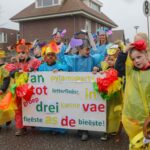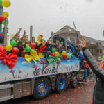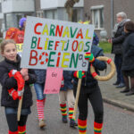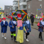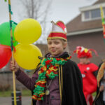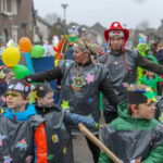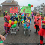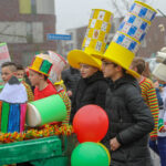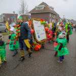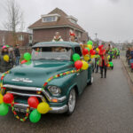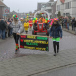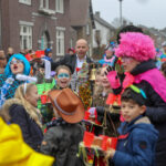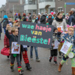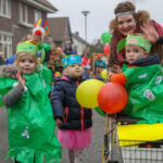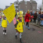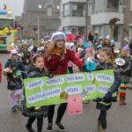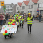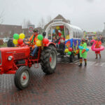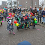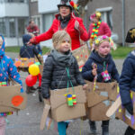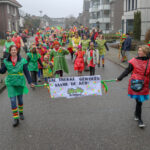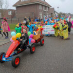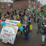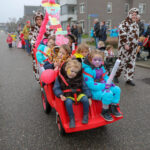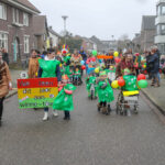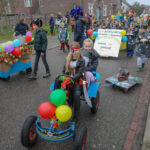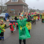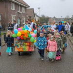 Het zonnetje liet zich niet zien maar het bleef gelukkig wel droog. De papa’s en mama’s, opa’s en oma’s en andere bekende en vrienden waren massaal komen kijken naar de prachtige kleurrijke optocht.