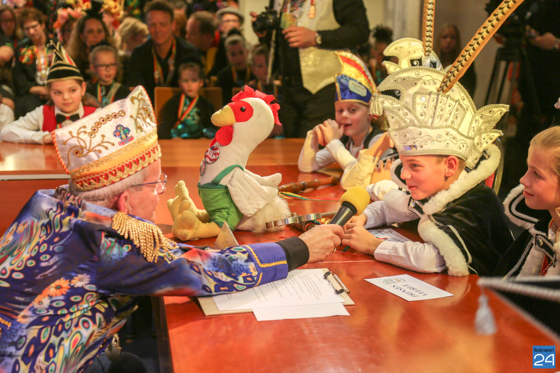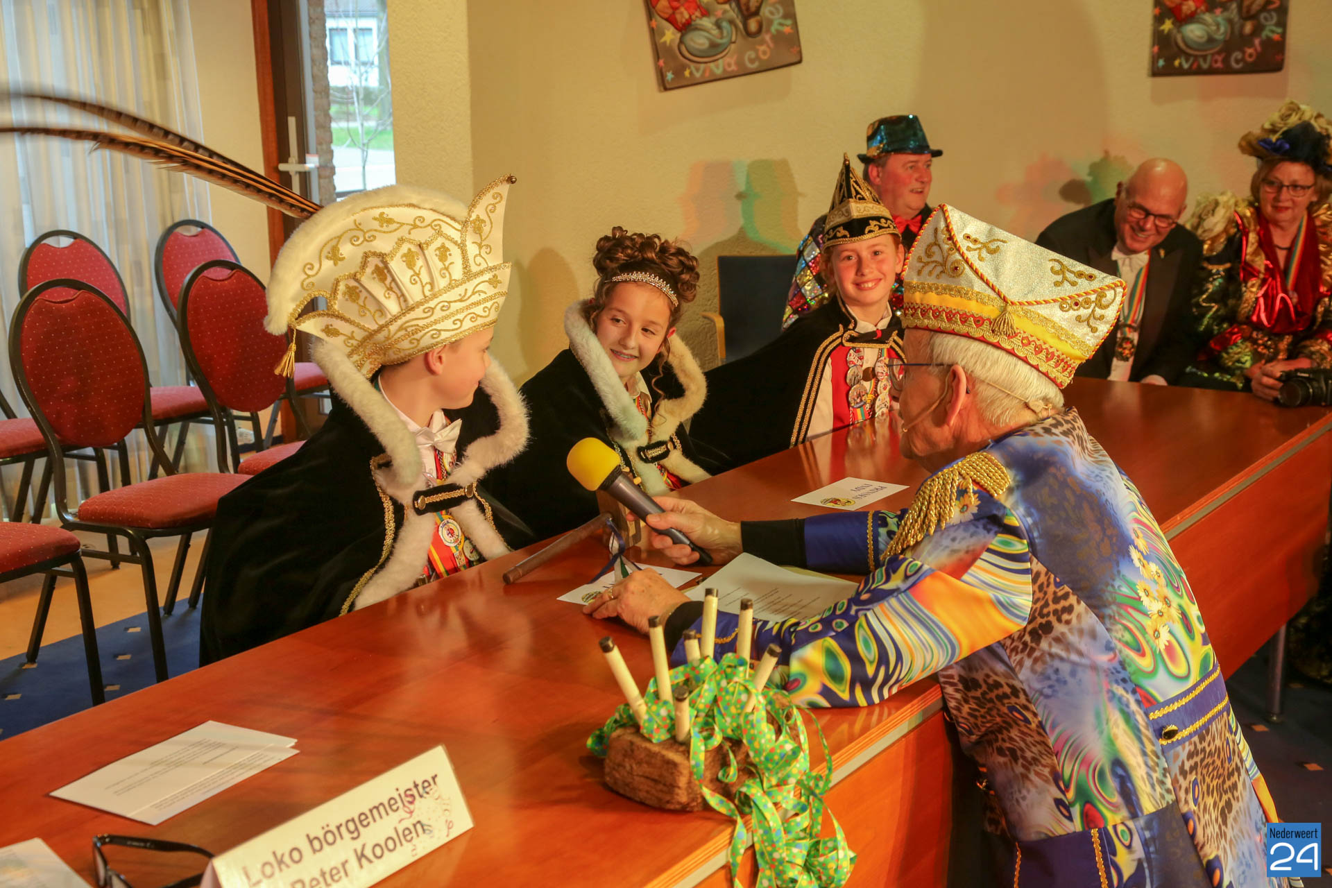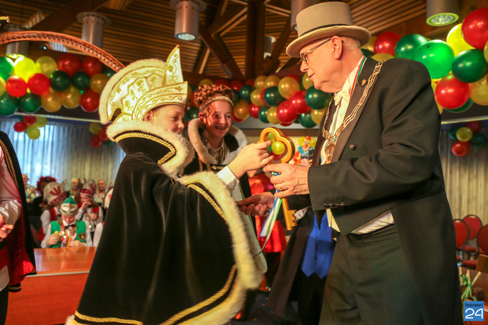 Zaterdagmiddag kwamen de jeugdprinsen met hun prinses, adjudanten, raad van elf en een grote groep aanhangers naar de Kolderzaal in het gemeentehuis van Nederweert om daar de macht over te nemen van loco burgemeester Peter Koolen. Ook televisiezender L1 was aanwezig voor opnames.