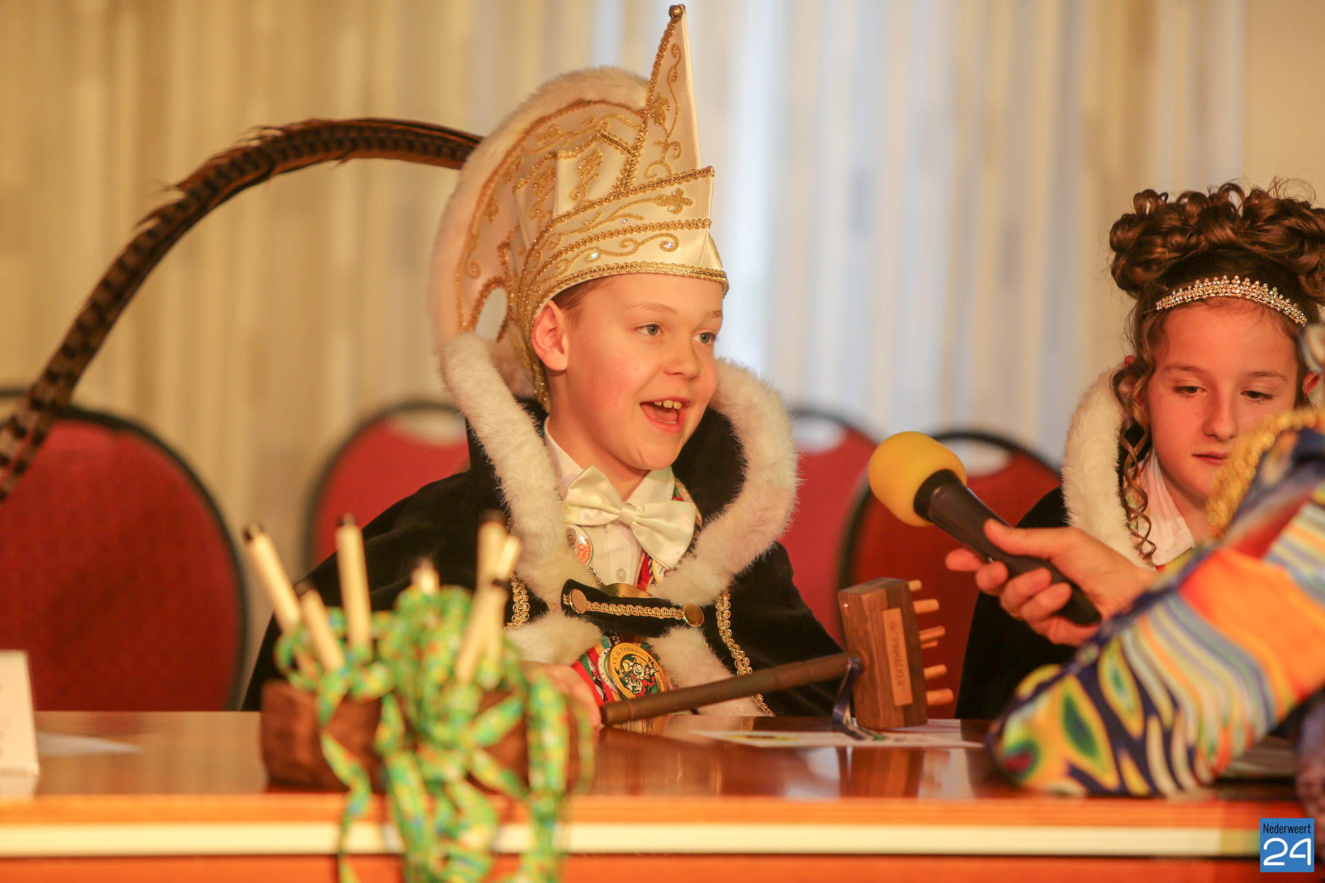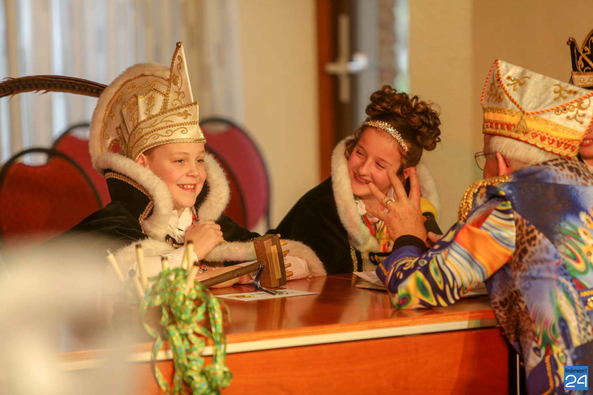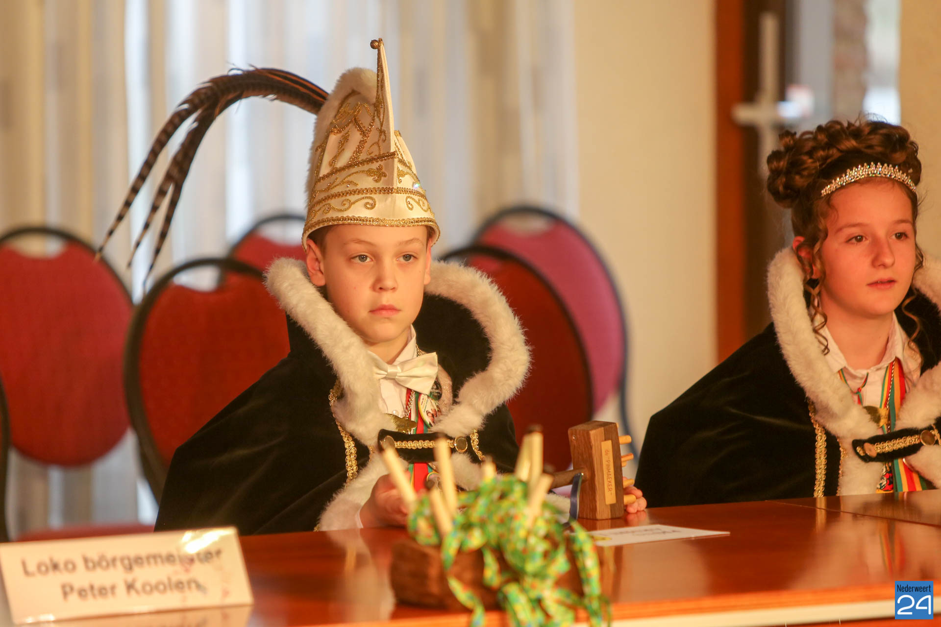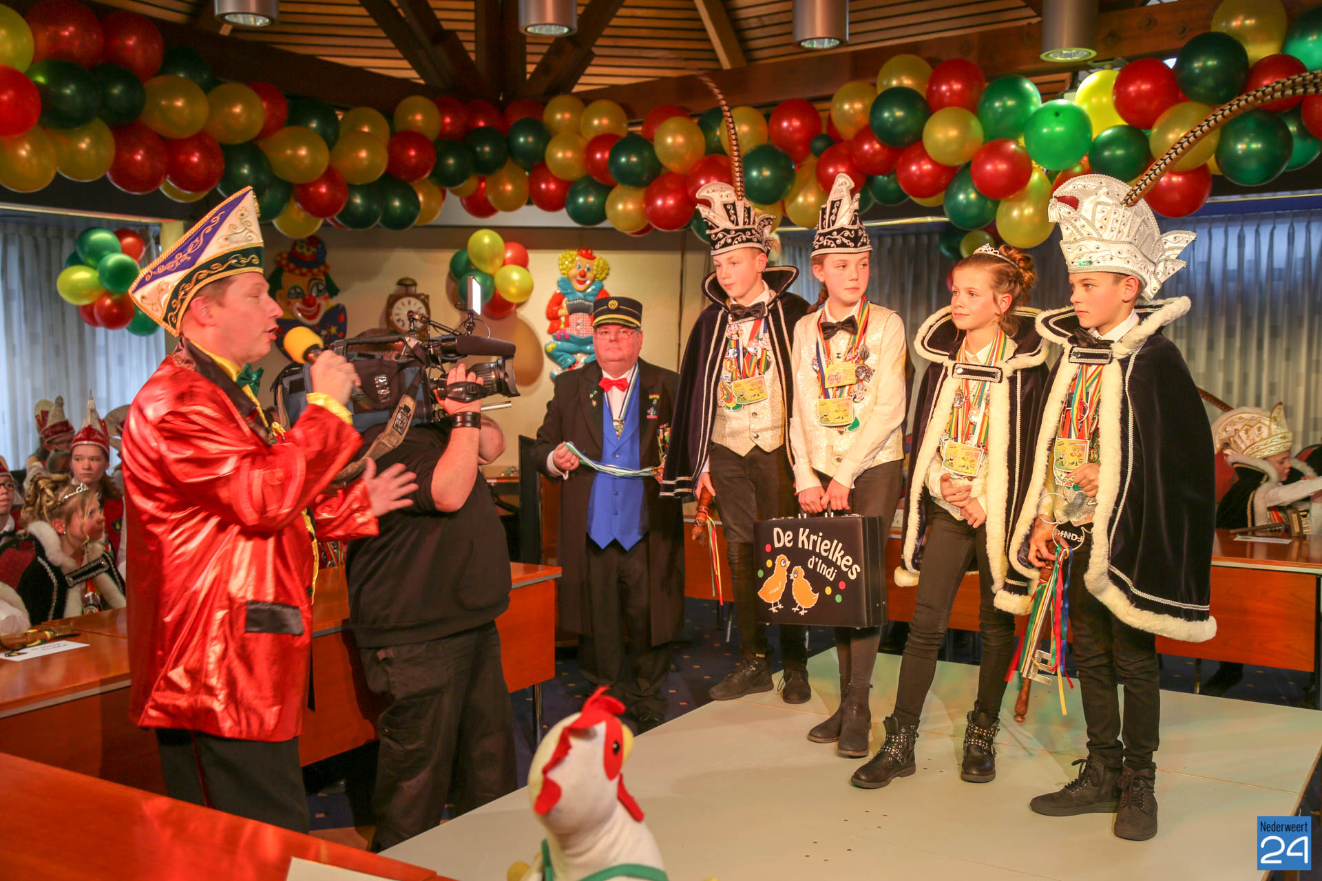 Zaterdagmiddag kwamen de jeugdprinsen met hun prinses, adjudanten, raad van elf en een grote groep aanhangers naar de Kolderzaal in het gemeentehuis van Nederweert om daar de macht over te nemen van loco burgemeester Peter Koolen. Ook televisiezender L1 was aanwezig voor opnames.