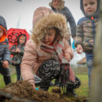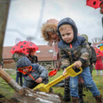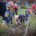 Als ‘groene’ kinderopvang vinden we het heel belangrijk dat kinderen iets mee krijgen van de natuur. Het groeien en bloeien staat dan ook centraal in ons centrum” aldus Marlous Verboogen, eigenaresse van Kindercentrum Hummelhoeve. Ondanks de regen gingen de peuters samen met Hubert aan de slag. “We hopen dat het een mooie grote boom gaat worden“.