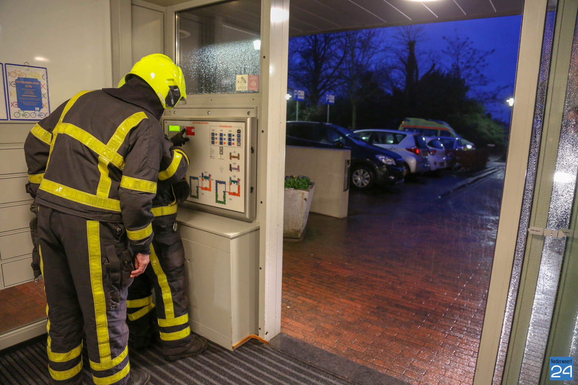 Uit voorzorg werden ook twee politie eenheden en een ambulance gealarmeerd. Ter plekke bleek de situatie mee te vallen. Mogelijk is kortsluiting in een paneel de oorzaak van de lichte rookontwikkeling.