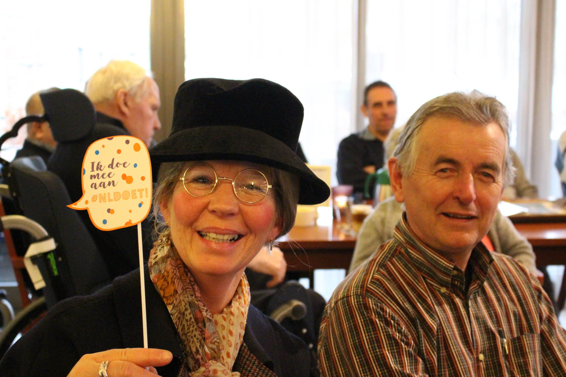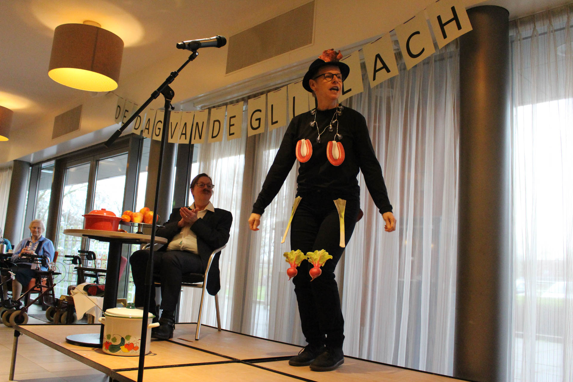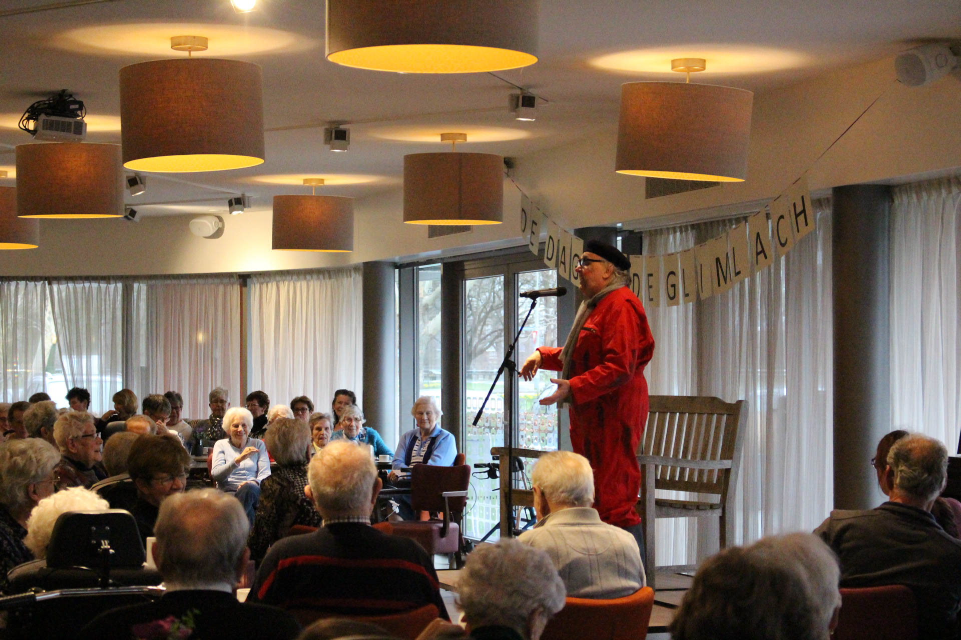 Gasterij de Ontmoeting in zorgcentrum St. Joseph zat zaterdagmiddag volledig gevuld met publiek. Een grote groep vrijwilligers en mantelzorgers hadden ervoor gezorgd dat bewoners aanwezig konden zijn op de Dag van de Glimlach. In het kader van NL Doet stond deze middag humor op het programma.