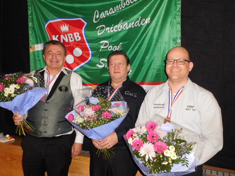 Rond 18.00 uur werd de prijsuitreiking gedaan. Johan Martens namens BDL/Verheggen Interieurs samen met de wedstrijdleider van de KNBB deden de huldiging met een toepasselijk praatje. Kampioen Arnaud Huibers, Joep Caers (tweede) en Robert Houben (derde) ontvingen de versierselen en een bos bloemen. Voor iedere finalist was er een fraaie standaard van het gewest en van de organiserende vereniging een bokaal. Ook de deelnemers lieten met hun applaus blijken het uitstekend naar de zin te hebben gehad in Nederweert en de verzorging en kwaliteit van het materiaal bijzonder gewaardeerd te hebben. Samengevat kan worden teruggekeken op een geslaagd evenement mede dankzij de inzet van arbiters, clubleden, barpersoneel en, uiteraard, een enthousiast supporters publiek.