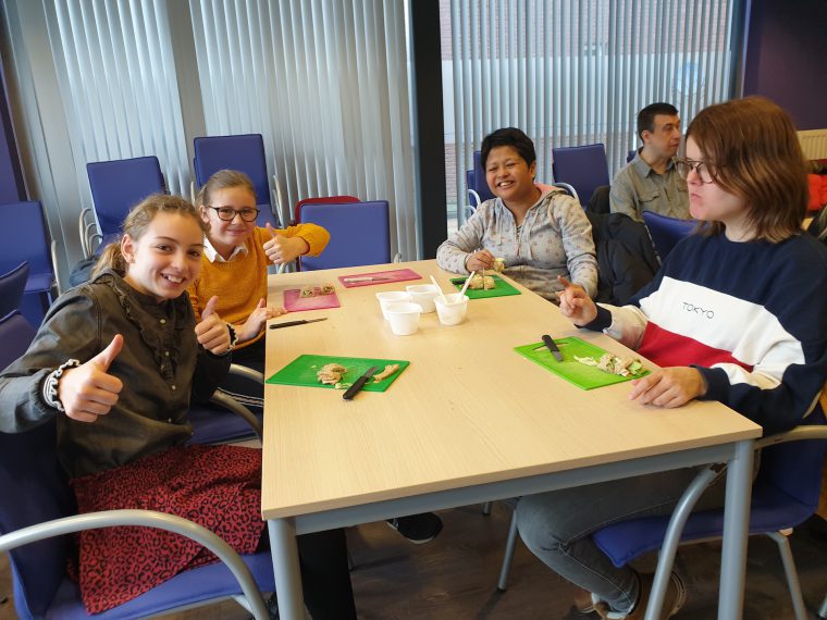 In gemixte groepjes waarin alle doelgroepen zaten beleefden ze drie onderdelen. Samen maakten ze een lekker en gezond gerechtje, broodsushi. Daarnaast werd er aan de slag gegaan met de zintuigen. Zo roken, proefden en voelden ze verschillende producten. In overleg werd er bepaald welke producten het waren. Als laatste onderdeel speelden men samen gezelschapsspellen, ook hierbij was samenwerken erg belangrijk.