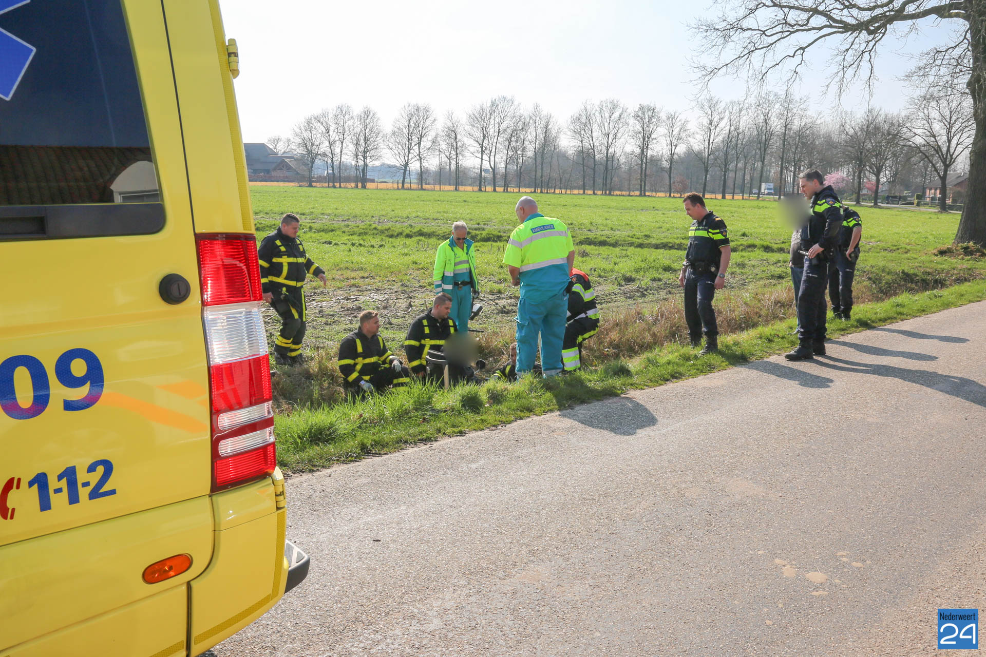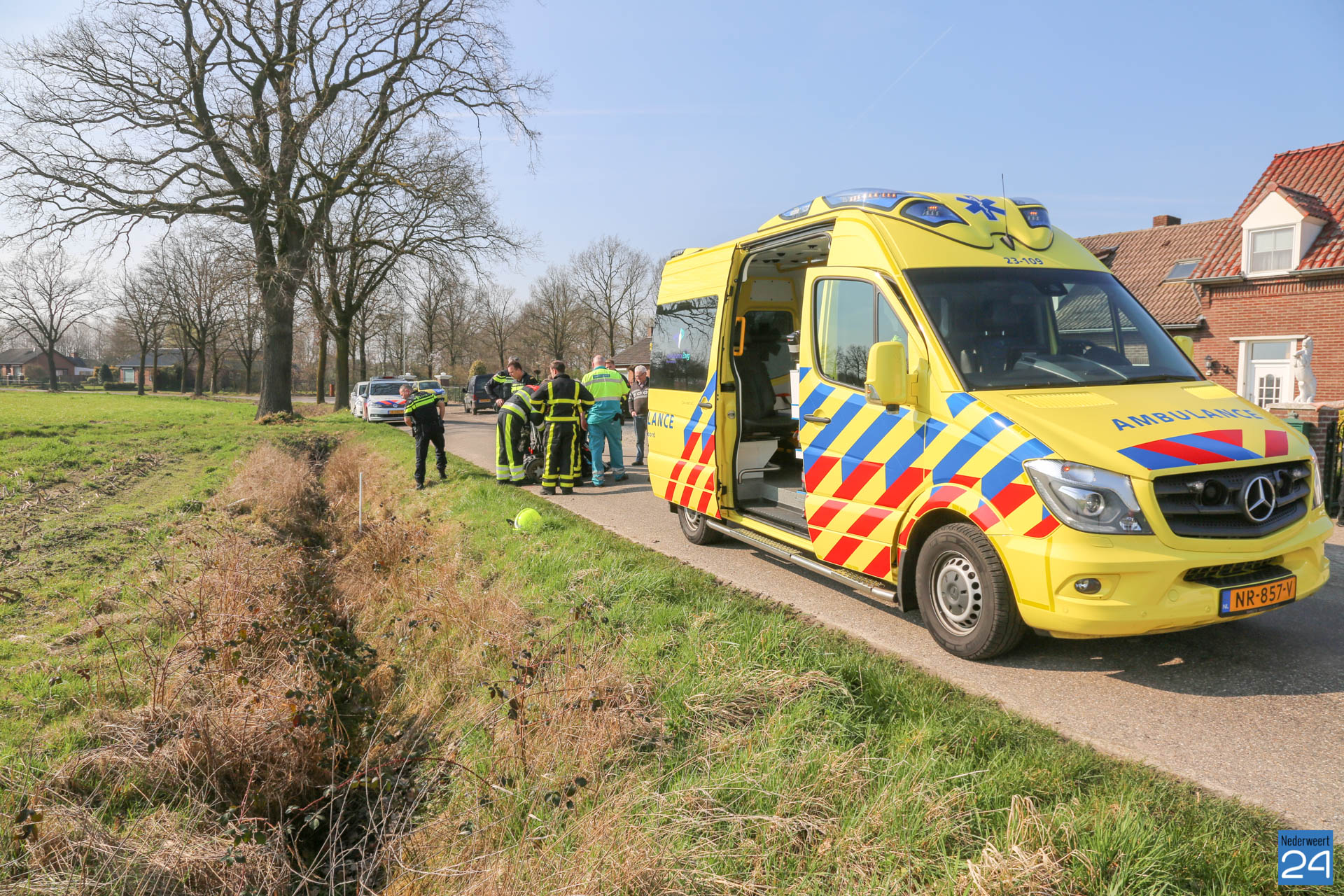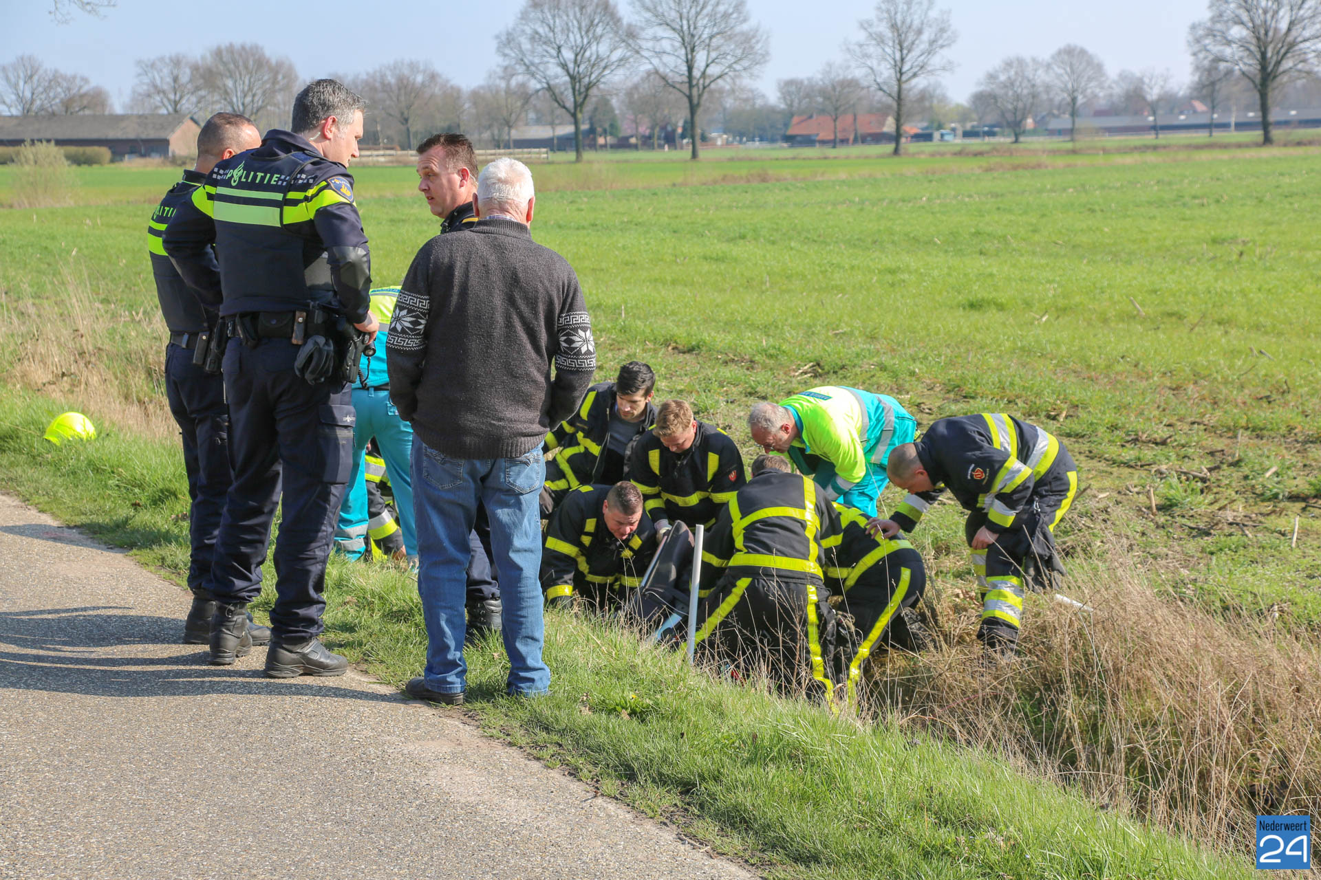 Donderdagmiddag is een persoon met zijn rolstoel in de sloot naast de Lage Kuilen in Nederweert geraakt.