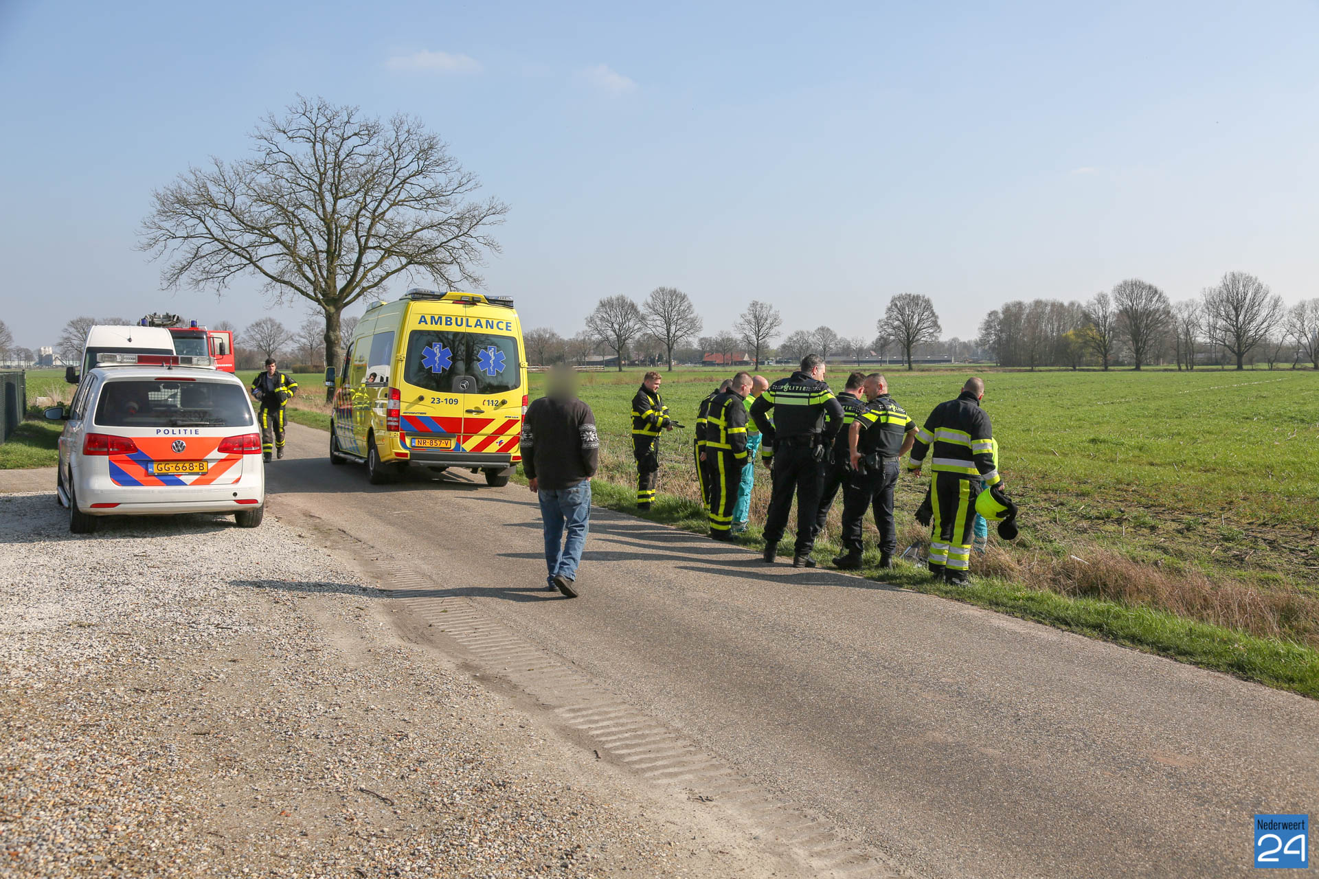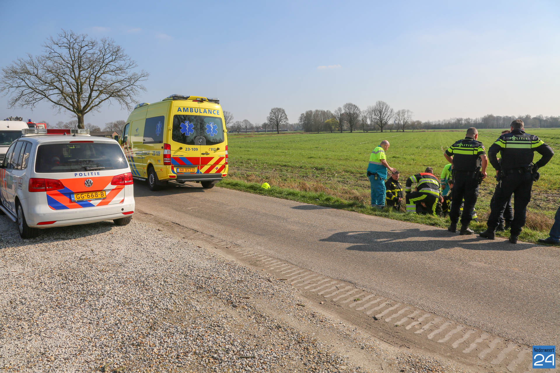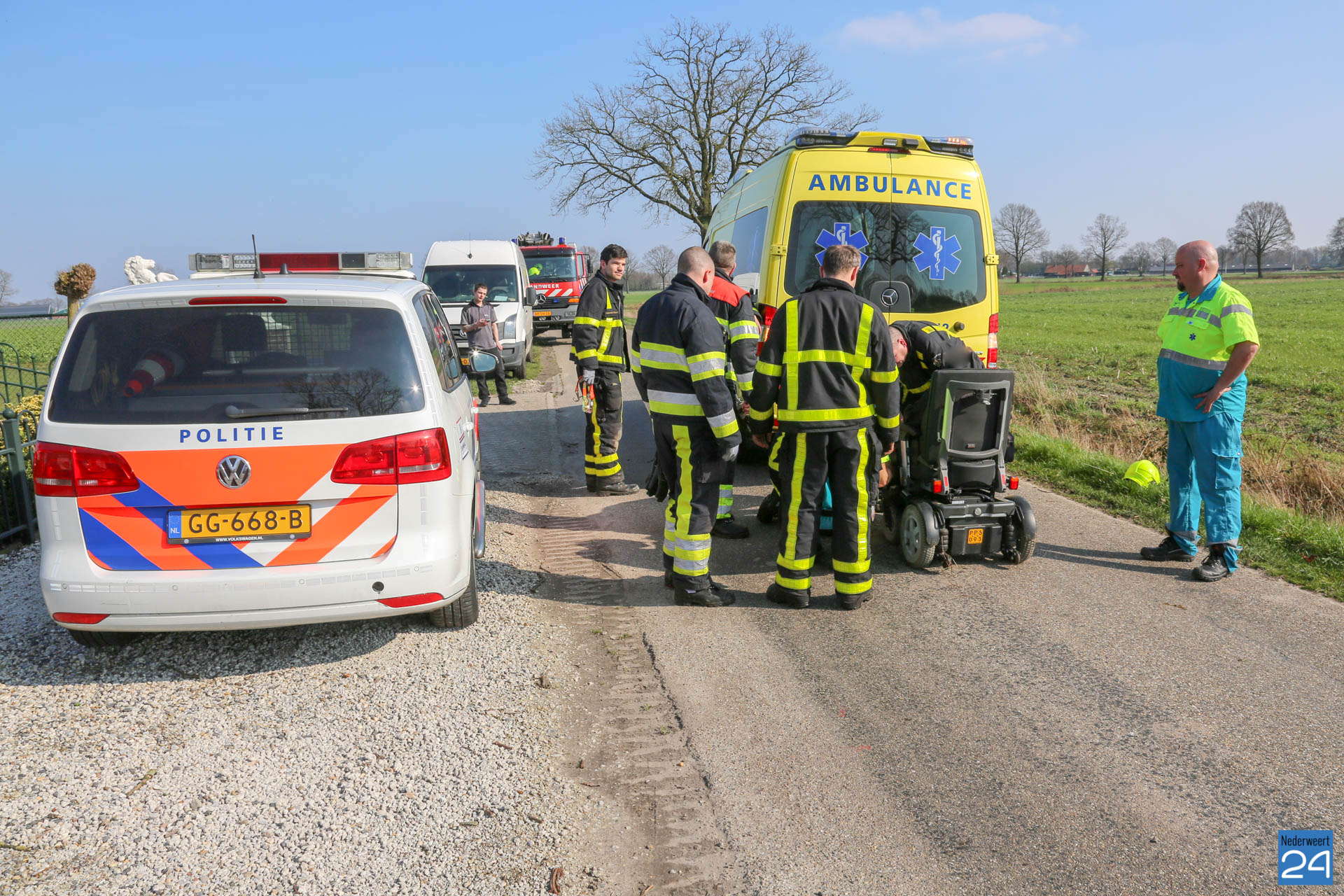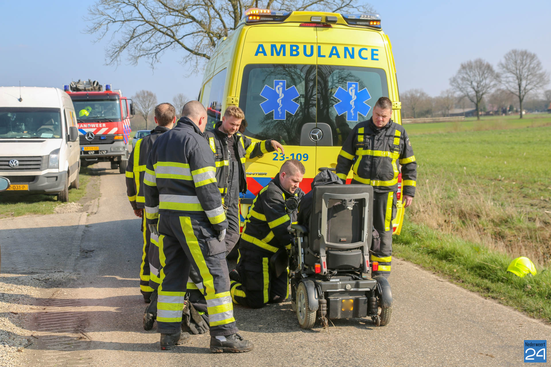Donderdagmiddag is een persoon met zijn rolstoel in de sloot naast de Lage Kuilen in Nederweert geraakt.
