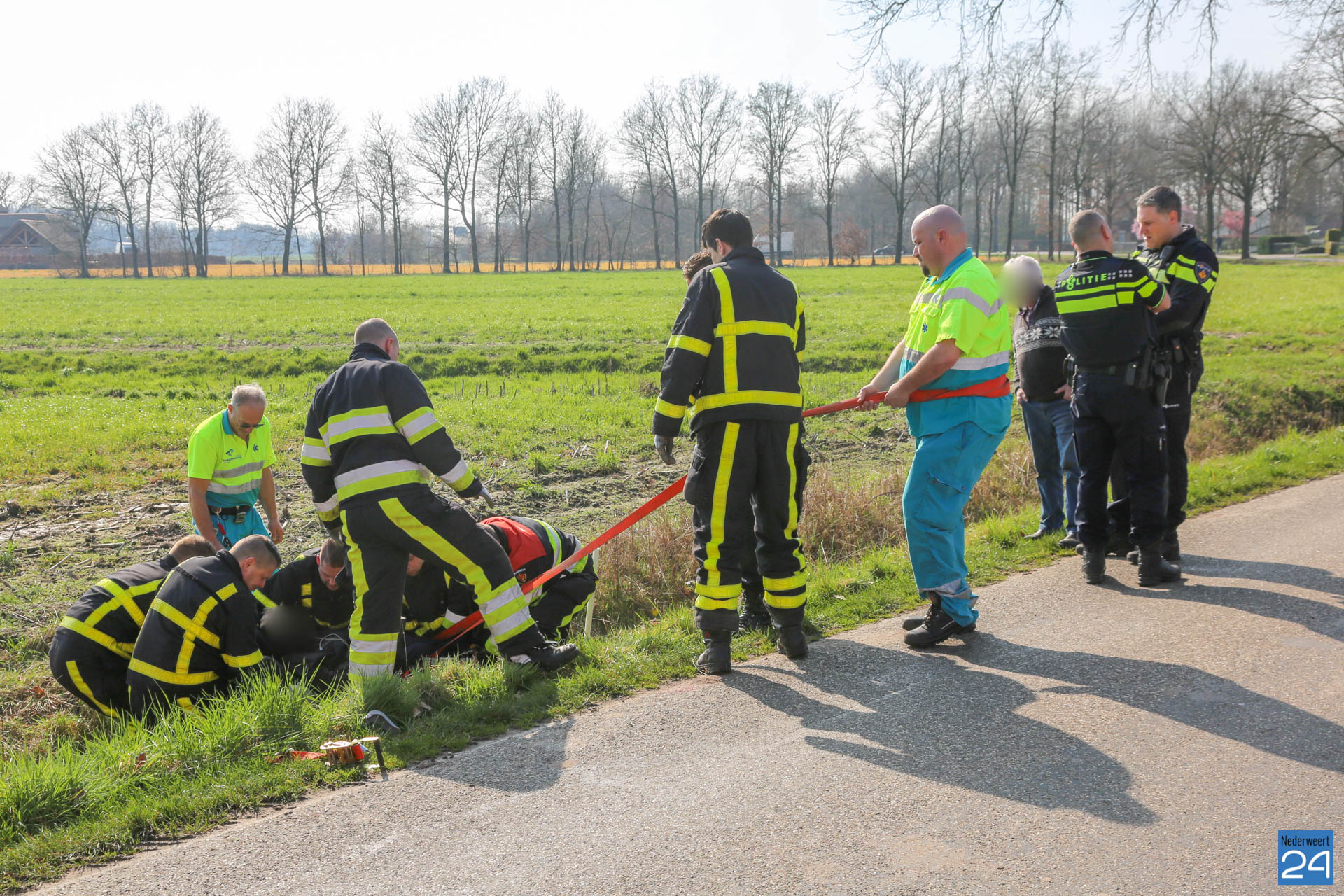 Een voorbijganger hoorde de man roepen en schoot direct te hulp. Hij kon echter op eigenkracht de man niet uit de sloot krijgen. Daarop besloot hij de hulpdiensten te bellen.