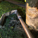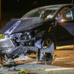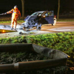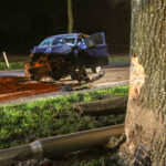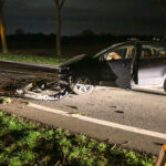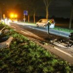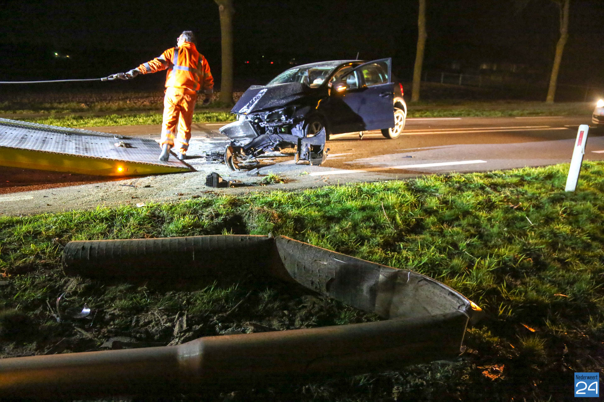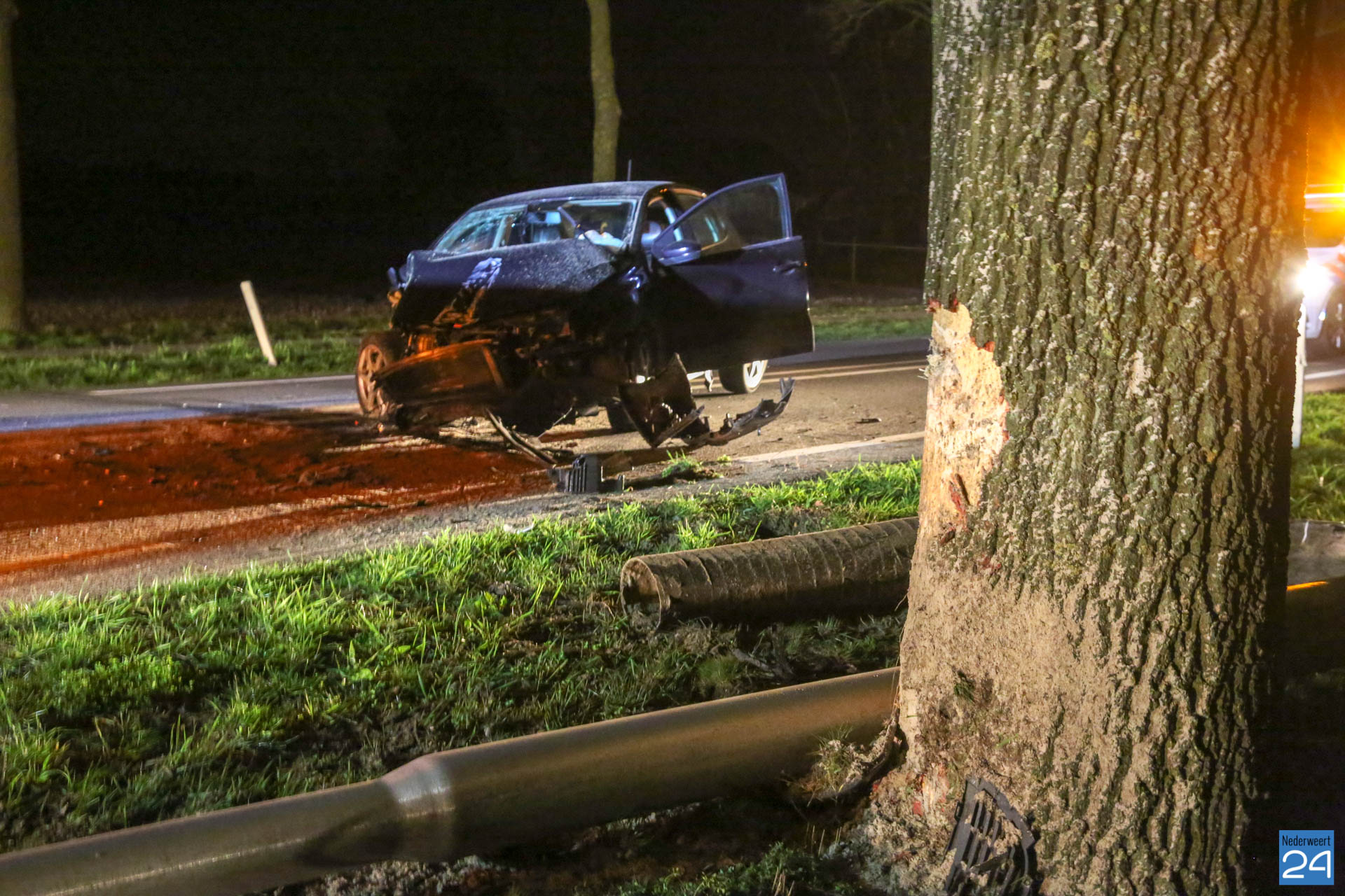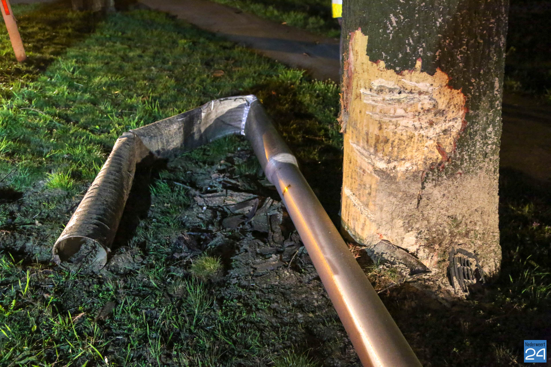 De personenauto kwam door nog een onbekende oorzaak in botsing met een lichtmast en een boom. Het voertuig raakte zwaar beschadigd en de lichtmast brak af en kwam vervolgens in de berm terecht.