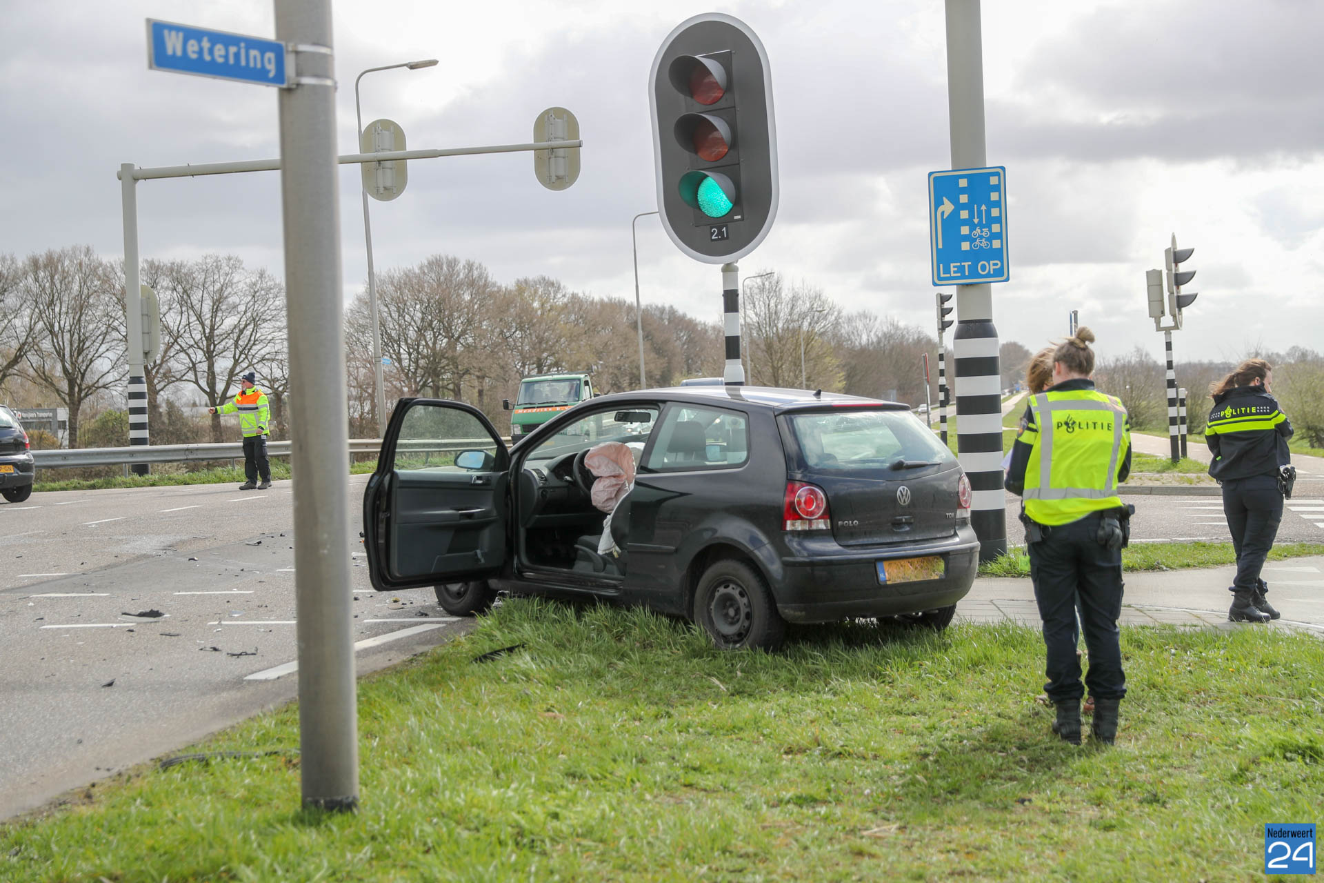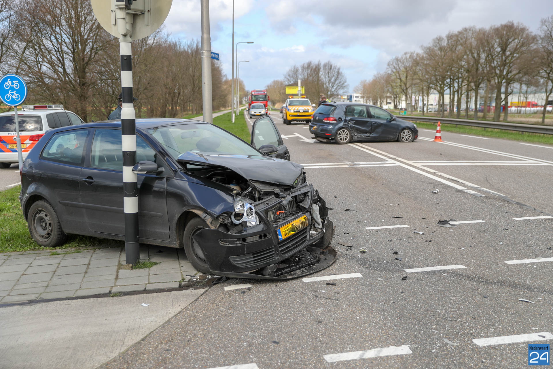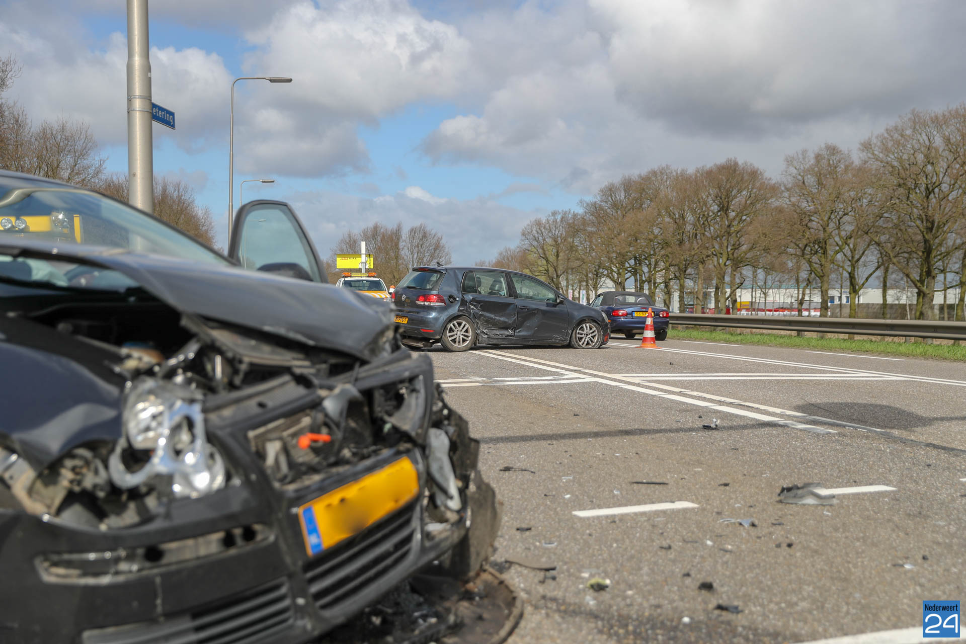 Maandagmiddag zijn twee auto’s met elkaar in botsing gekomen op de kruising Peelsteeg / Winnerstraat – Wetering / Rijksweg Noord bij Brug 14 in Nederweert.