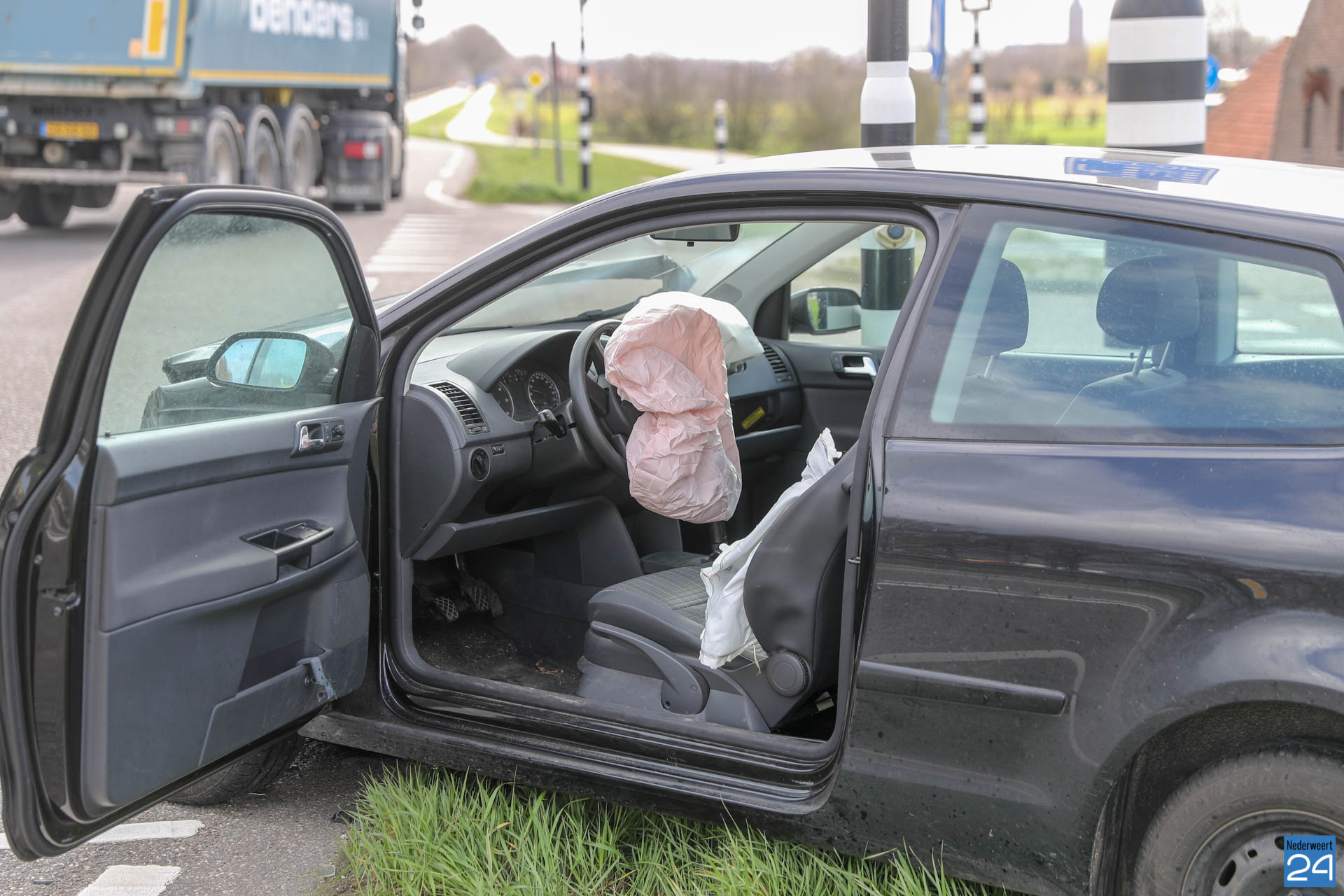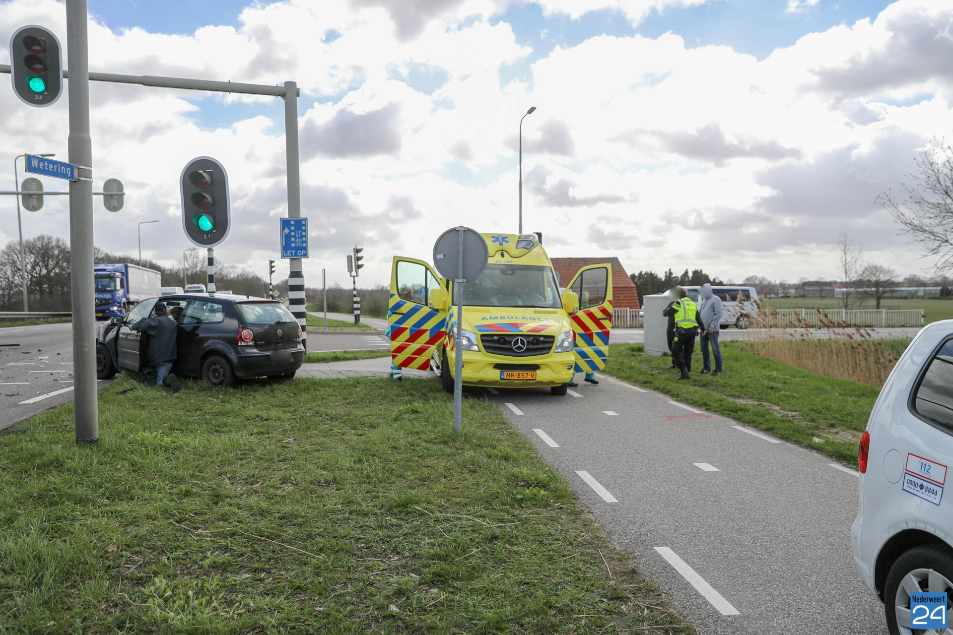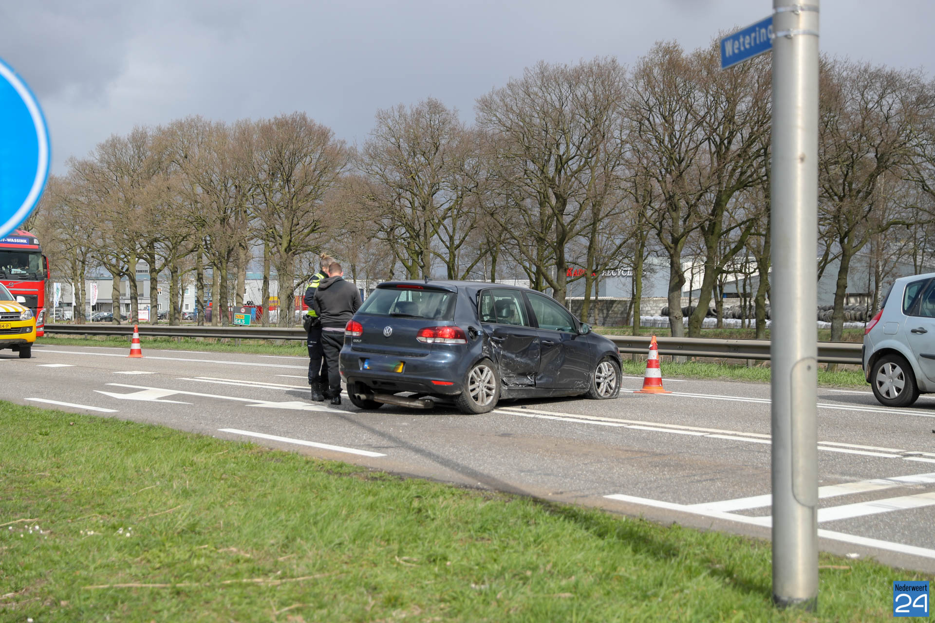 Maandagmiddag zijn twee auto’s met elkaar in botsing gekomen op de kruising Peelsteeg / Winnerstraat – Wetering / Rijksweg Noord bij Brug 14 in Nederweert.