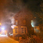 De brand woedde in de houten vloer, die de scheiding vormt tussen de kelder en de begane grond, en ging gepaard met veel rook. Omwonenden kregen het advies om ramen en deuren gesloten te houden.