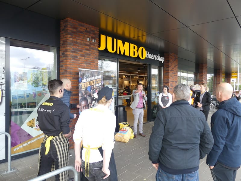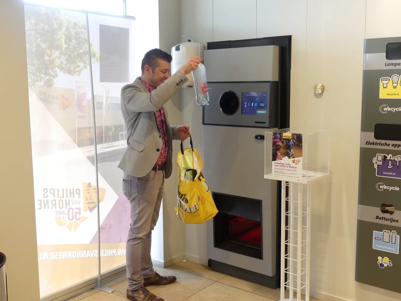 Aanwezig waren ook de jubileumcommissie van de school en enkele personeelsleden van de supermarkt. Alle supermarkten van de Jumbo-Heerschap groep in de regio Weert doen mee met deze ‘statiegeld-actie’. Stan Heerschap memoreerde “het belang van maatschappelijk ondernemen in relatie tot het grote aantal goede doelen in de regio“. Geert Gabriels hield een pleidooi voor -kleinschalige- acties voor onderwijsprojecten in ontwikkelingslanden op gemeentelijk niveau en prees de jarenlange inzet van de ‘Philips’ op dit terrein. Na de officiële opening werd de daad bij het woord gevoegd en werden de eerste lege flessen ingeleverd.