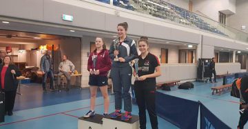 Vanochtend om 7.00 uur vertrokken ze naar Den Haag om deel te nemen aan A-Jeugdranglijsttoernooi. “Ondanks dat de loting niet in mijn voordeel was wist ik mijn eerste twee wedstrijden te winnen tegen resp. Sanne Briefjes 11-9, 11-2, 11-9 en Chana van der Venne 11-9, 11-7, 9-11, 11-6” aldus Karlijn. ” In de halve finale moest ik het opnemen tegen Emime Ernst. Ik verloor in drie sets (11-8, 11-3 en 11-9) tegen de latere toernooiwinnares. De wedstrijd om de bronzen plak speelde ik tegen Dobrila Jorguseska. Het was een heel spannende wedstrijd en we waren aan elkaar gewaagd. Uiteindelijk trok ik na vijf sets aan het langste eind, met 7-11, 11-5, 8-11, 12-10 en 11-3.”