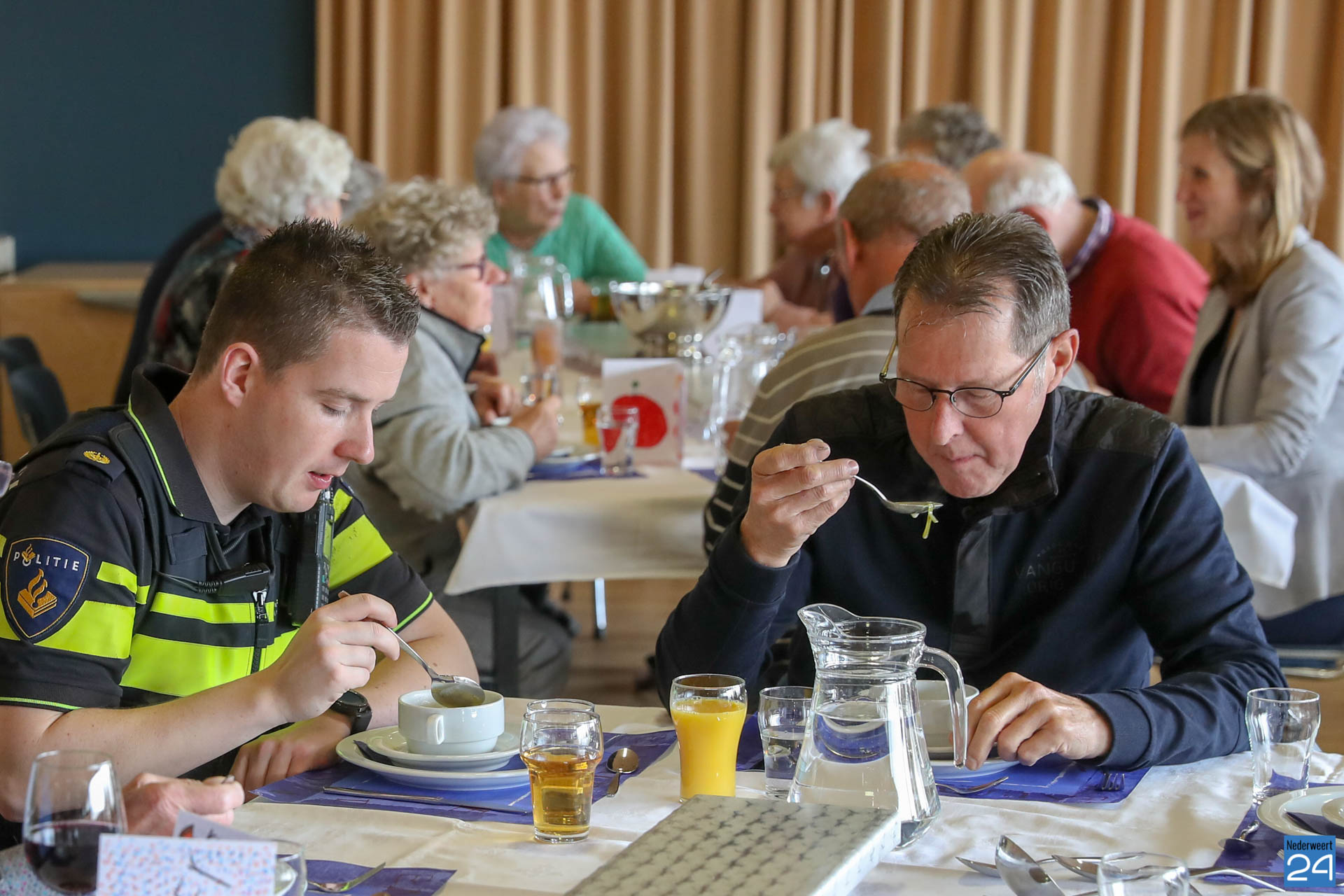 Vandaag hebben de wijkagenten Bram Kurvers en Dennie Joosten en de regisseur leefbaarheid Iris van de Ven van de gemeente Nederweert de open eettafel in Budschop bezocht.