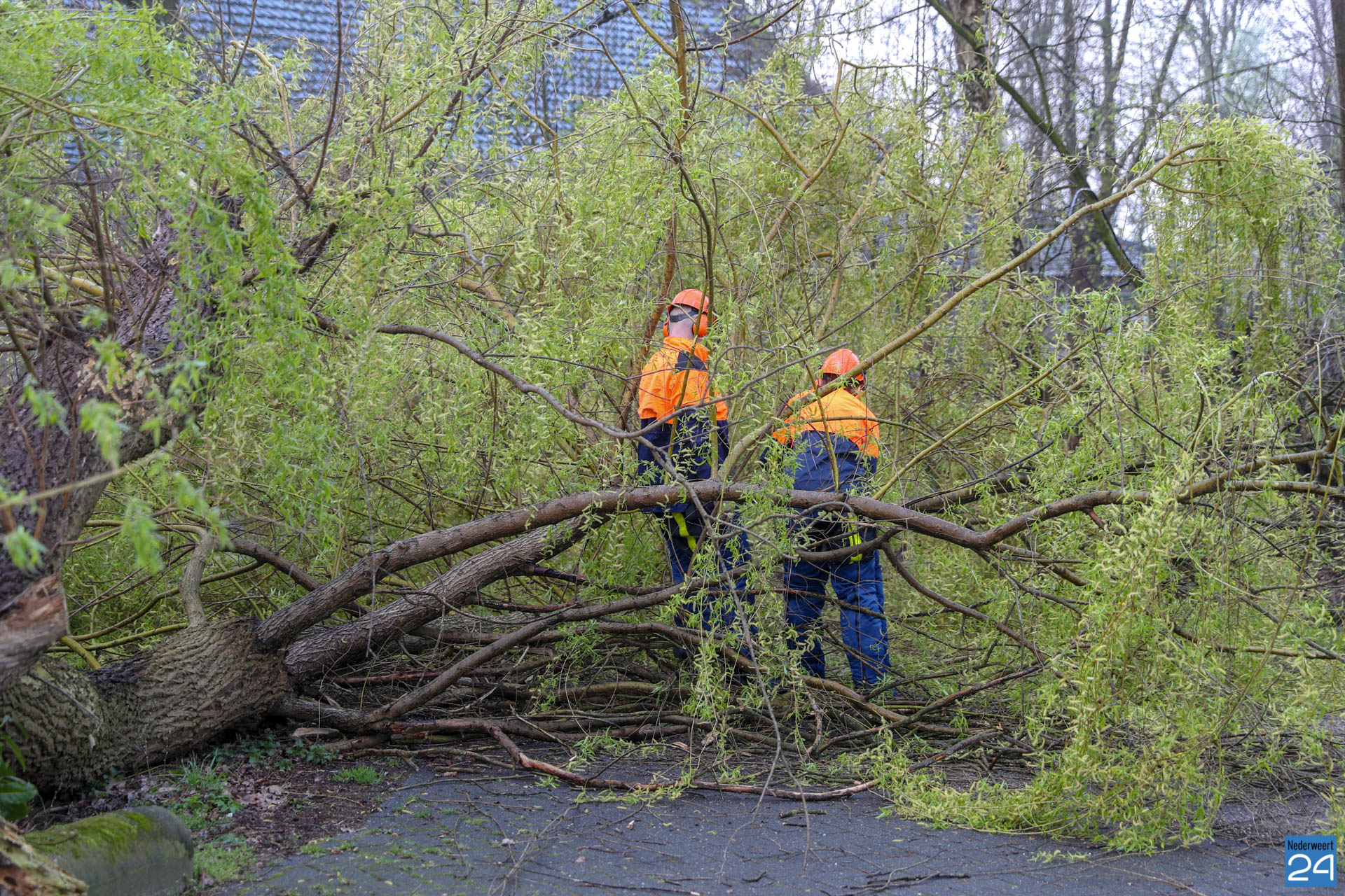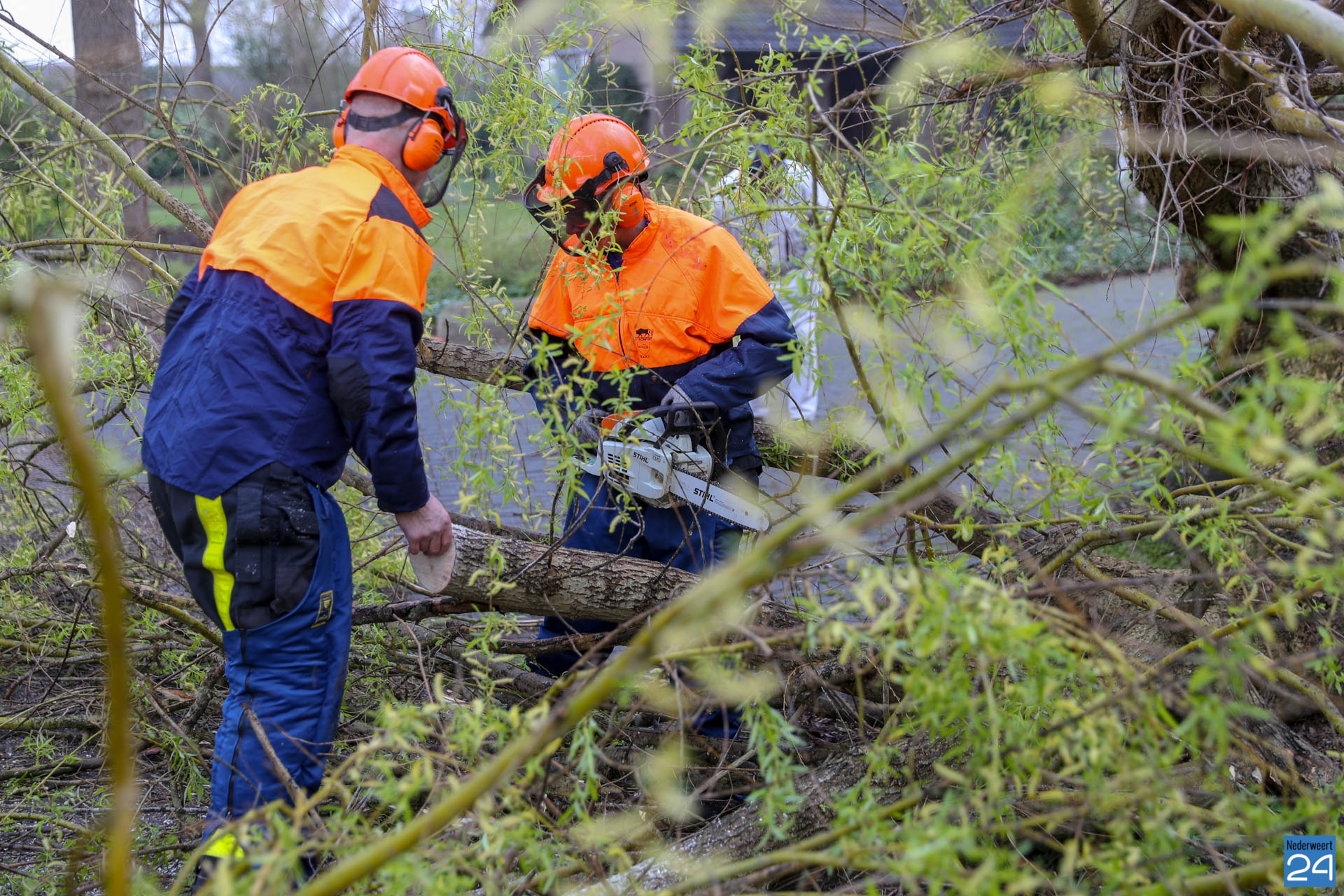 Omdat de boom over de weg lag werd de brandweer opgeroepen. De brandweer heeft de boom in stukken gezaagd zodat het verkeer weer door kan.
