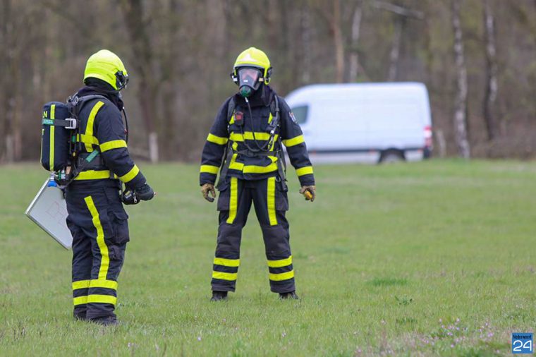 Het busje werd gevonden in een bosgebied tussen Leveroy en Baexem. De Adviseur Gevaarlijke Stoffen (AGS) van de brandweer is ter plaatse om te kijken om welke stoffen het gaat.