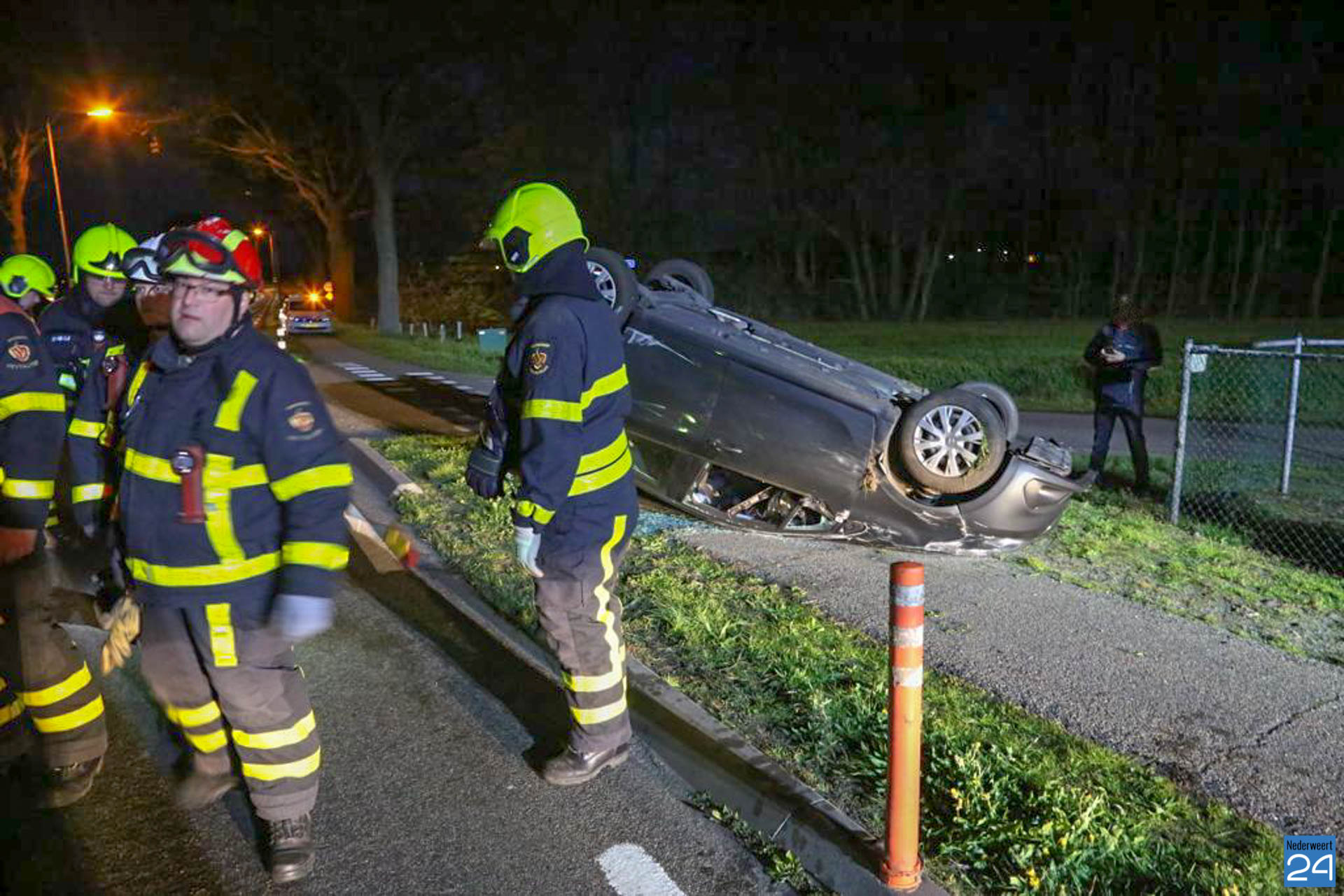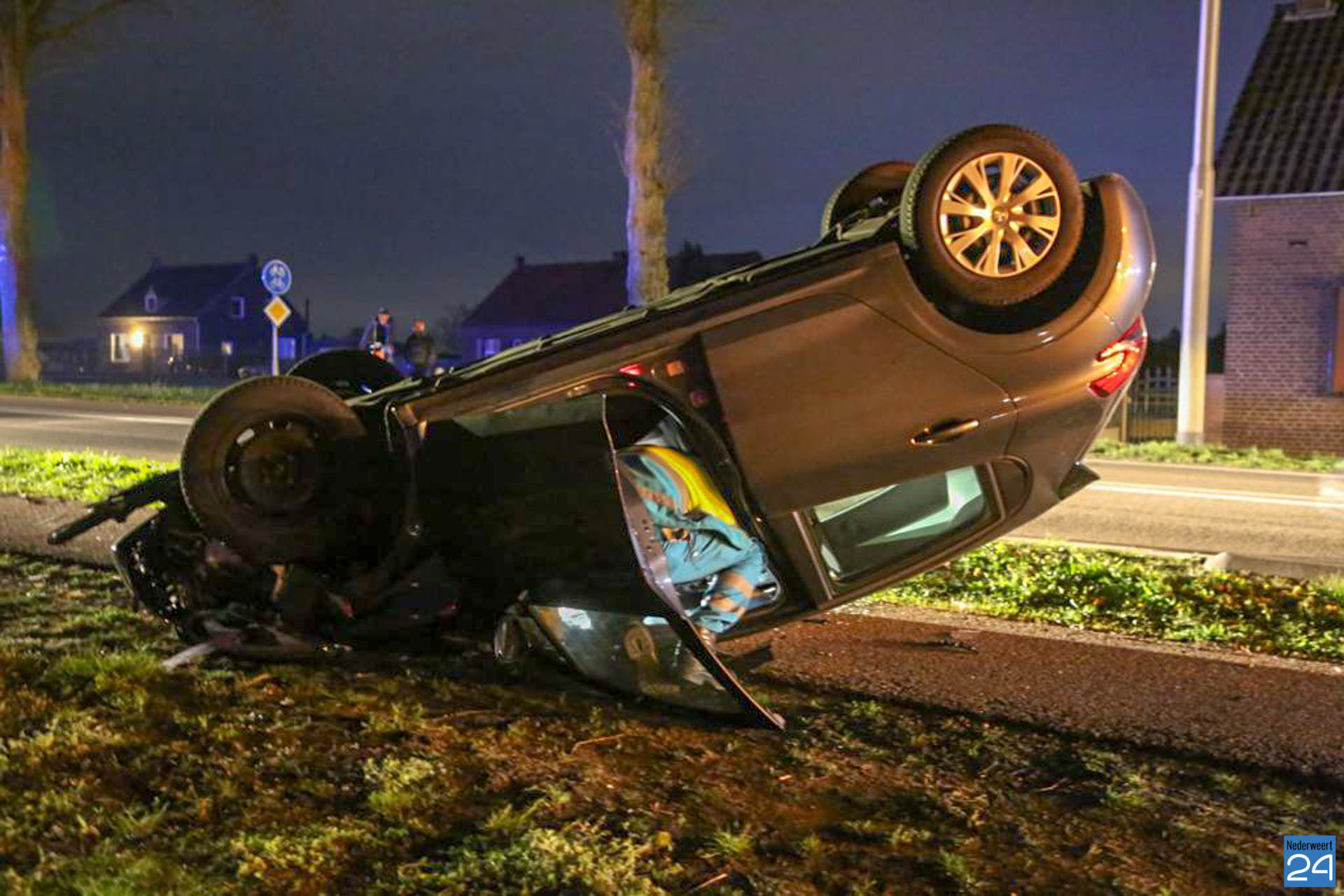 Een auto sloeg bij de botsing over de kop en kwam in de berm terecht. Hierbij raakte de bestuurder gewond. Hij is door het ambulancepersoneel gestabiliseerd en meegenomen naar het ziekenhuis. De inzittenden van het andere voertuig kwamen met de schrik vrij.