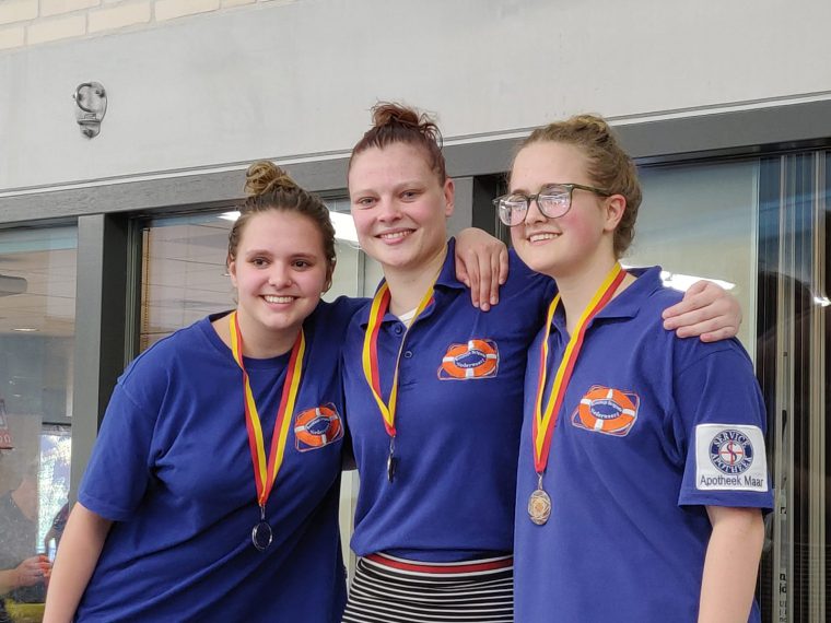 Het team zette mooie tijden neer en wist daarmee het goud te bemachtigen. Maar ook individueel waren de Nederweertse zwemmers goed vertegenwoordigd op het erepodium. Als klap op de vuurpijl wisten drie dames op het onderdeel 100 m lifesaver het podium volledig blauw te kleuren met een gouden, zilveren en bronzen medaille. Moe maar voldaan en 13 medailles rijker keerden de zwemmers ’s avonds weer huiswaarts.