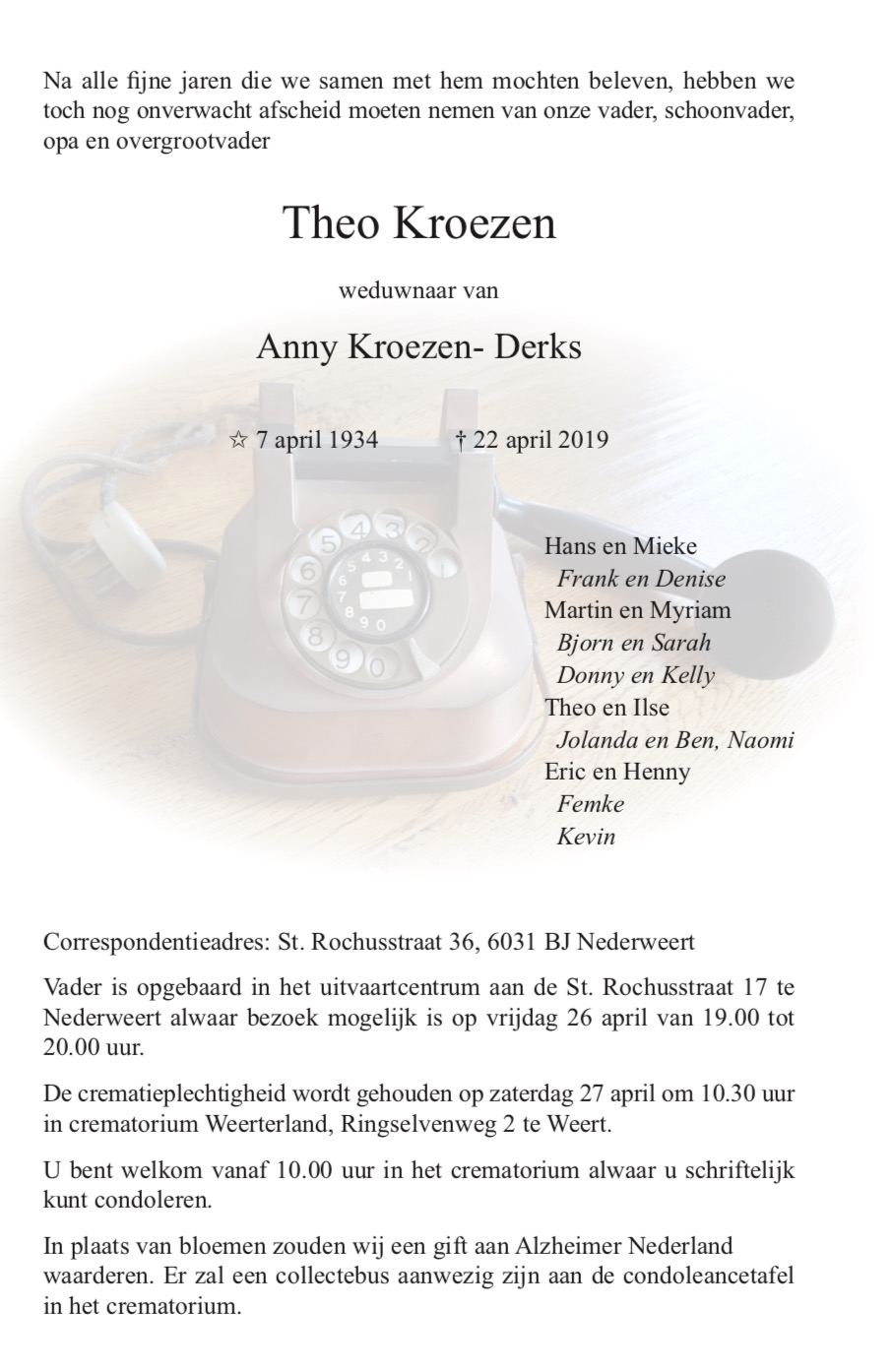Gecondoleerd voor de kinderen en kleinkinderen en veel sterkte gewenst.