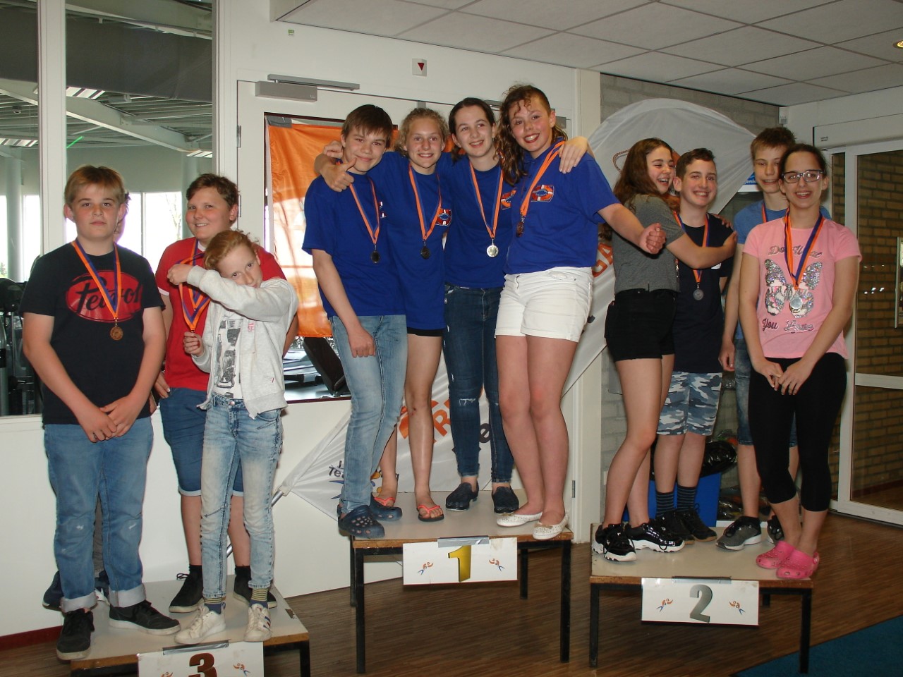 De wedstrijd ging goed we hadden geluk dat we als eerste mochten, want dan kon je ook je tegenstanders zien. Aan het begin moest je 11 baantjes zwemmen en dan begon de wedstrijd echt. De tweede ronde moesten we met een lange broek, lange mouwen T-shirt, schoenen en een regenjas. Hierbij moest je 5 baantjes zwemmen. En het spannendste deel vond ik de uitreiking. Daar was Nederweert 2 derde in het leider klassement. En toen hoorden we ‘Nederweert 1 op de tweede plaats’, daar waren we ook blij mee. Daarna de uitreiking voor de teams. Toen we ‘Nederweert 1 op de 1e plaats’ hoorden stonden we te gillen! Het was ongelofelijk, maar ook een leuke ervaring!