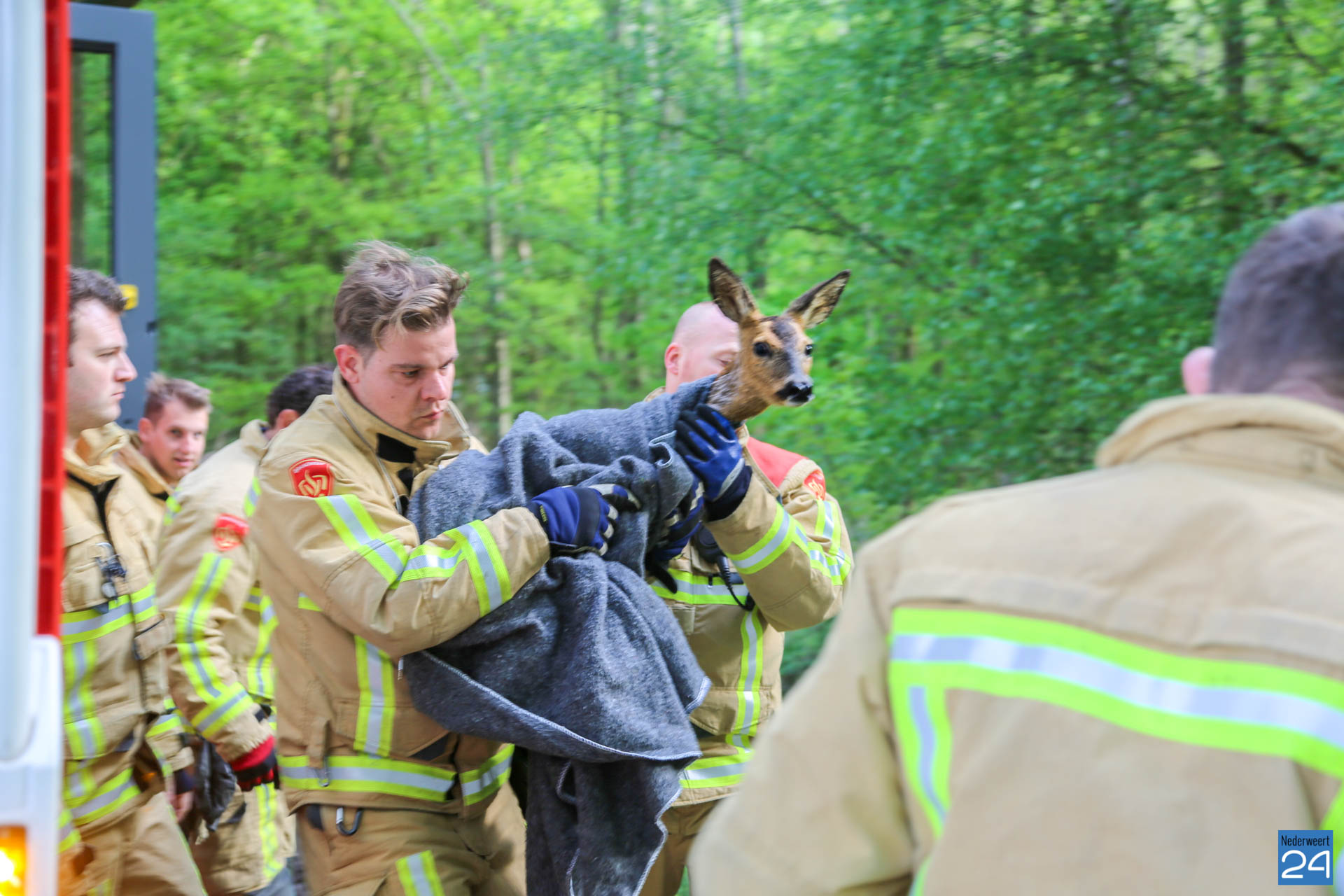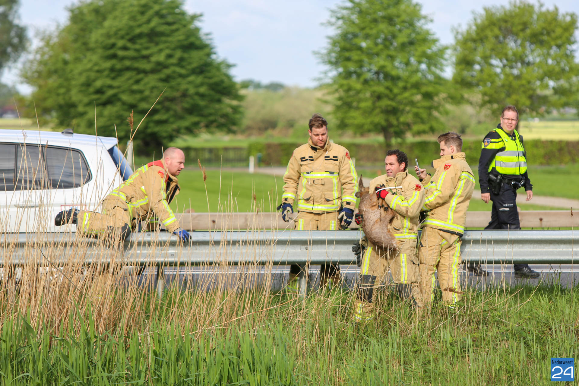 Een ree is vrijdagmorgen in de Zuid-Willemsvaart gevallen in Someren-Eind, nét over grens van Nederweert. Een vrouw was met haar hondje aan het wandelen op de Langendijk. Toen de ree tevoorschijn kwam en schrok van het hondje, sprong het dier in het kanaal.