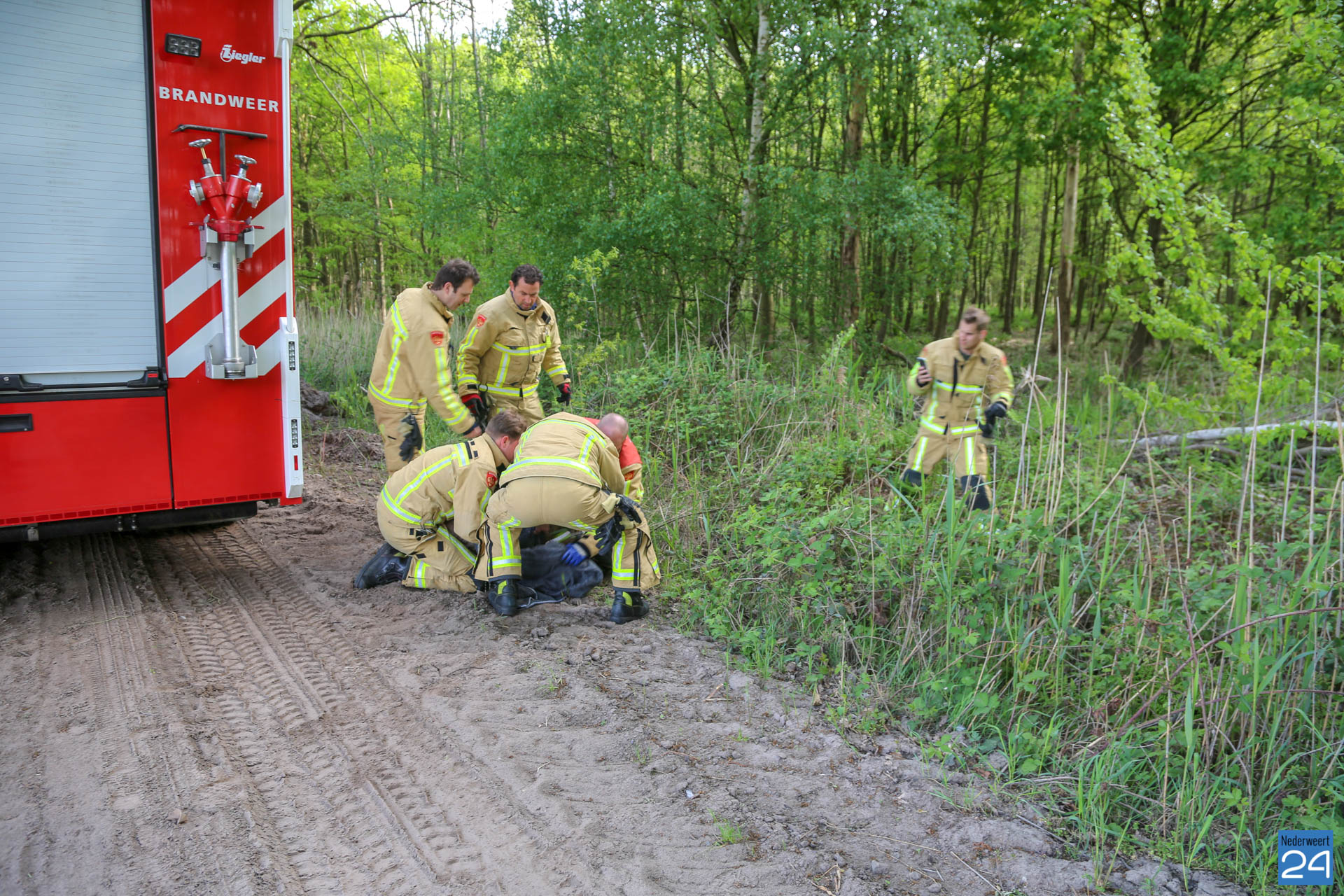De brandweer van Someren werd ingeschakeld en kwam snel ter plaatse. Toen de brandweerlieden arriveerden lag het dier inmiddels al op het droge ter hoogte van de Kanaaldijk-Zuid.