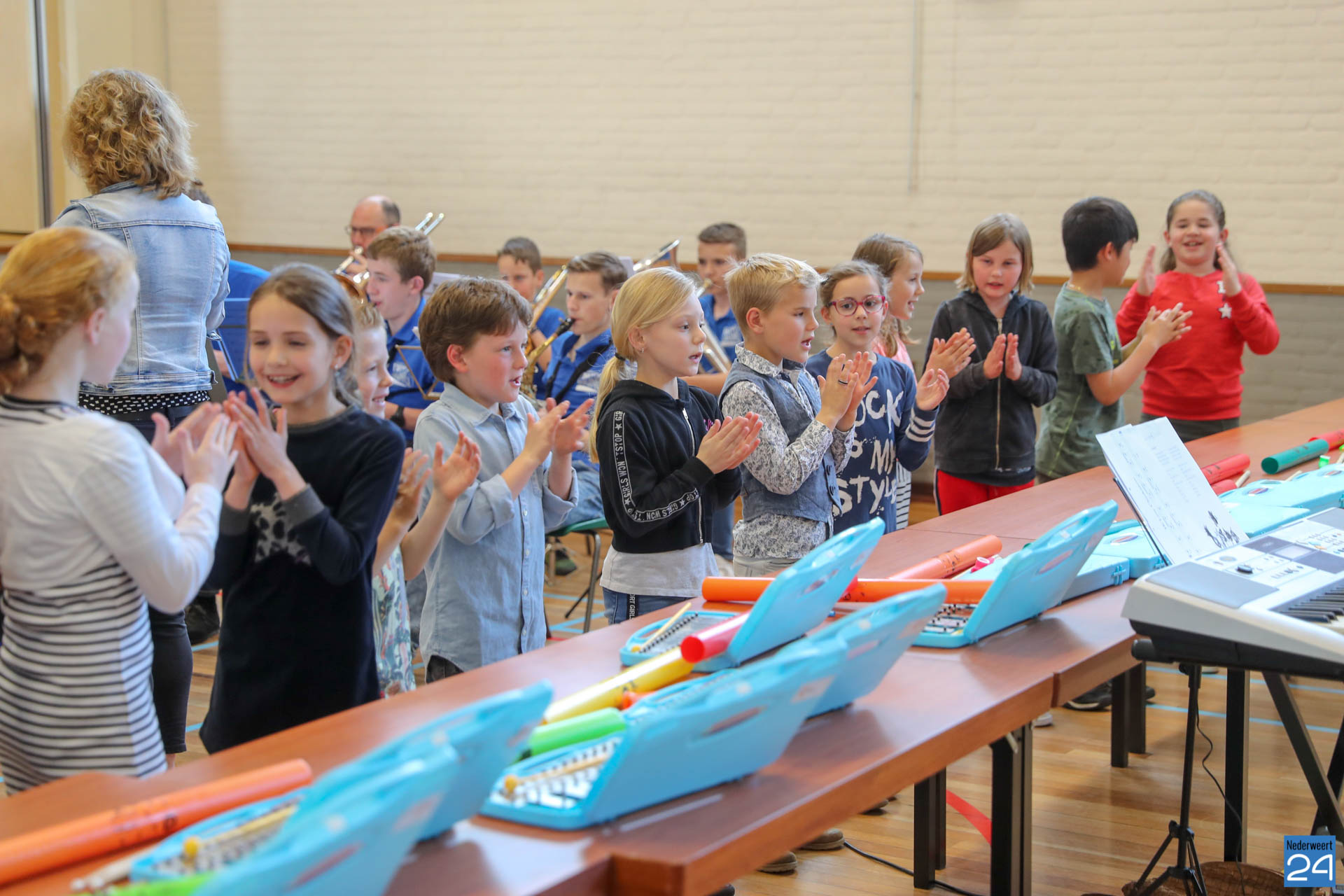 Wetenschappelijke onderzoeken bewijzen dat het een zeer positieve invloed heeft op de intelligentie en de sociale vaardigheden van kinderen. Deze muzieklessen op school worden aangeboden door Fanfare Concordia. Op vrijdag 10 mei lieten de kinderen van groep 4 en 5 horen en zien wat ze de afgelopen tijd allemaal hebben geleerd op muzikaal gebied. Dit hebben ze gedaan in samenwerking met jeugdfanfare Forever Young en jeugdslagwerkgroep de Beat Boys in gemeenschapshuis Pestoeërskoel. Vele ouders, opa’s en oma’s, broers, zussen, maar ook andere kinderen van school kwamen luisteren.
