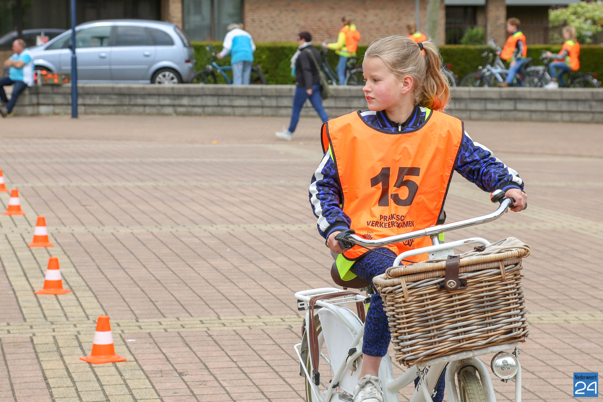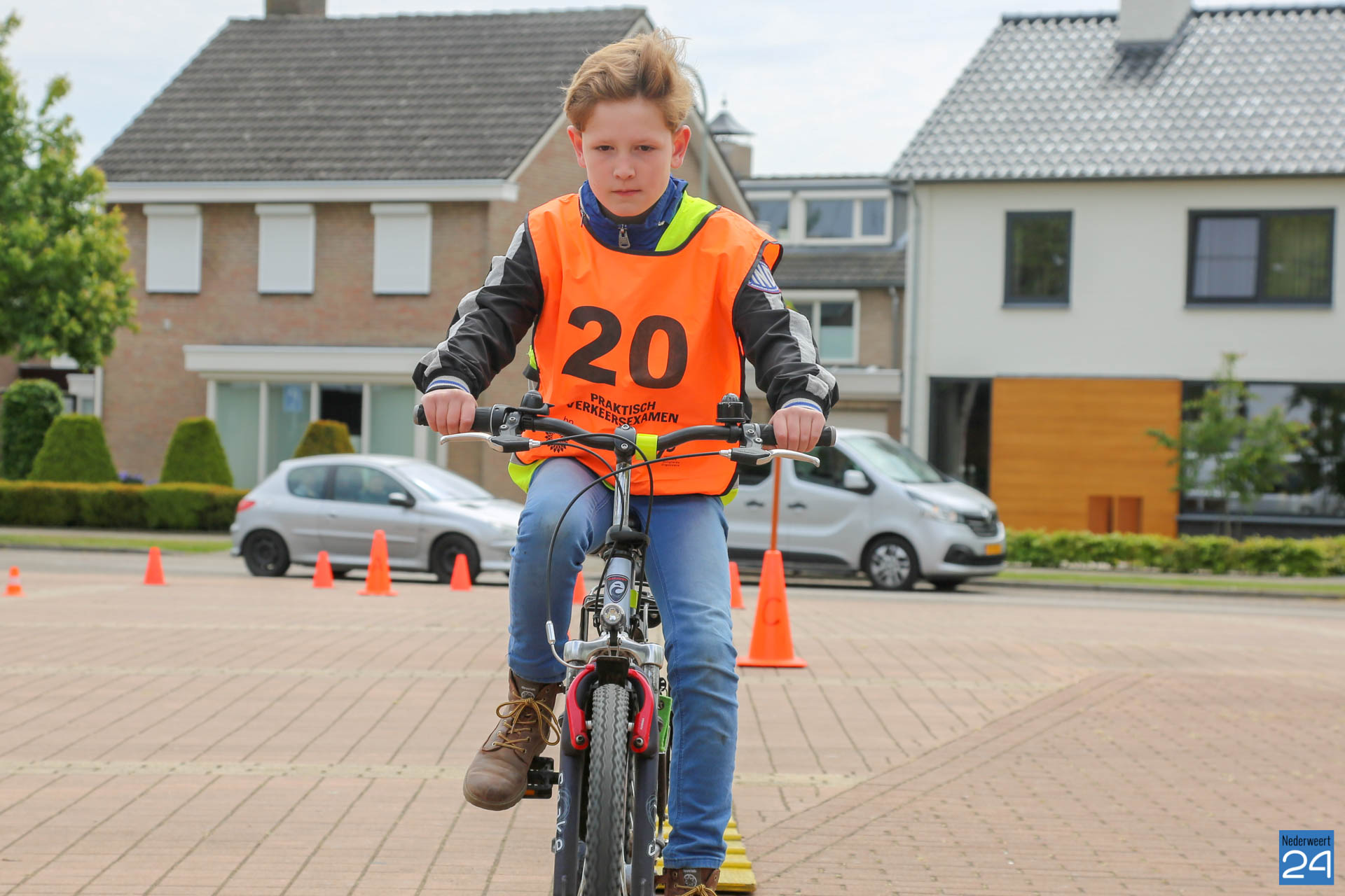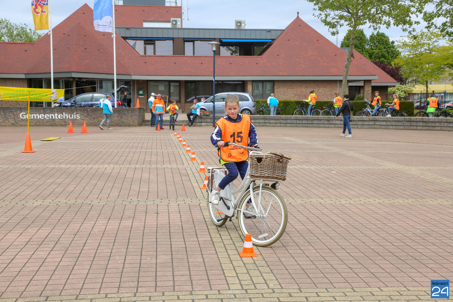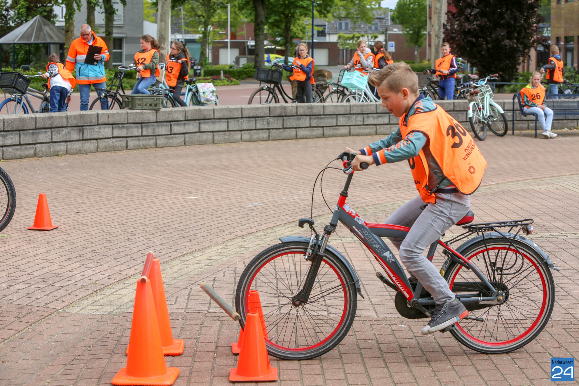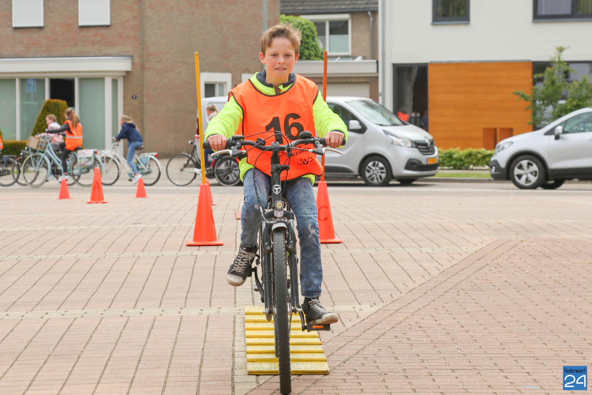 Vandaag fietsten zo’n 150 leerlingen van groep 7 van de Nederweerter basisscholen met oranje hesjes door de straten van Nederweert voor hun praktijk verkeersexamen. Een spannende dag voor de kinderen. Het theoretische gedeelte van het examen werd al eerder afgenomen en vandaag werd getoetst of ze de opgedane kennis kunnen toepassen in het echte verkeer. In de ochtend startte de eerste 62 leerlingen van BS Budschop, BS De Schrank, BS De Tweesprong en BS De Zonnehof. In de middag waren de 79 leerlingen van OBS De Klimop, IKC De Kerneel en BS De Bongerd aan de beurt.