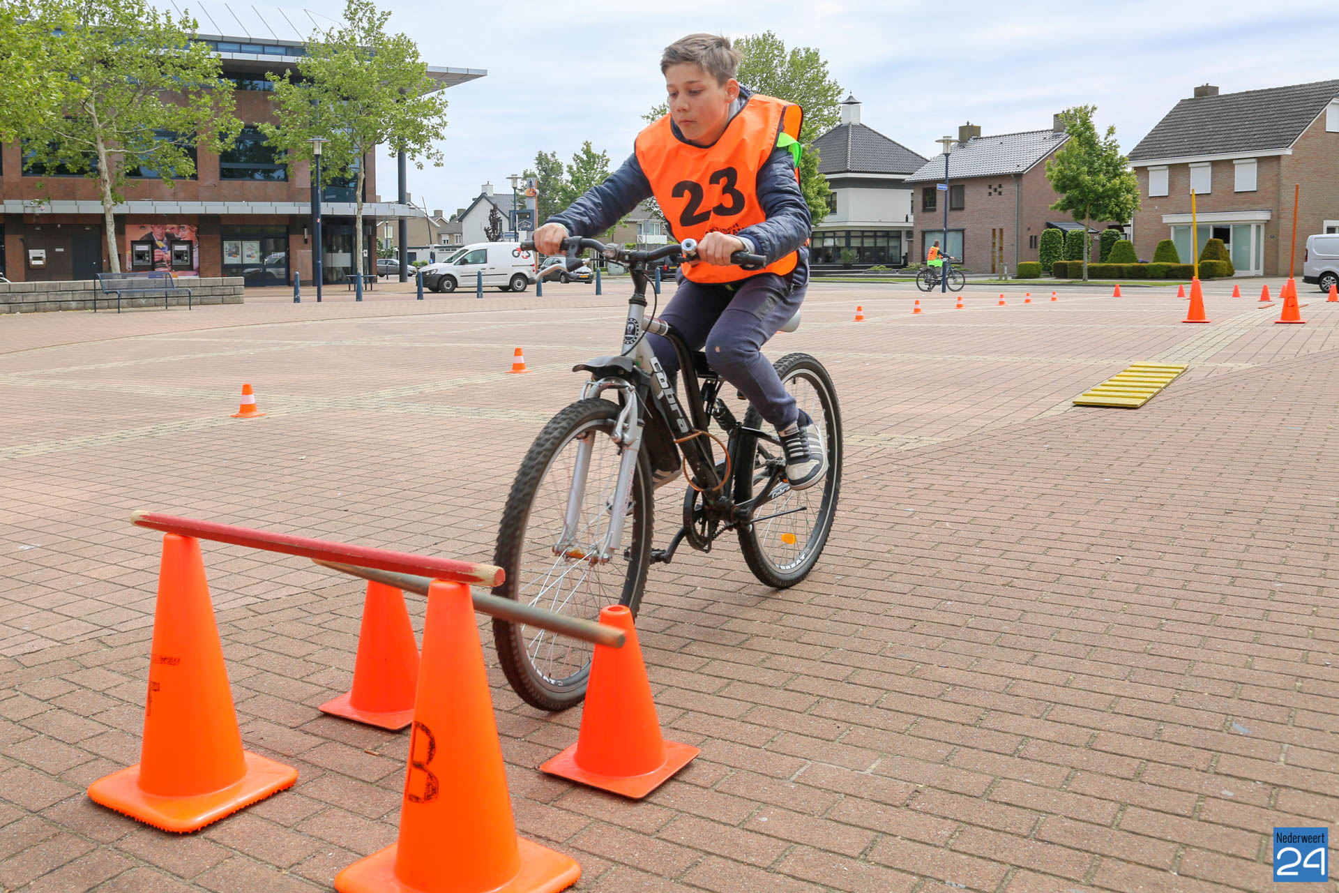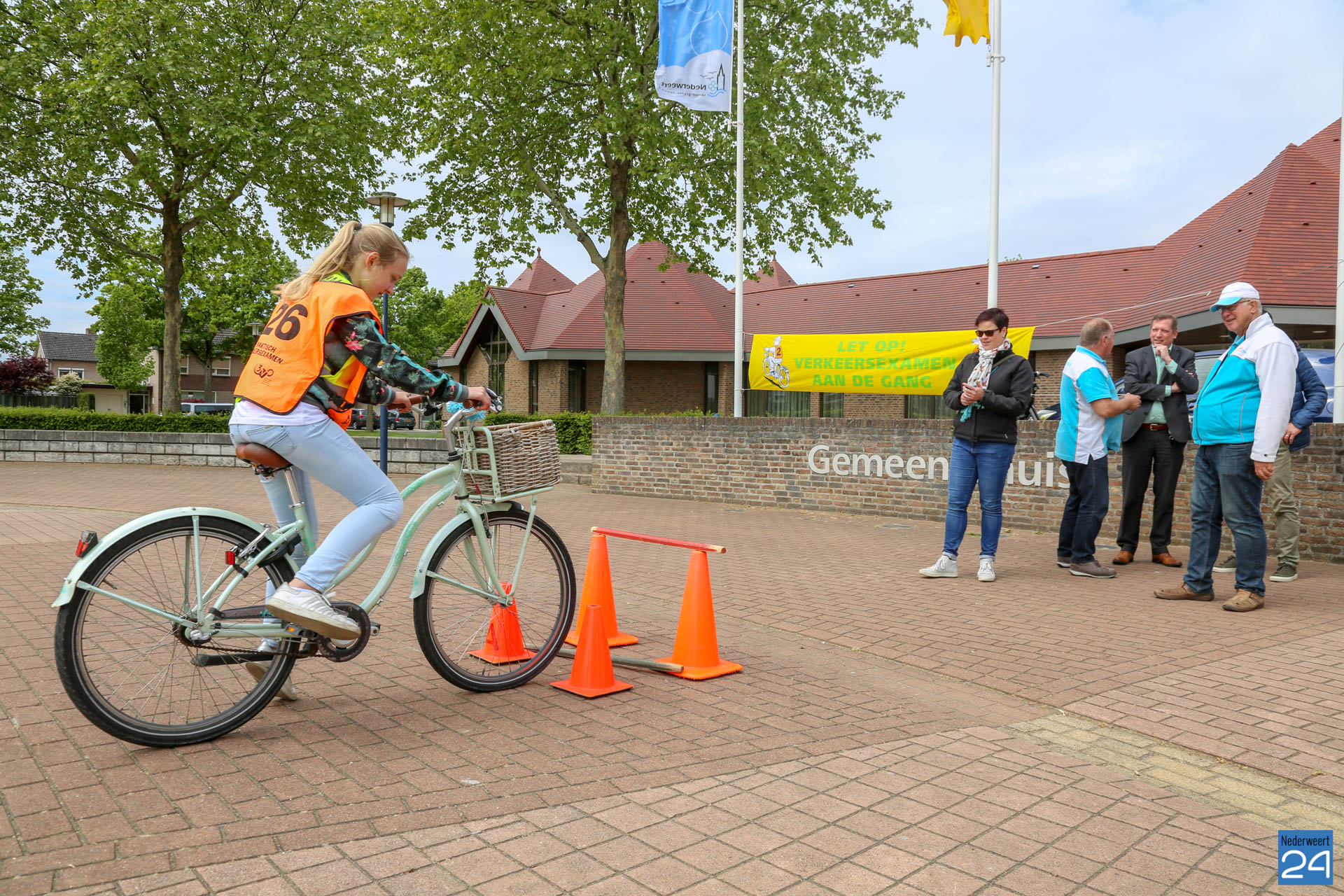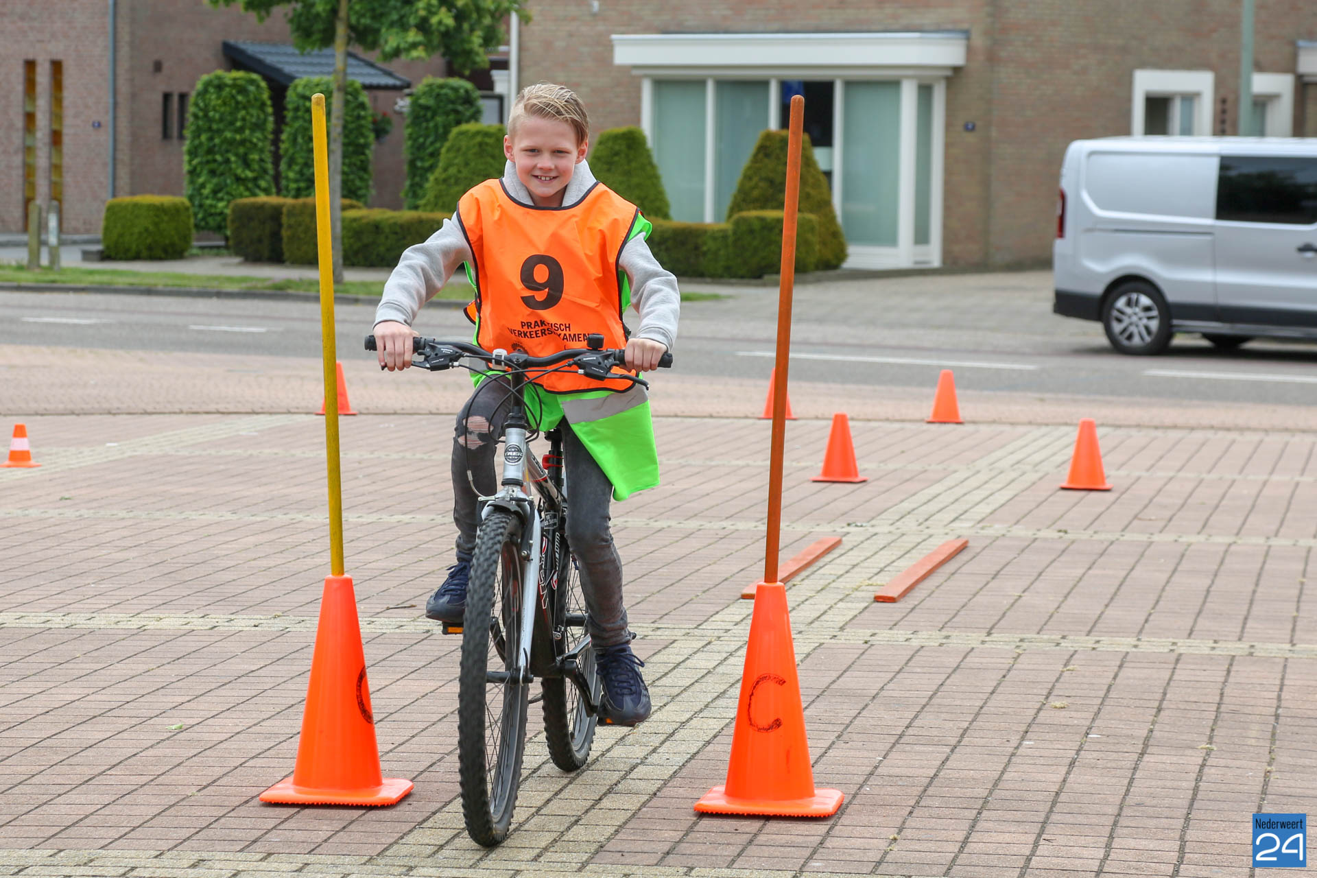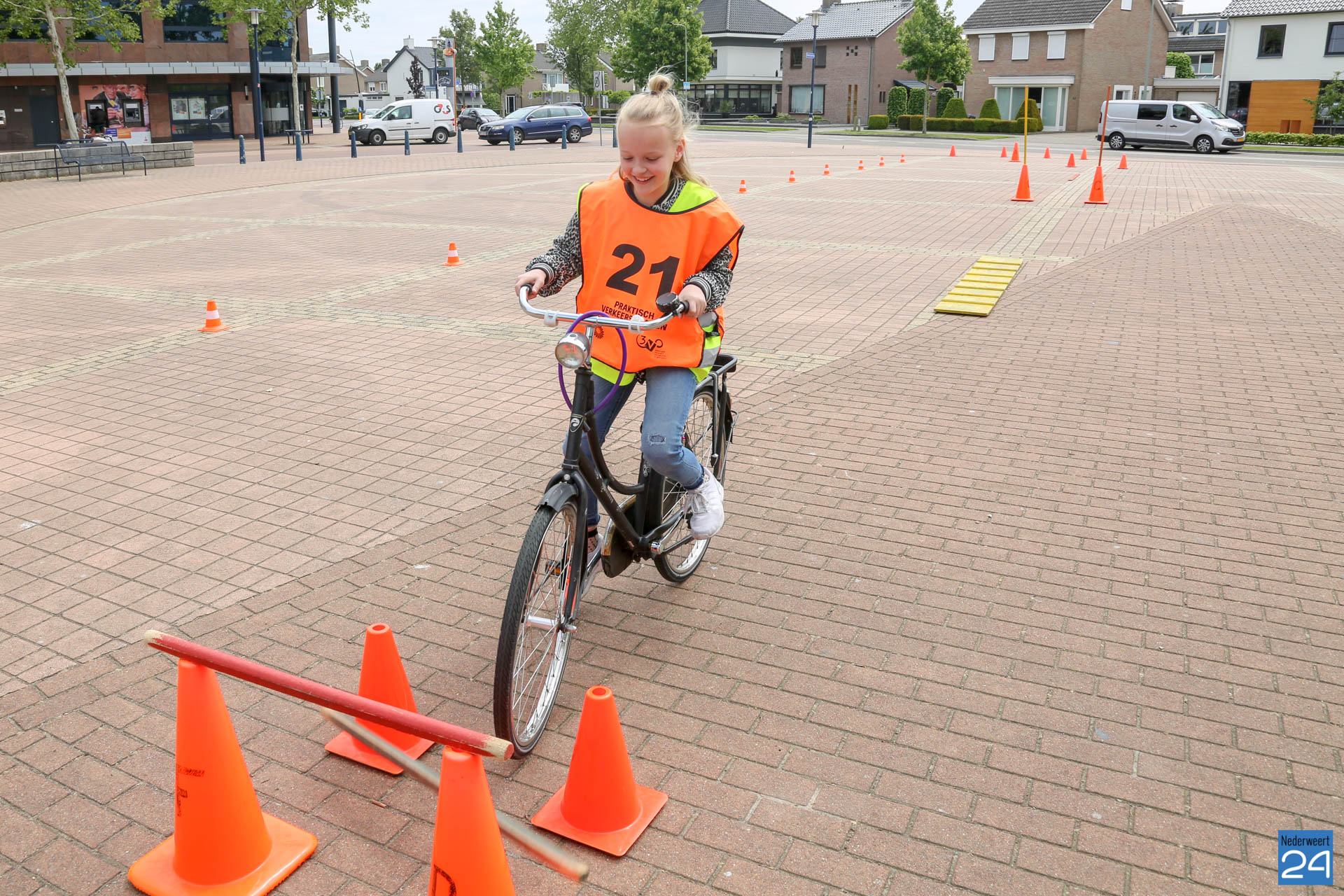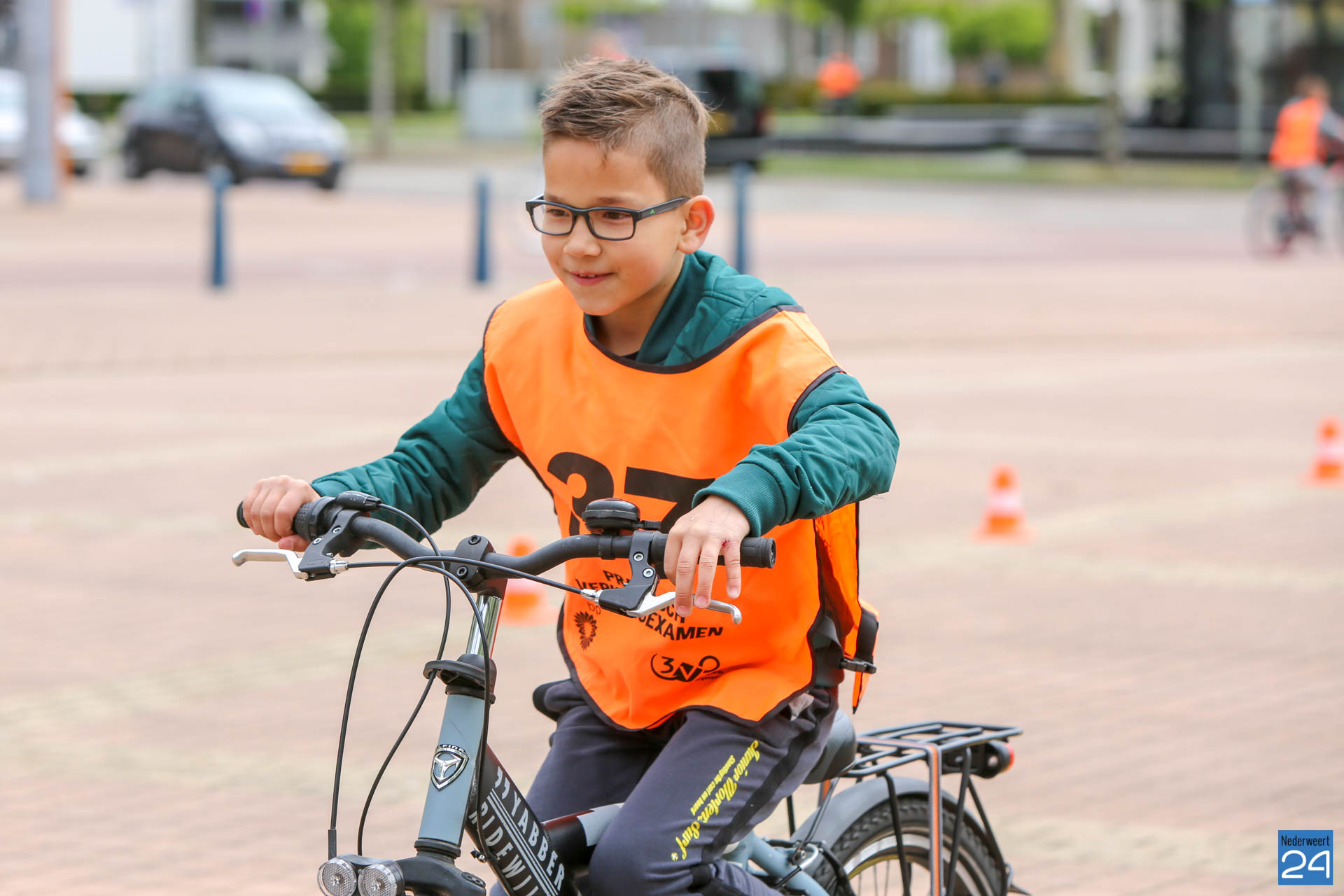 Vandaag fietsten zo’n 150 leerlingen van groep 7 van de Nederweerter basisscholen met oranje hesjes door de straten van Nederweert voor hun praktijk verkeersexamen. Een spannende dag voor de kinderen. Het theoretische gedeelte van het examen werd al eerder afgenomen en vandaag werd getoetst of ze de opgedane kennis kunnen toepassen in het echte verkeer. In de ochtend startte de eerste 62 leerlingen van BS Budschop, BS De Schrank, BS De Tweesprong en BS De Zonnehof. In de middag waren de 79 leerlingen van OBS De Klimop, IKC De Kerneel en BS De Bongerd aan de beurt.