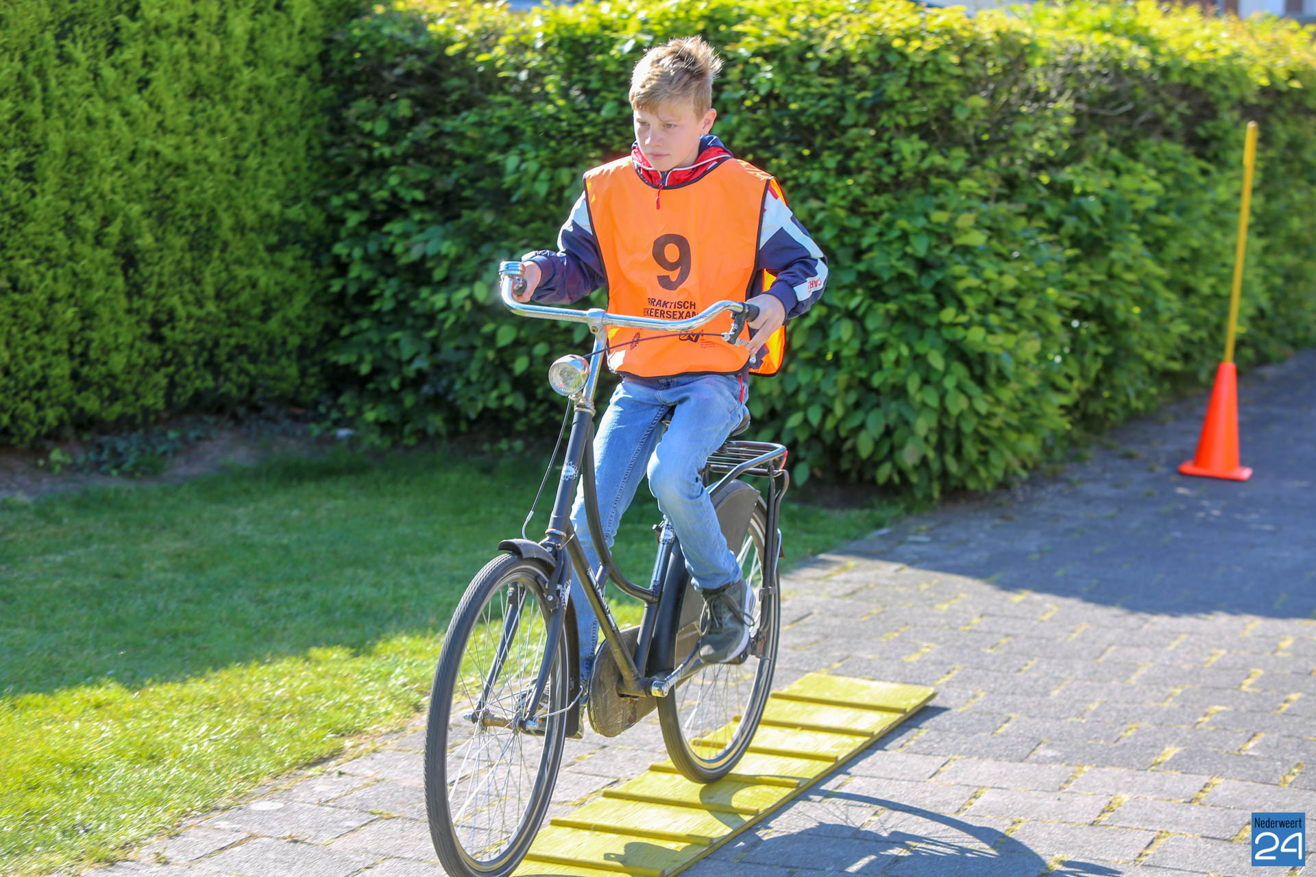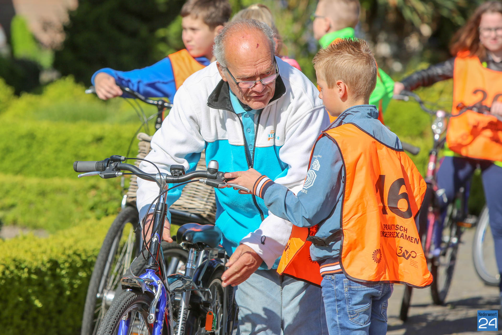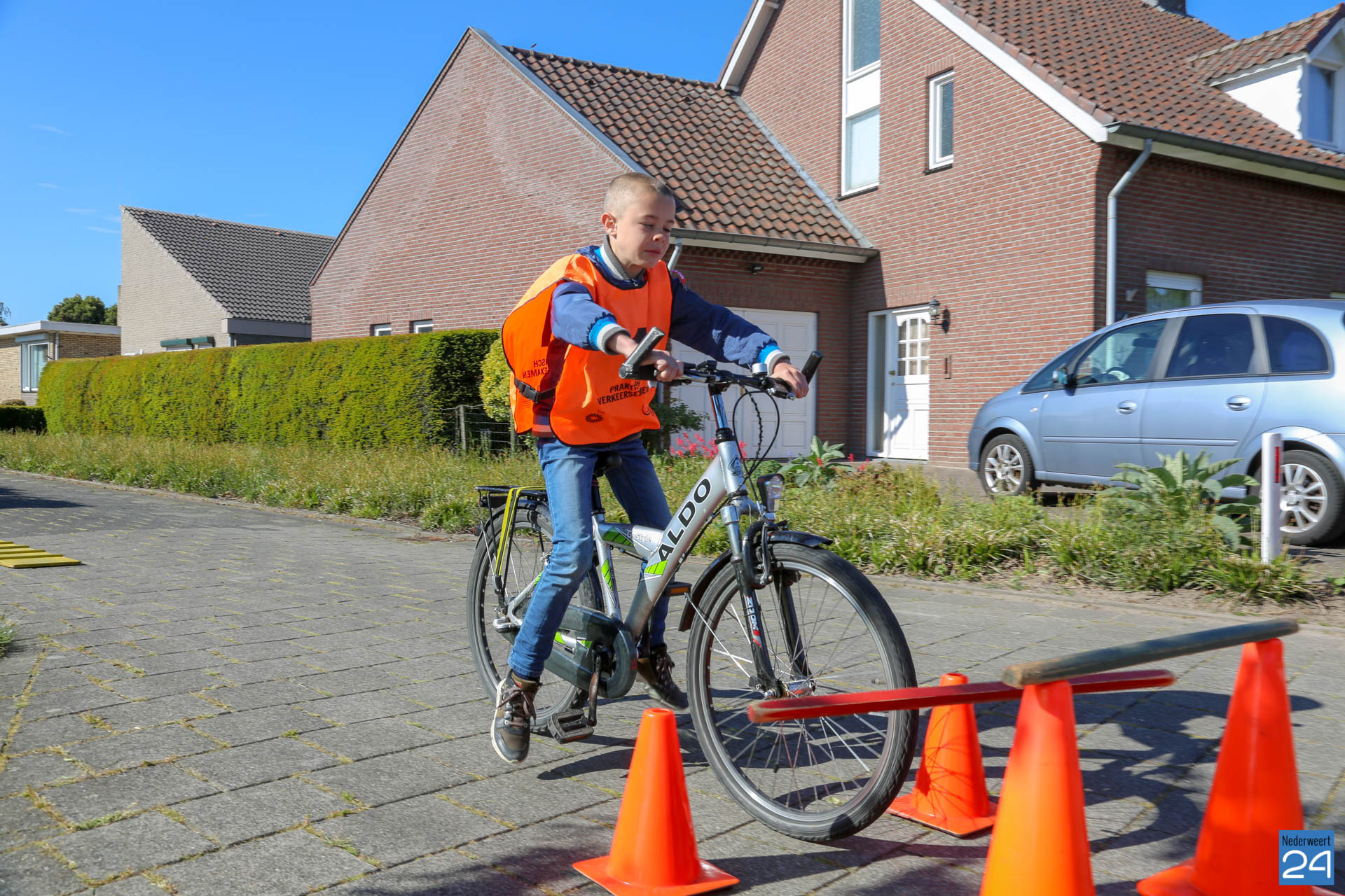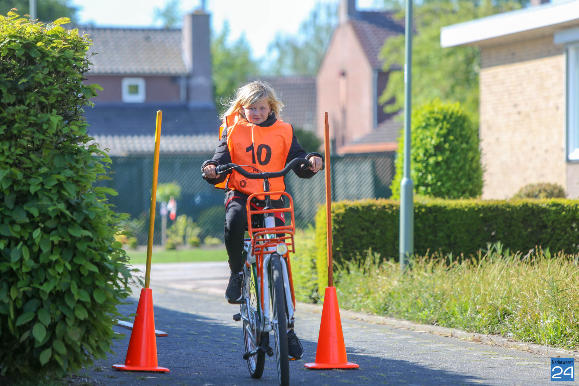 Vandaag fietsen zo’n 150 leerlingen van groep 7 van de Nederweerter basisscholen met oranje hesjes door de straten van Nederweert voor hun praktijk verkeersexamen. Een spannende dag voor de kinderen. Het theoretische gedeelte van het examen werd al eerder afgenomen en vandaag wordt getoetst of ze de opgedane kennis kunnen toepassen in het echte verkeer. In de ochtend startte de eerste 62 leerlingen van BS Budschop, BS De Schrank, BS De Tweesprong en BS De Zonnehof. In de middag zijn OBS De Klimop, IKC De Kerneel en BS De Bongerd aan de beurt.