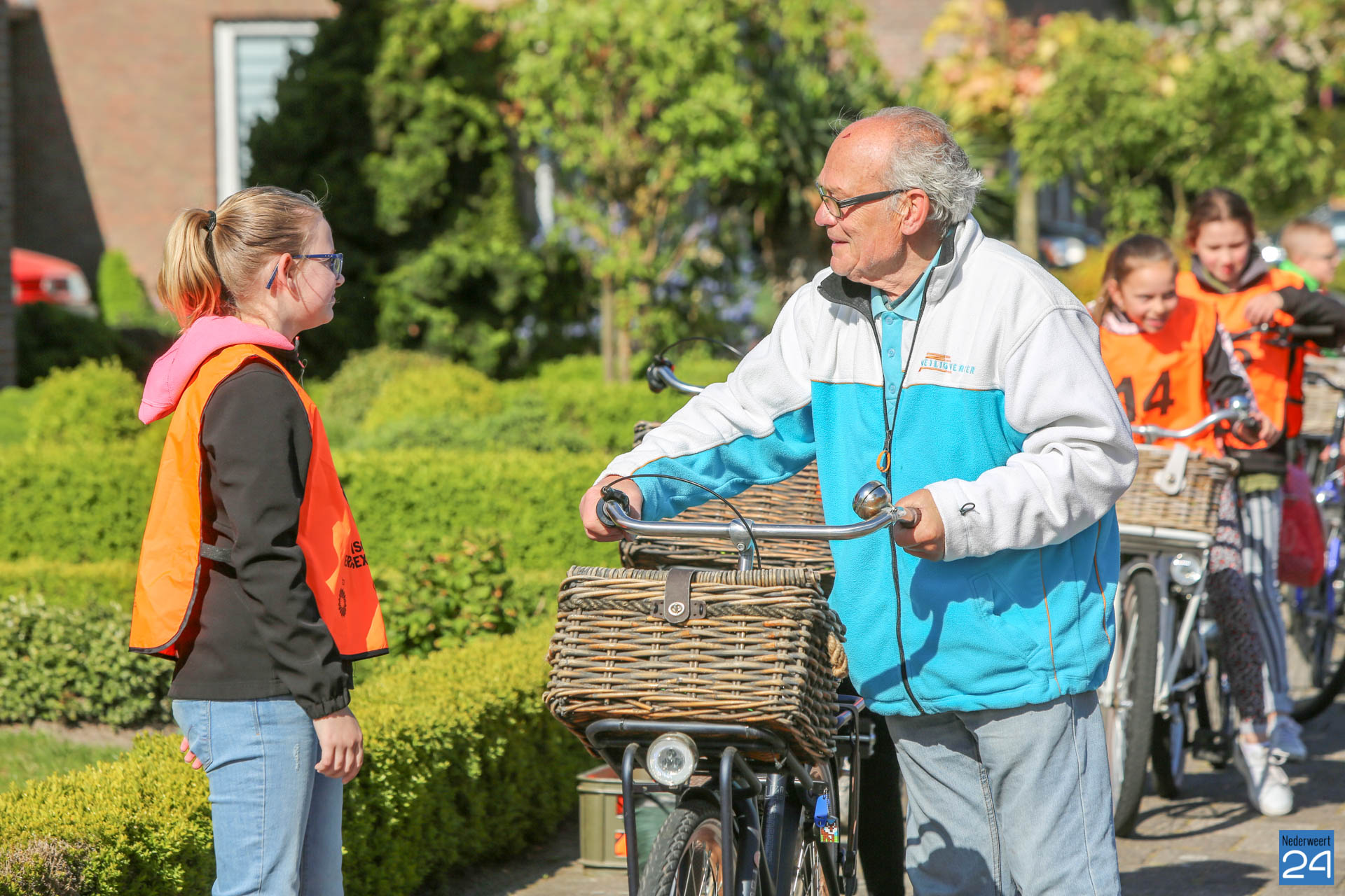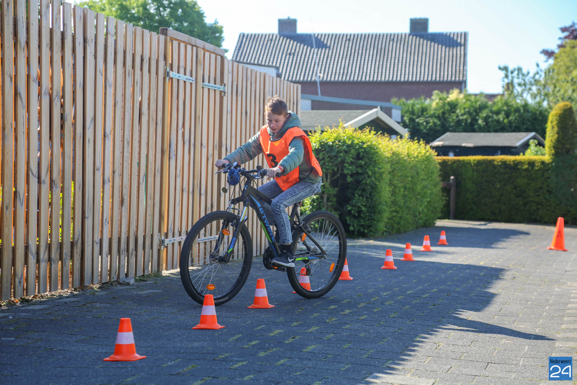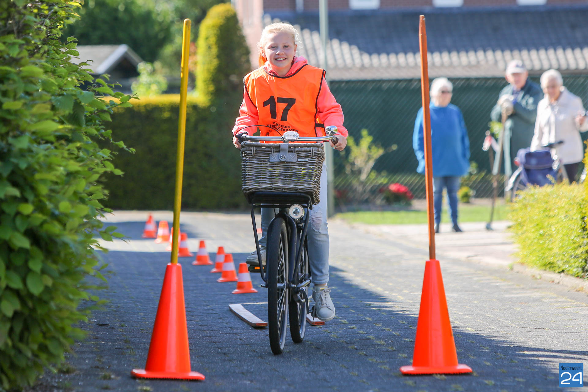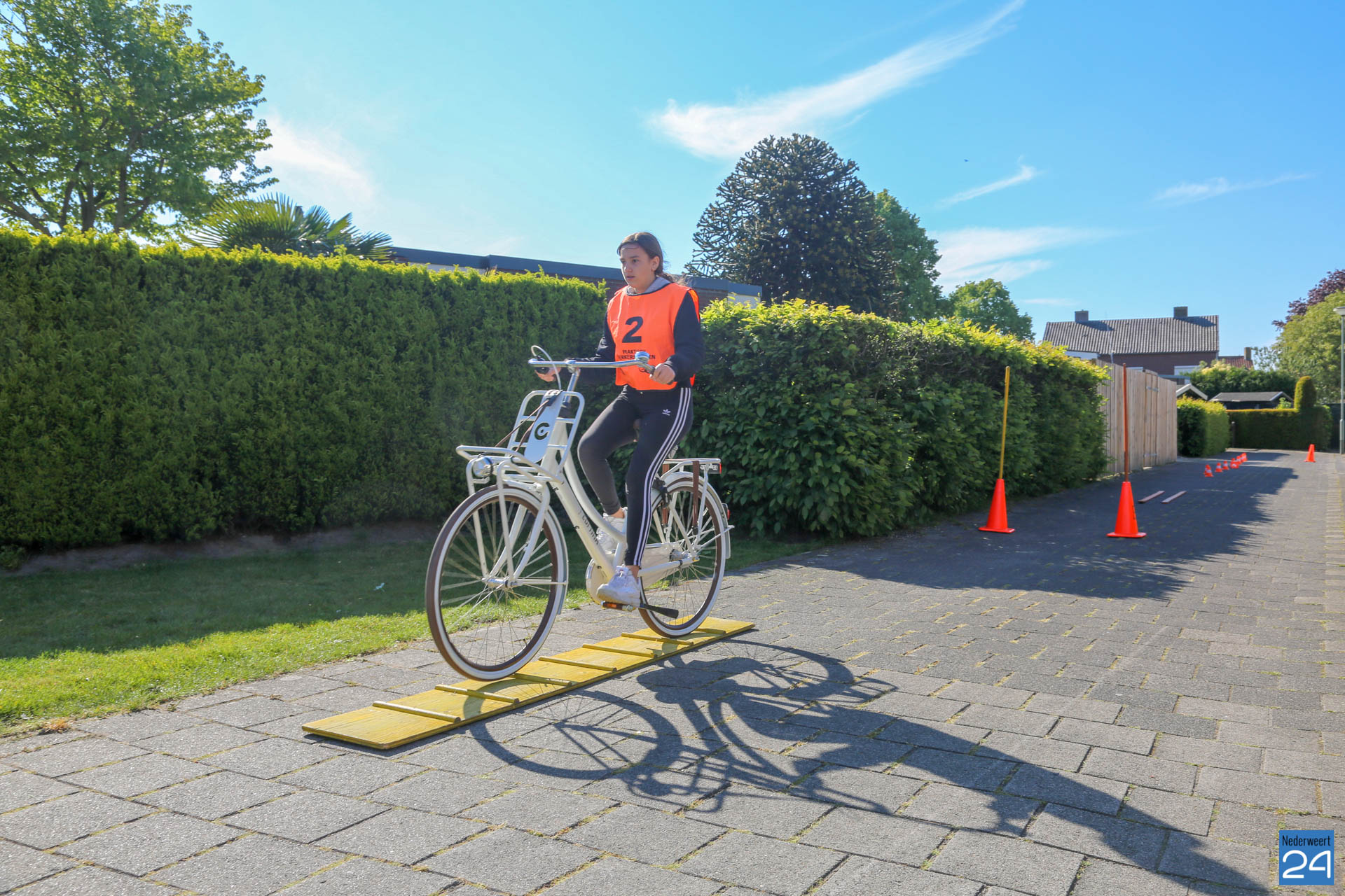 Vandaag fietsen zo’n 150 leerlingen van groep 7 van de Nederweerter basisscholen met oranje hesjes door de straten van Nederweert voor hun praktijk verkeersexamen. Een spannende dag voor de kinderen. Het theoretische gedeelte van het examen werd al eerder afgenomen en vandaag wordt getoetst of ze de opgedane kennis kunnen toepassen in het echte verkeer. In de ochtend startte de eerste 62 leerlingen van BS Budschop, BS De Schrank, BS De Tweesprong en BS De Zonnehof. In de middag zijn OBS De Klimop, IKC De Kerneel en BS De Bongerd aan de beurt.