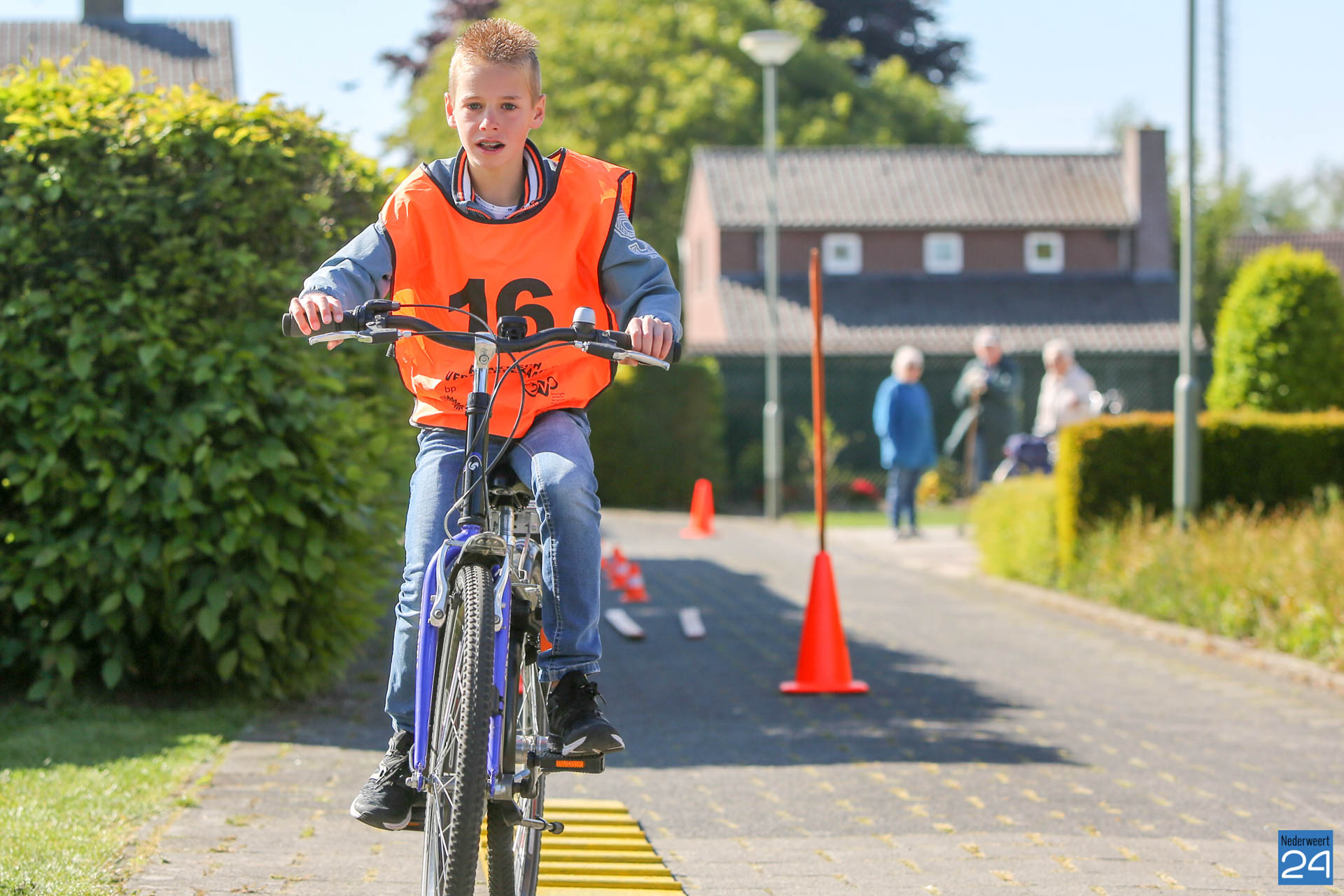 Na deze bijzondere verrichtingen werd een vaste route afgelegd door de straten van Nederweert. Langs deze route stonden vrijwilligers die -aan de hand van een controlelijst- beoordeelden of de leerlingen goed handelden. Vanmorgen vertrokken de kids vanaf het St. Rochusplein op Budschop. Vanmiddag fietsen de scholen vanaf het Raadhuisplein.